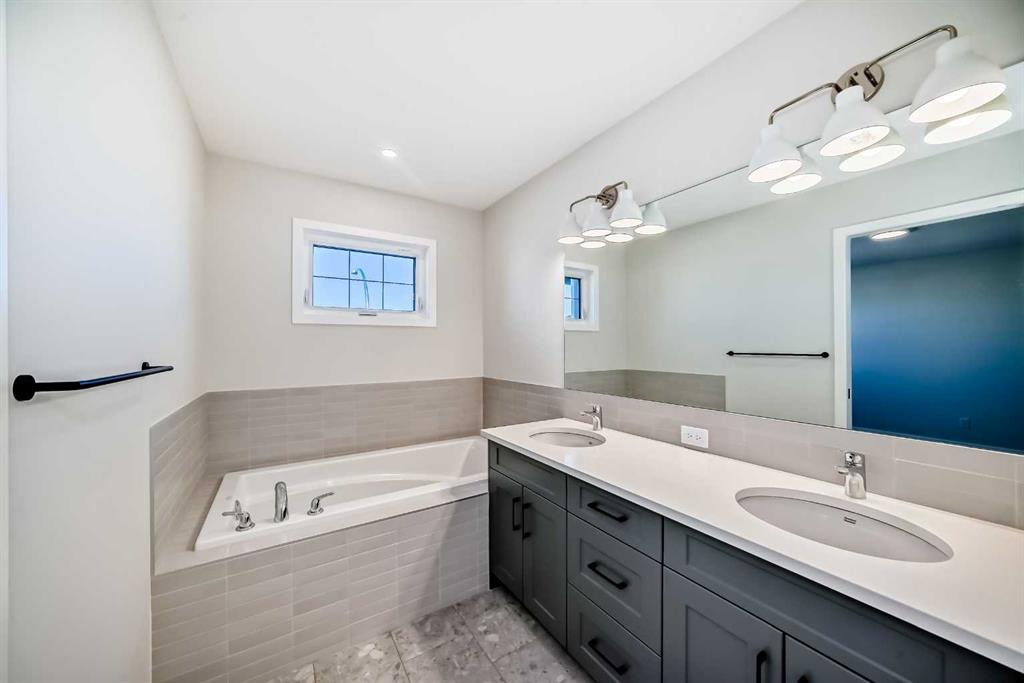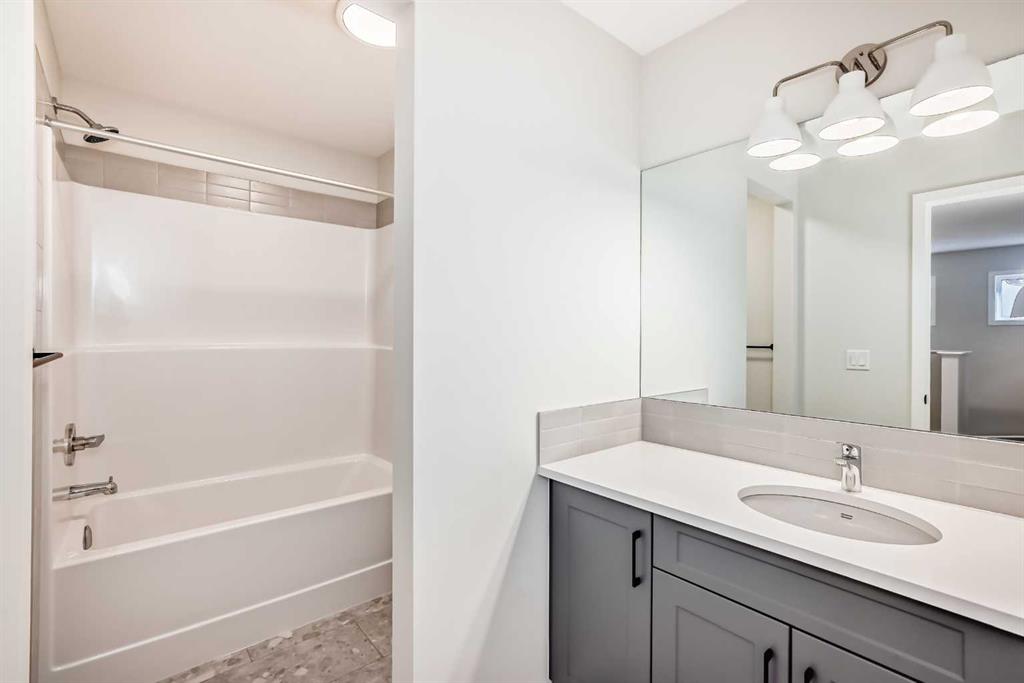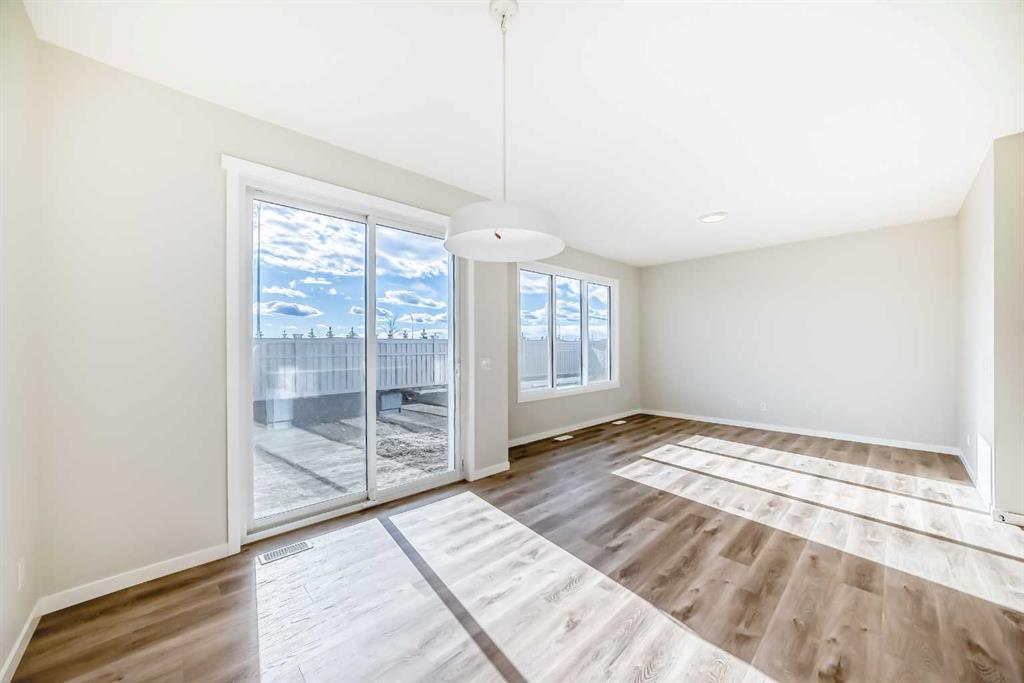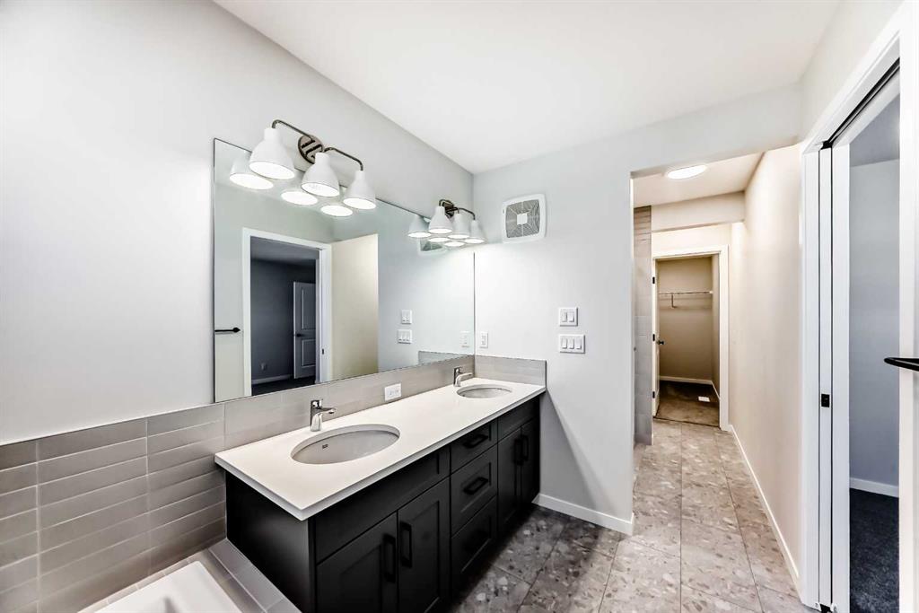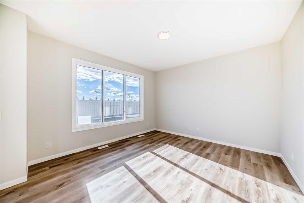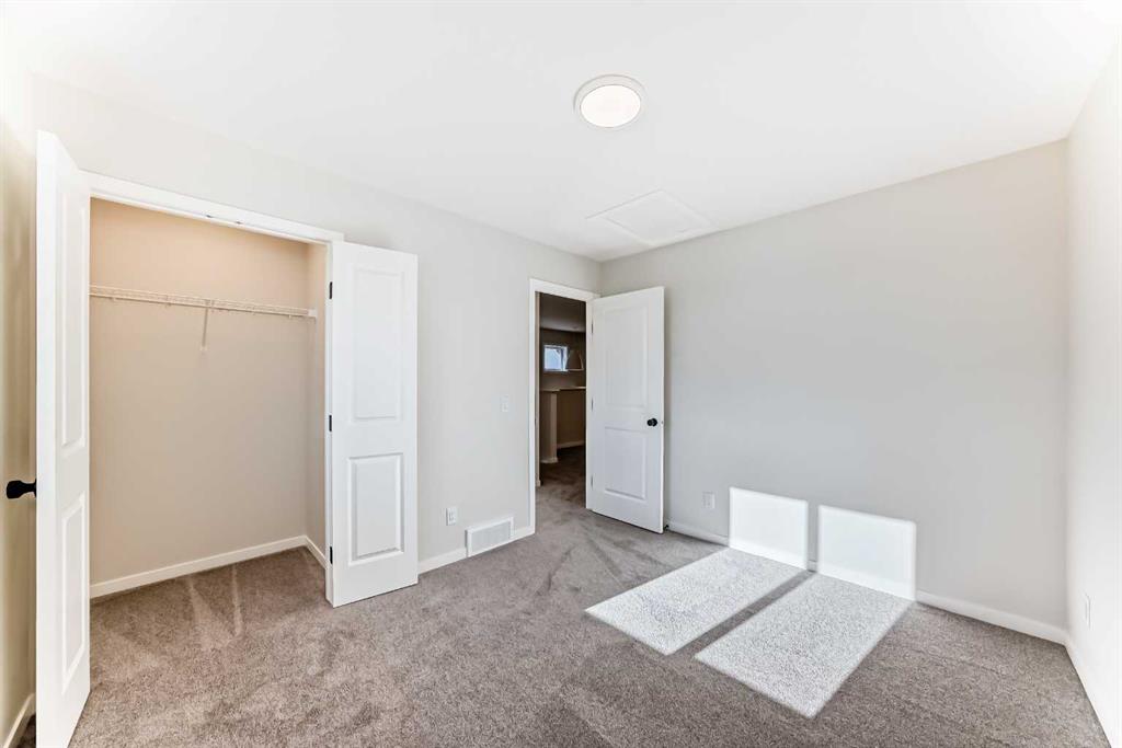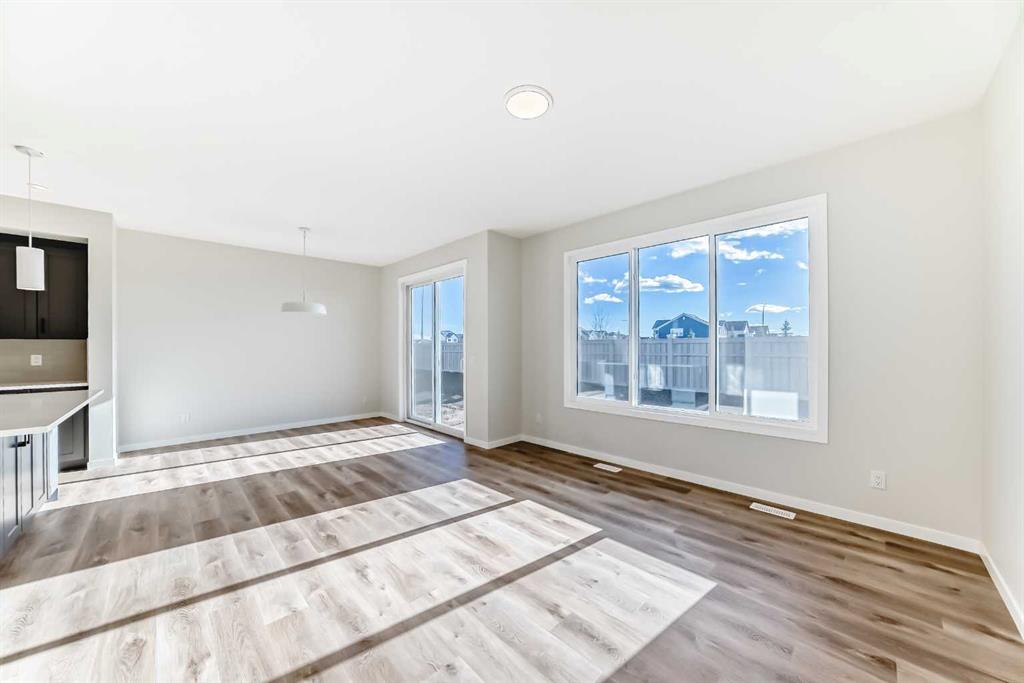 Welcome to the Kalara—where modern design, flexible living, and everyday functionality come together in one beautifully planned home. A bright, open-concept main floor connects the kitchen, dining, and lifestyle areas, all oriented to a desirable south-facing backyard that fills the space with natural light. The kitchen is a true standout with modern grey cabinetry carried to the bulkhead, black hardware, white quartz counters, a stacked subway tile backsplash, and stainless steel appliances. Thoughtful touches—like pot lighting and clever added storage under the island’s bar seating—make this space as practical as it is stylish. A versatile main-floor flex room adapts easily to a home office, study, or playroom, while upstairs a central loft offers an ideal media zone or reading nook. The upper floor is headlined by a smartly designed laundry room that connects directly to the primary ensuite—streamlining daily routines—alongside a serene primary retreat and two additional bedrooms for family or guests. Designed with tomorrow in mind, the home features a 9′ foundation and a secondary side entrance, creating excellent potential for future basement development—think guest or in-law space, or a suite configuration (subject to city/municipality approval and permitting). With its balanced layout, quality finishes, and room to grow, the Kalara nails comfort, function, and value. Set in Mahogany—one of Calgary’s most sought-after lake communities—you’ll enjoy a 63-acre freshwater lake, two private beaches, and an extensive network of parks, pathways, and wetlands. Everyday essentials are close at hand with plentiful nearby shops and services, plus quick access to schools and the South Health Campus. It’s an active, four-season lifestyle wrapped in a vibrant community—an easy place to love calling home.
