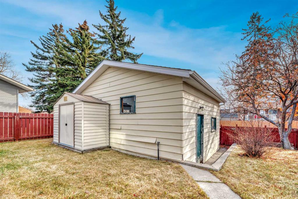 Welcome to 111 Pinetree Bay NE in the beautiful community of Pineridge! This impressive detached bungalow has been lovingly updated over recent years! Enjoy peace of mind with ALL NEWER VINYL WINDOWS & DOORS (2019), NEWER FURNACE, NEWER CENTRAL AIR CONDITIONER, and NEWER ASPHALT SHINGLES (2022). Featuring 4 BEDROOMS and 1.5 BATHROOMS in 2,065 SQ. FT. OF FULLY DEVELOPED LIVING SPACE, this home sits on an OVERSIZED PIE-SHAPED LOT in a QUIET CUL-DE-SAC. The sunny, SOUTH-FACING BACKYARD is ultra-private and fully fenced—perfect for relaxing or entertaining—with a large wooden deck, storage shed, and a DOUBLE DETACHED GARAGE via paved back-alley access. Additional highlights include: renovated main-floor bathroom with walk-in shower and updated plumbing fixtures, parquet hardwood flooring, wood-burning fireplace, central vacuum system, some newer appliances, and durable aluminum siding. Ideally located close to schools, parks, shopping, transit, and all amenities—with quick access to major roadways for an easy commute. Don’t miss this RARE, ONE-OF-A-KIND OPPORTUNITY to own a beautifully updated home on one of Pineridge’s best lots. Call today to book your private showing!