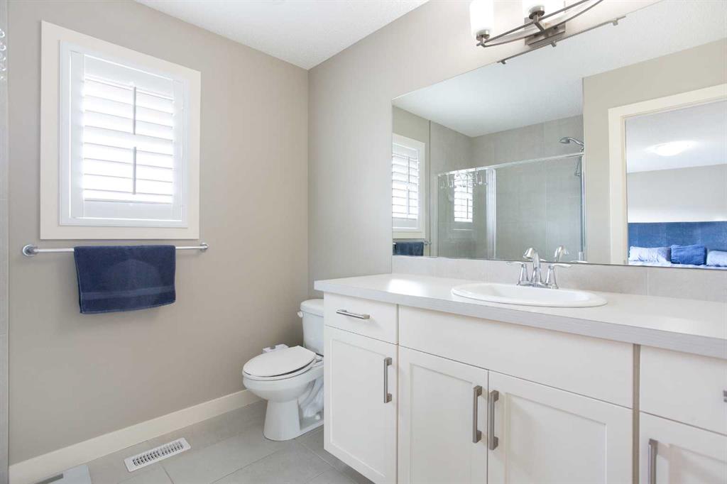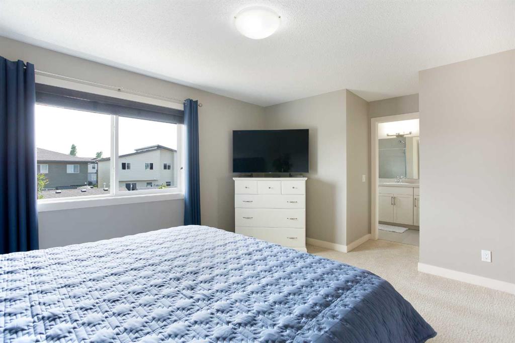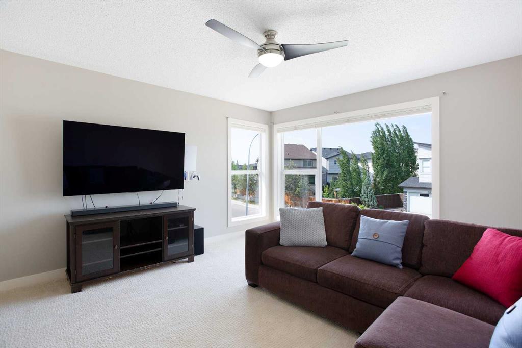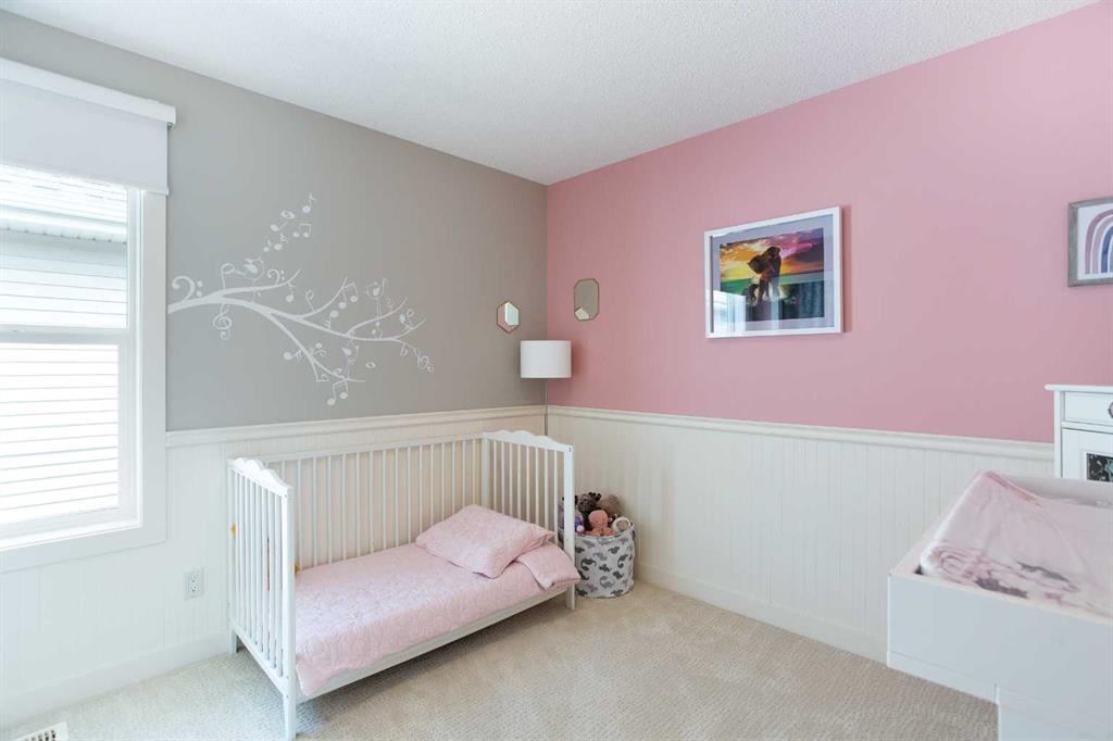 Upstairs, the primary bedroom easily fits a king-sized bed with room to spare, and includes a walk-in closet and a full ensuite with an oversized shower. Laundry is conveniently located just outside the primary suite. Two generously sized kids’ bedrooms share a full bathroom down the hall. The showstopper? A massive bonus room over the garage with oversized windows that flood the space with natural light—perfect for a playroom or media space.
