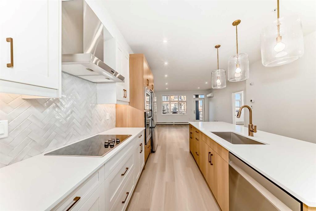 The Atwood 3 is one of award-winning Logel Homes’ most sought-after floor plans. This home features underground heated titled parking along with additional storage for added convenience. The well-designed layout offers two spacious bedrooms, including a primary bedroom with a full ensuite, as well as a second four-piece bathroom. The upgraded kitchen is highlighted by a central island with a breakfast bar, quartz countertops, and a full-height backsplash, and is equipped with a stainless-steel refrigerator, a built-in wall oven, a cooktop, and a microwave hood fan. The kitchen flows seamlessly into the dining area and a generously sized living room, which opens onto an oversized balcony—ideal for both everyday living and entertaining. Located in the desirable Sage Hill community, residents can enjoy scenic natural ravines, convenient access to shopping, and easy connections to major freeways for seamless travel throughout the city. Condo fees include heat, water, and sewer, as well as common-area maintenance, professional management, and contributions to the reserve fund. The purchase price includes GST and is backed by the Alberta New Home Warranty for added peace of mind.
