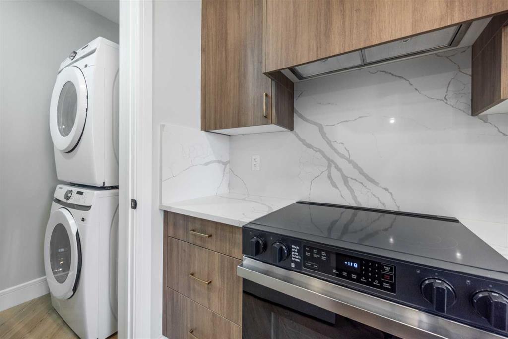 Welcome to The ORO, in Dean’s Landing that redefines modern living. This brand-new, never-occupied residence features 824 sq ft of thoughtfully designed space, boasting lofty 9′ to 10′ ceilings and an abundance of natural light from large windows. Step outside to your own private 248 sq ft balcony, perfect for hosting summer barbecues or enjoying a serene morning coffee. The chef-inspired kitchen offers ample countertops and a dedicated pantry, while the spacious bedroom accommodates a queen-size bed with ease, complemented by a large closet. Convenience is key with in-suite laundry facilities discreetly placed away from the living areas. The unit includes a titled parking stall, and the building is secured with heated underground parking, bicycle storage, and an electric charging stations. Nestled in Rohit’s Deans Landing., The unit is just moments away from shopping and dining in the award-winning University District, as well as the University of Calgary, Market Mall, Children’s and Foothills Hospitals. Enjoy nearby parks, scenic pathways, schools, and recreation centers, making this the perfect home for students, professionals, and families alike. Experience the ultimate blend of style, comfort, and convenience in University District —your new place to call home awaits! Book to view!