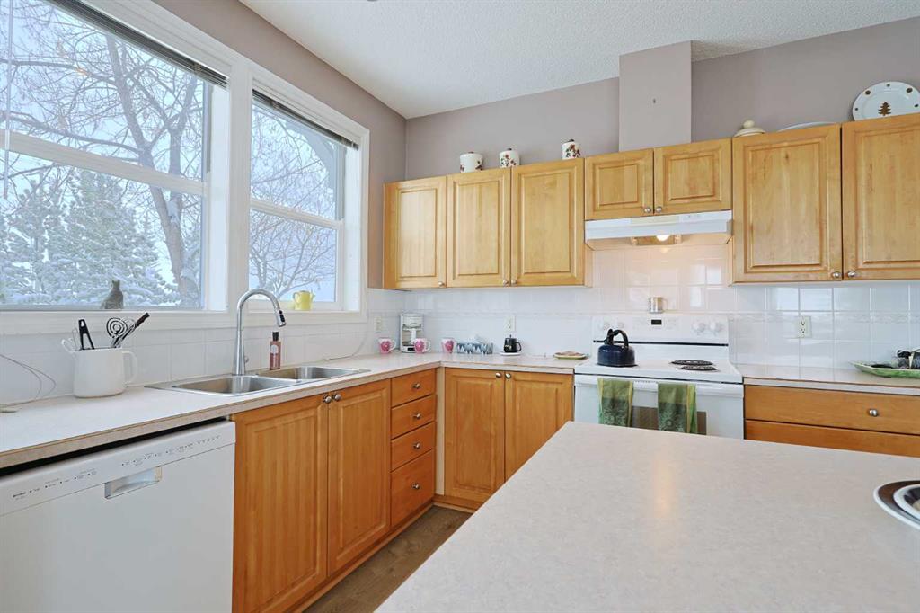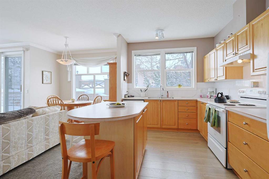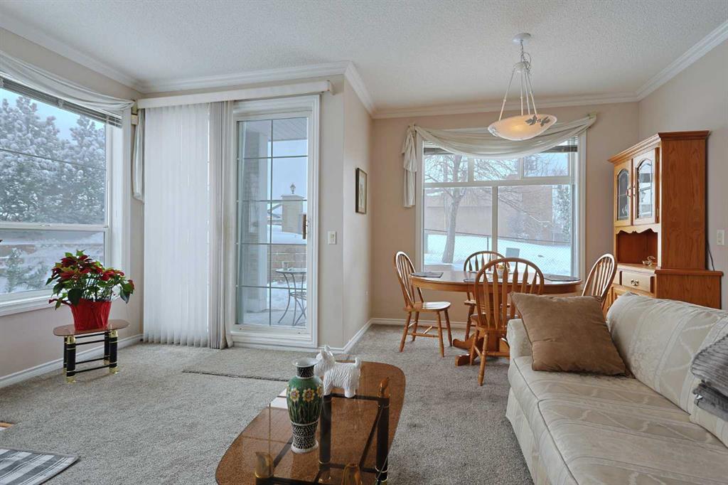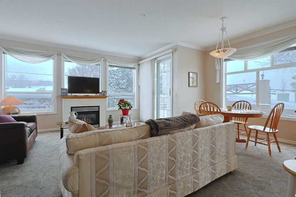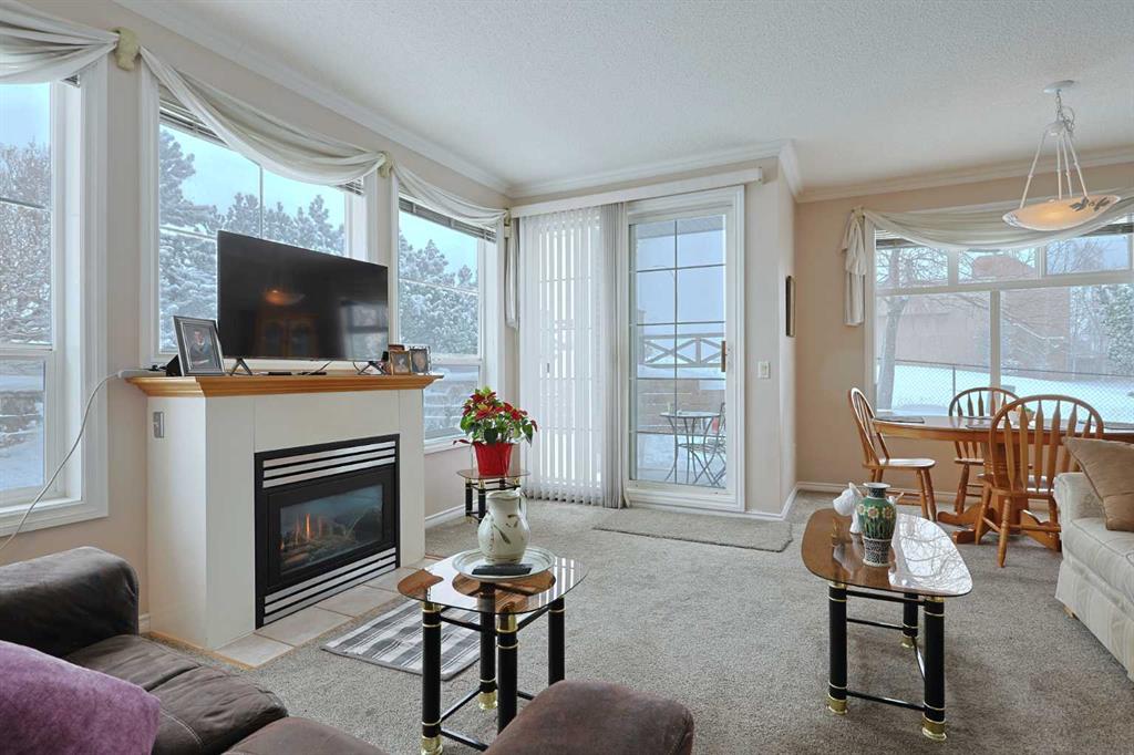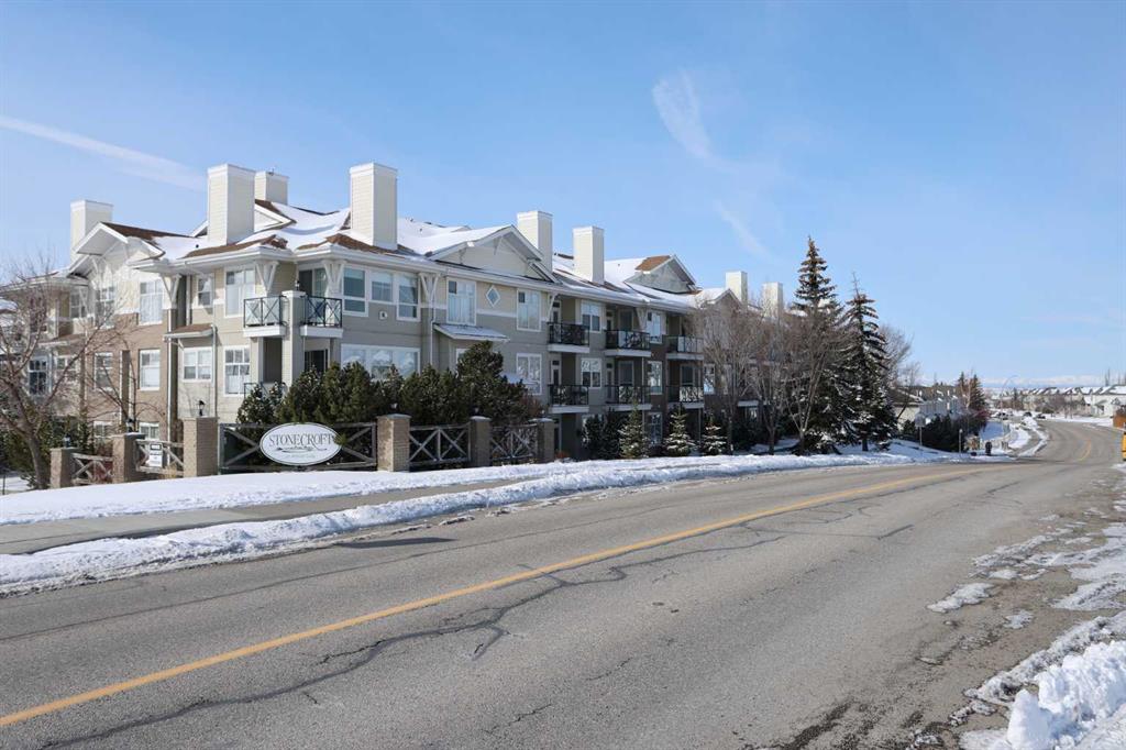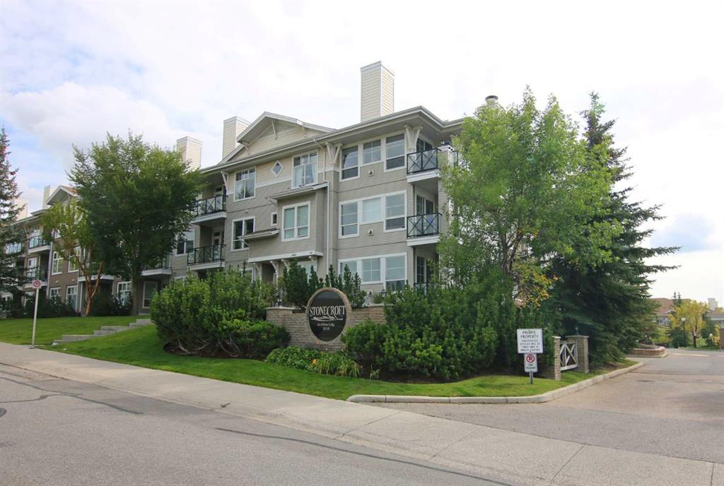 First-time offered in over 20 years is this wonderful home in the popular STONECROFT ARBOUR LAKE condo project…a light & airy corner unit with 2 bedrooms + den, extra-wide titled parking stall, 2 full bathrooms & new carpets, laminate floors & kitchen appliances. You’ll absolutely love the bright & open feel of this dynamite main floor end unit, with its expansive windows & high ceilings, large living room with toasty gas fireplace, cozy dining room area & sunny kitchen with island & new sink/faucet, new white appliances & loads of cabinet space. The primary bedroom is a fantastic size & features a great-sized closet & private ensuite with walk-in shower. The 2nd bedroom also has a large closet & is right across from the 2nd full bathroom. Insuite laundry with space-saving Whirlpool washer/dryer. For your outdoor enjoyment, relax on your private covered patio complete with natural gas hook-up for your BBQ. You’ll love the convenience of having easy access via the stairwell that is just steps from your unit, to both the outside & down to the underground parkade to your “end unit” parking stall…which is extra wide, & your storage locker…only steps from the stairwell. Improvements in 2025 include kitchen appliances, carpet, laminate floors, both toilets, repainted ceilings & kitchen sink/faucet. Monthly condo fees include heat & water-sewer. The residents of STONECROFT ARBOUR LAKE have access to inviting lounges with kitchens & fireplaces, bike storage, guest suites, workshop & plenty of parking spaces for their visiting friends & family. The Arbour Lake Residents Club & the lake are literally moments away…with its sandy beaches, tennis courts & playground, & is the site of year-round community activities: fishing, boating, ice skating & so much more. Unbeatable location within walking distance to bus stops, close to neighbourhood schools & all the shopping, restaurants & the LRT at Crowfoot Centre are within easy reach. Quick access to both Stoney & Crowchild Trails, providing easy access to the University of Calgary & hospitals (Foothills, Alberta Children’s & Arthur J. E. Child Cancer Centre), major retail centers, YMCAs (Shane & Melcor), Crowfoot Library & downtown.