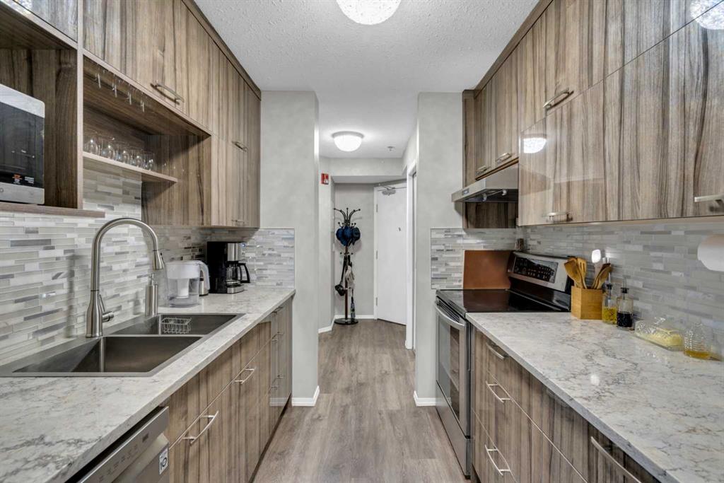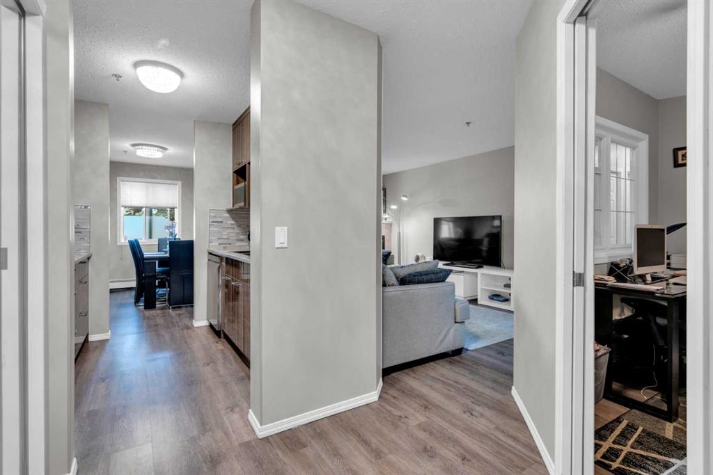 ***BRAND NEW FLOORING THROUGHOUT***Welcome to a very large (1100+ sq.ft) 2 bedroom/2 bathroom + DEN….FULLY RENOVATED apartment located in Chaparral Ridge. Your future home is located on the main floor (north side, in a well managed building with a TITLED UNDERGROUND parking spot (conveniently located right by the parkade entrance) and a secure storage locker. The current owner upgraded and updated the unit in 2022, so there’s nothing for you to do here, other than ENJOYING LIFE! You will love the high end kitchen with gorgeous brand new cupboards, brand new granite countertops and stainless steel appliances. The bathrooms have been also upgraded with new vanities. New carpet in both bedrooms! Now let’s talk about the layout! This has a very rare and super functional floor plan that offers an office/den with an interior window right off the entrance, a large living room with a corner gas fireplace and access to the balcony, a formal dining room and the kitchen. Further down the hall you will find a very large laundry/storage room, a 4PC bathroom, and the two bedrooms. The master bedroom has its own 4PC ensuite. Both bedrooms are spacious. The unit is north facing which is great during the hot summer months. There are no age restrictions for this complex. The complex is conveniently located a short walking distance to the Bow River/Fish Creek Park and their vast pathway system. The Blue Devil golf club is only a 7 minute drive, offering a unique experience in a river valley setting! Super easy access to Stoney Trail and Deerfoot. Book your private showing before it’s gone!