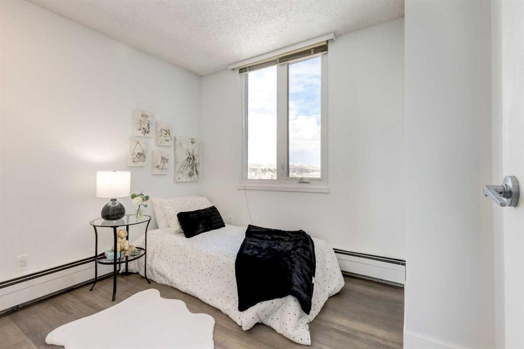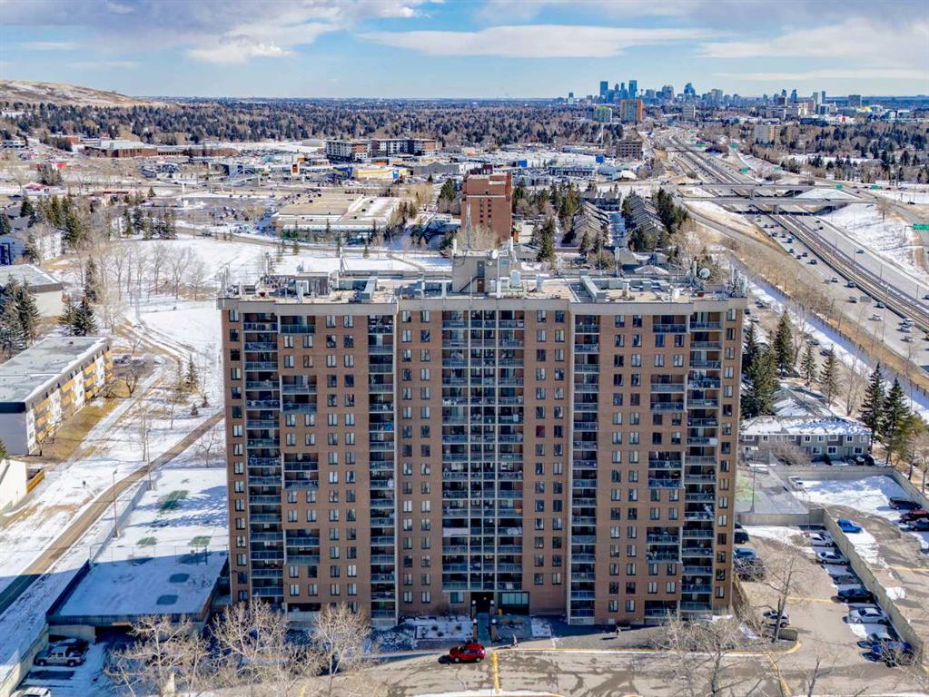 Located in the sought-after and established NW community of Dalhousie, this bright and refreshed 2bed/1bath CORNER unit on the 11th floor of the concrete Fortress building offers comfortable living space, picturesque mountain views, and an abundance of natural light. The unit has been thoughtfully updated over the past few years and it was recently repainted throughout creating a fresh and welcoming atmosphere. The kitchen features sleek, glossy cabinetry and white appliances. The 4 piece bath has also been updated with a clean, streamlined feel. New closet doors throughout the unit enhance the look, all of the carpet has been removed and replaced with durable engineered flooring giving the home a cohesive, contemporary style that’s easy to maintain. The bright and comfortable living/dining combo area provides a relaxing place to unwind and offers room to gather around the table. The functional floorplan flows naturally toward the west facing balcony, extending the living space outdoors. Once you step outside onto the balcony you’ll get to soak in mountain views and the glowing of the city during evening sunsets. It’s the perfect place to enjoy your morning coffee or unwind with a book at the end of the day. The in-suite storage room is the perfect flex space for whatever gear you may have, or use it as a pantry or even a little office space. This unit also includes an assigned parking stall conveniently located close to the side entrance, making everyday access and grocery trips especially easy. Ample visitor parking is also available for guests. The Fortress offers an impressive range of amenities. Residents can stay active year-round with the fitness centre and indoor swimming pool. You can enjoy a friendly match on the outdoor tennis court during the warmer months. The party room with kitchen is ideal for hosting gatherings and celebrations, while bike storage makes it easy to store your bicycle after rides along nearby pathways. Smart card laundry facilities add everyday convenience within the building. The location offers easy access to Dalhousie station and major roadways making commuting simple. It’s also just mins from the University of Calgary, Foothills Medical Centre, and the Alberta Children’s Hospital, along with events and athletics at McMahon Stadium. Nearby shopping destinations such as University District, CF Market Mall and Crowfoot Crossing offer a wide variety of stores, restaurants and entertainment options. Outdoor enthusiasts will appreciate the proximity to some of Calgary’s most beloved green spaces, including Nose Hill Park, Bowness Park, and Edworthy Park, where you can enjoy scenic river pathways, cycling routes, and beautiful natural surroundings. Come view this unit for yourself.