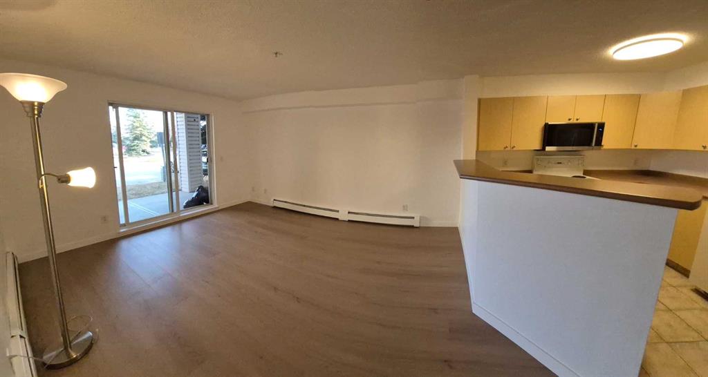 Welcome home to your easily accessible ground level, 2 bedroom 1 bath condo that i includes in suite laundry. With urgent care across the street, numerous dining and shopping right next door, and many schools (catholic K-9 and public K-12) walking distance, driving becomes optional. This is a beautiful spacious east facing unit that brings in the morning sun. Freshly painted makes it a blank canvas for you to add your personal touch. Newly installed 8mm luxury vinyl plank flooring makes easy to clean and maintain, along with an amazing feel on your feet. We invite you to come see for yourself and experience a condo to call home in a great building full of community and great neighbors. Unit has sprinklers and a main floor patio.