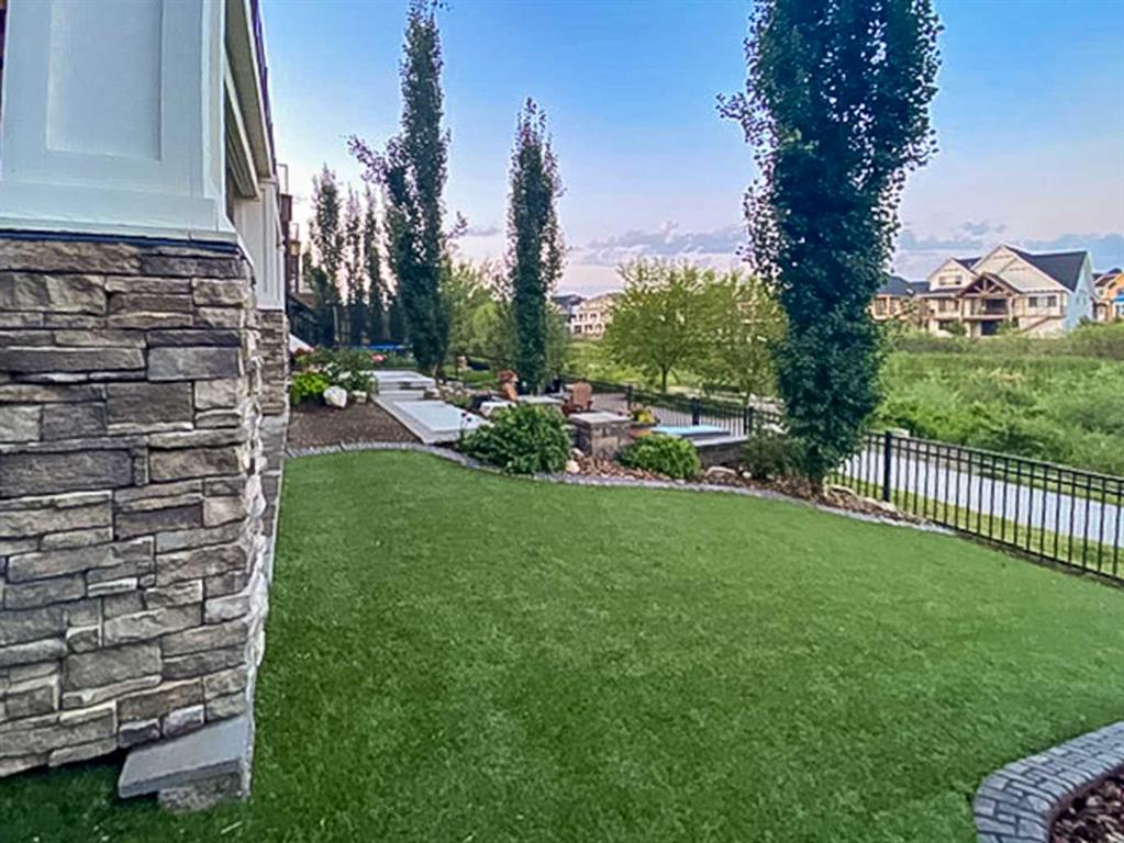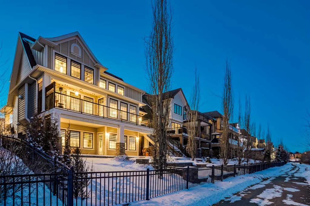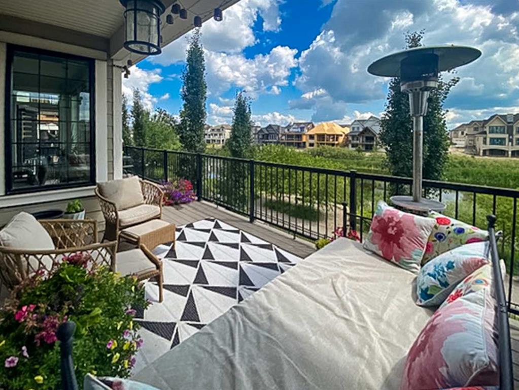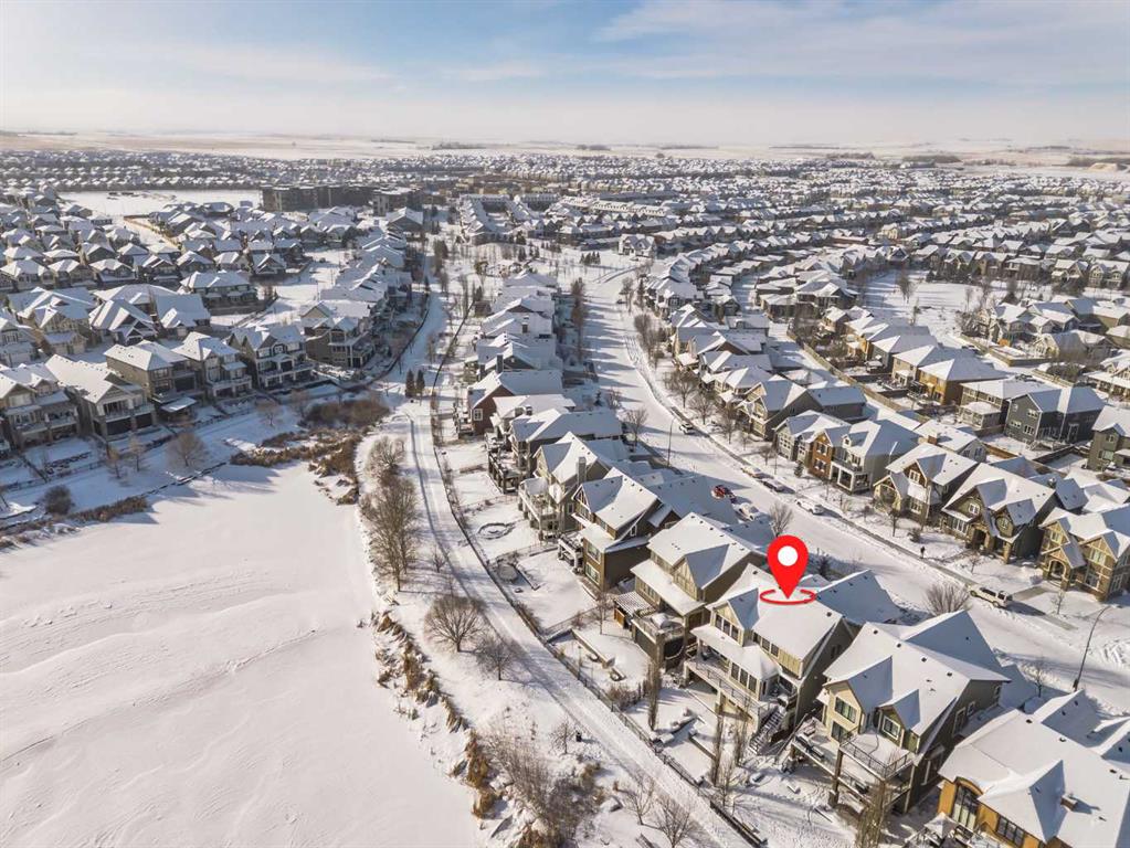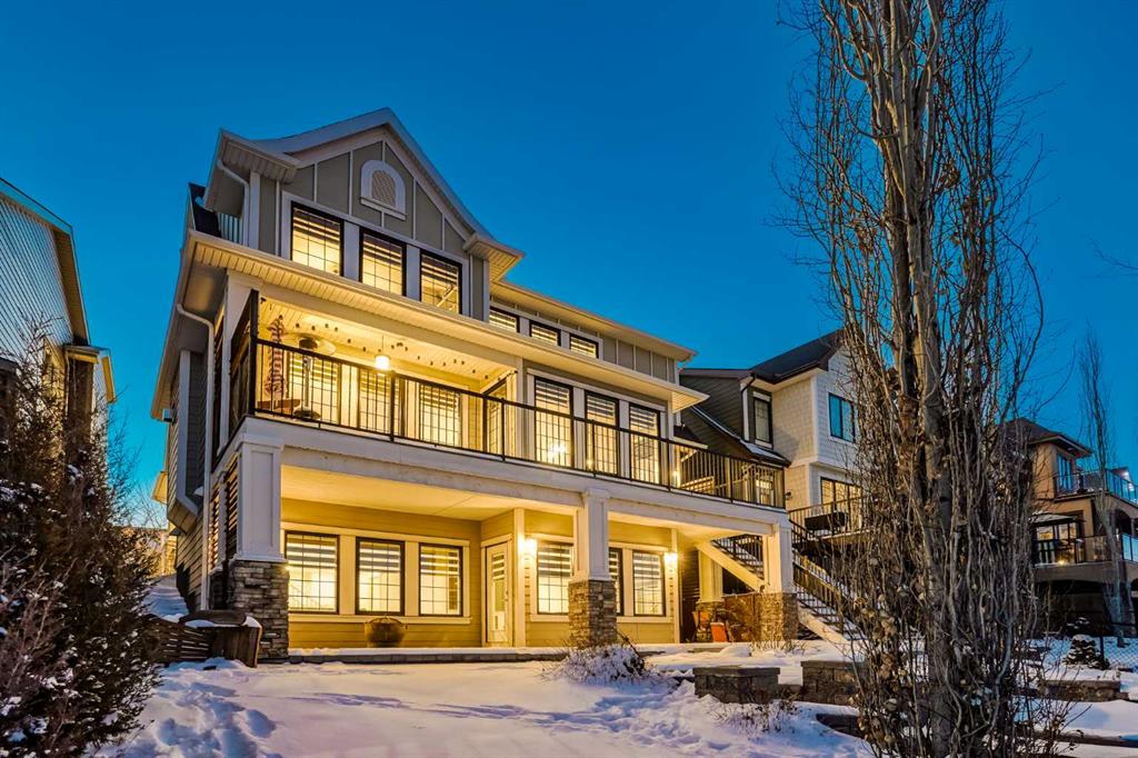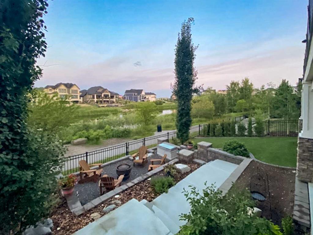 **OPEN HOUSE SUN MAR 1st 12PM – 4PM** Welcome to this exceptional McKee-built custom home in the prestigious community of Coopers Crossing, where refined craftsmanship meets unobstructed pond-side living. Offering over 3,700 sqft of professionally developed living space, this fully finished 4-bedroom, 3.5-bathroom walk-out home delivers an elevated lifestyle defined by architectural detail and premium upgrades. From the moment you arrive, the curb appeal is undeniable – an exposed aggregate driveway, covered front porch with cedar soffit detailing, and a fully landscaped lot create a strong first impression. The 708 sqft triple tandem heated garage is both functional and impressive, complete with overhead storage and room for vehicles, toys, or workshop space. Inside, a dramatic open-rise staircase anchors the main level, while engineered hardwood flooring flows throughout. The great room is designed for both everyday living and upscale entertaining, featuring a custom fireplace surround with built-ins and expansive windows framing tranquil pond views. The chef-inspired kitchen is a true showpiece. Thoughtfully upgraded with crisp white cabinetry, double islands, and premium stainless steel appliances, it includes a 48” Jenn-Air dual-fuel gas range, Vent-A-Hood range hood, and Electrolux side-by-side refrigerator/freezer. An exquisite under mount sink and refined finishes complete this elevated culinary space. From this level, step outside to your private backyard oasis: a full-width 33’4” x 9’8” composite deck with stairs leading to professionally designed stone scaping, low-maintenance turf, and a dedicated firepit and patio area (15’4” x 10’4”). Upstairs, vaulted ceilings and two skylights flood the bonus room, primary suite, ensuite, and laundry room with natural light. The primary retreat offers serene water views and a spa-inspired ensuite designed for relaxation. Three additional bedrooms complete the upper level, including one with a charming Juliet balcony. The fully developed walk-out basement extends the living space seamlessly outdoors and features a wet bar, spacious recreation area, hobby room, and additional storage. Morning coffees overlooking the water in summer. Skating on the pond in winter. This is a home designed to be experienced in every season. Additional highlights include upper-level exterior pot lights, custom built-ins throughout, security camera system and panel, pre-wired in-ceiling speakers with two Sonos bridges, dual furnaces plus A/C. Rarely do homes combine this level of finish, functionality, and uninterrupted pond views in one of Airdrie’s most sought-after communities. This is luxury living – without compromise.
