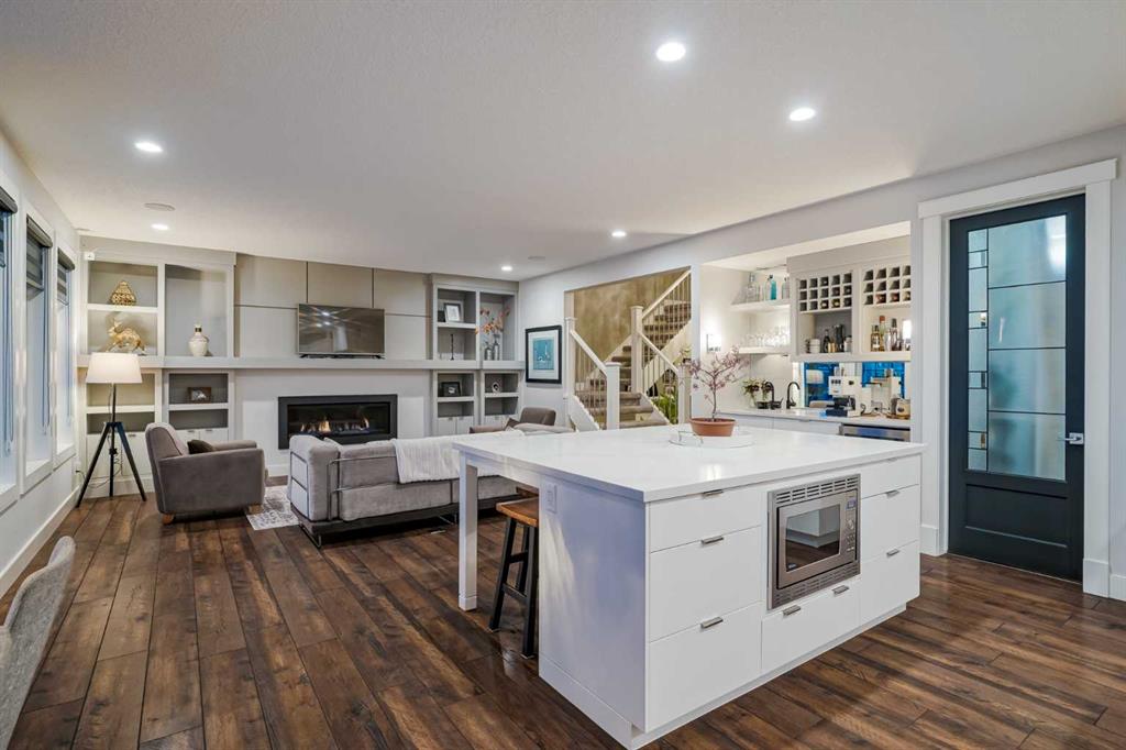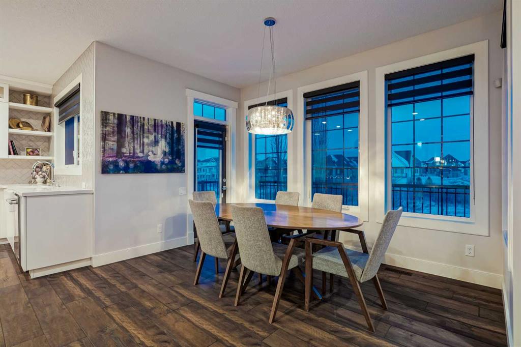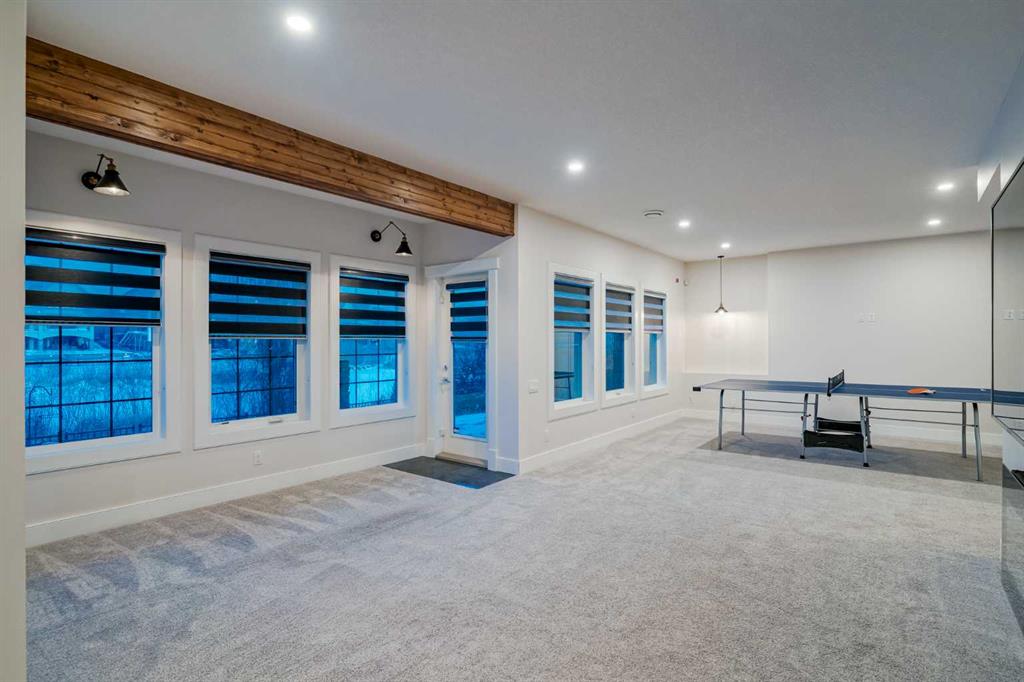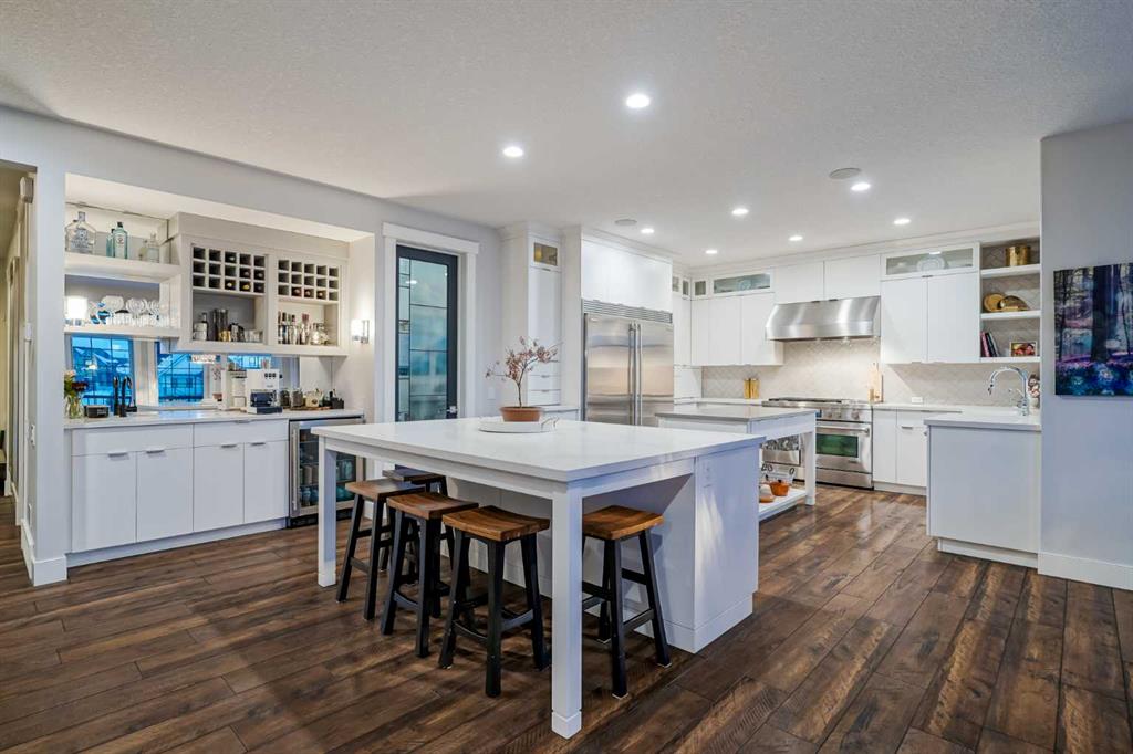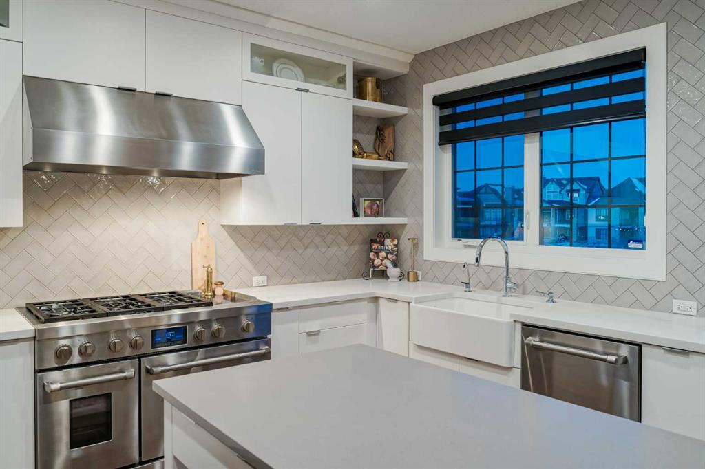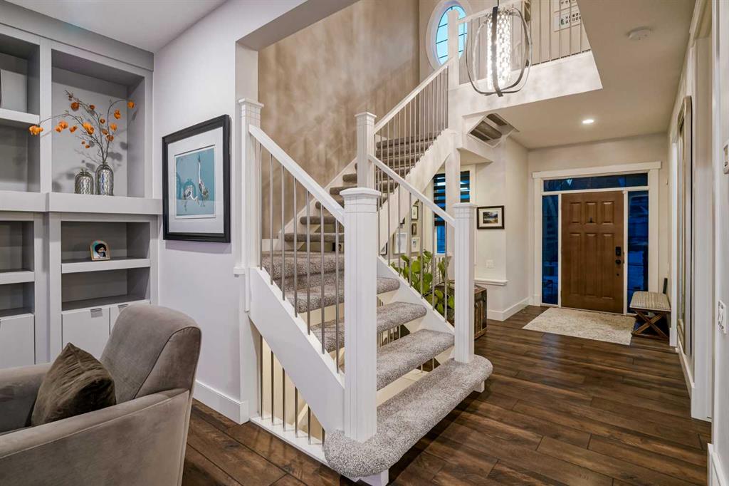 **OPEN HOUSE SUN MAR 1st 12PM – 4PM** Welcome to this exceptional McKee-built custom home in the prestigious community of Coopers Crossing, where refined craftsmanship meets unobstructed pond-side living. Offering over 3,700 sqft of professionally developed living space, this fully finished 4-bedroom, 3.5-bathroom walk-out home delivers an elevated lifestyle defined by architectural detail and premium upgrades. From the moment you arrive, the curb appeal is undeniable – an exposed aggregate driveway, covered front porch with cedar soffit detailing, and a fully landscaped lot create a strong first impression. The 708 sqft triple tandem heated garage is both functional and impressive, complete with overhead storage and room for vehicles, toys, or workshop space. Inside, a dramatic open-rise staircase anchors the main level, while engineered hardwood flooring flows throughout. The great room is designed for both everyday living and upscale entertaining, featuring a custom fireplace surround with built-ins and expansive windows framing tranquil pond views. The chef-inspired kitchen is a true showpiece. Thoughtfully upgraded with crisp white cabinetry, double islands, and premium stainless steel appliances, it includes a 48” Jenn-Air dual-fuel gas range, Vent-A-Hood range hood, and Electrolux side-by-side refrigerator/freezer. An exquisite under mount sink and refined finishes complete this elevated culinary space. From this level, step outside to your private backyard oasis: a full-width 33’4” x 9’8” composite deck with stairs leading to professionally designed stone scaping, low-maintenance turf, and a dedicated firepit and patio area (15’4” x 10’4”). Upstairs, vaulted ceilings and two skylights flood the bonus room, primary suite, ensuite, and laundry room with natural light. The primary retreat offers serene water views and a spa-inspired ensuite designed for relaxation. Three additional bedrooms complete the upper level, including one with a charming Juliet balcony. The fully developed walk-out basement extends the living space seamlessly outdoors and features a wet bar, spacious recreation area, hobby room, and additional storage. Morning coffees overlooking the water in summer. Skating on the pond in winter. This is a home designed to be experienced in every season. Additional highlights include upper-level exterior pot lights, custom built-ins throughout, security camera system and panel, pre-wired in-ceiling speakers with two Sonos bridges, dual furnaces plus A/C. Rarely do homes combine this level of finish, functionality, and uninterrupted pond views in one of Airdrie’s most sought-after communities. This is luxury living – without compromise.