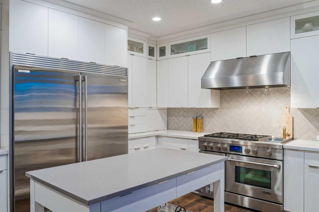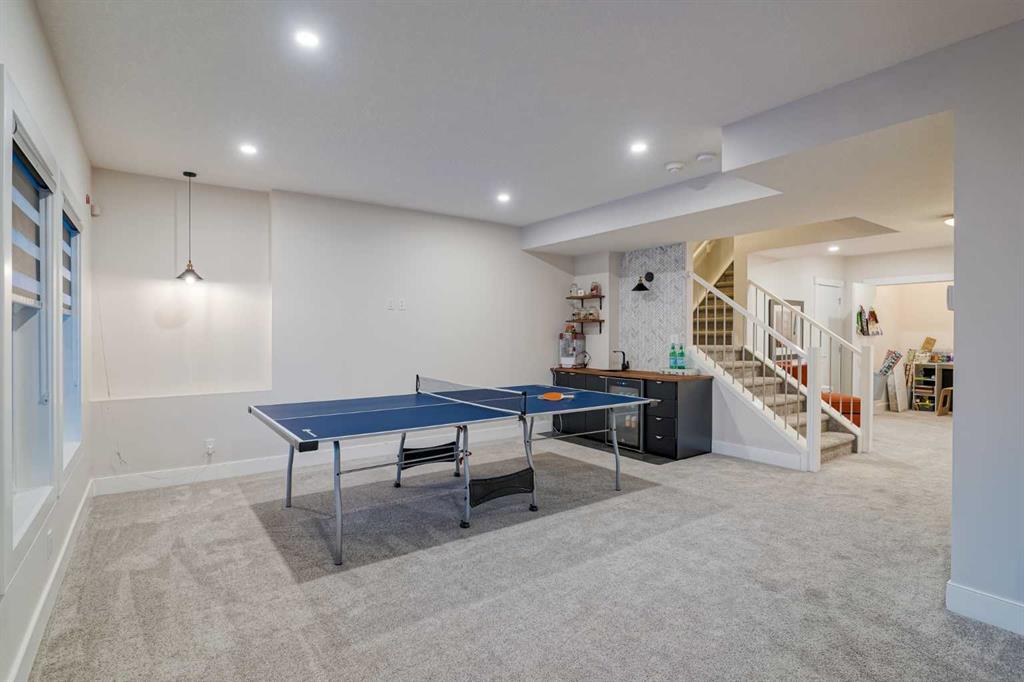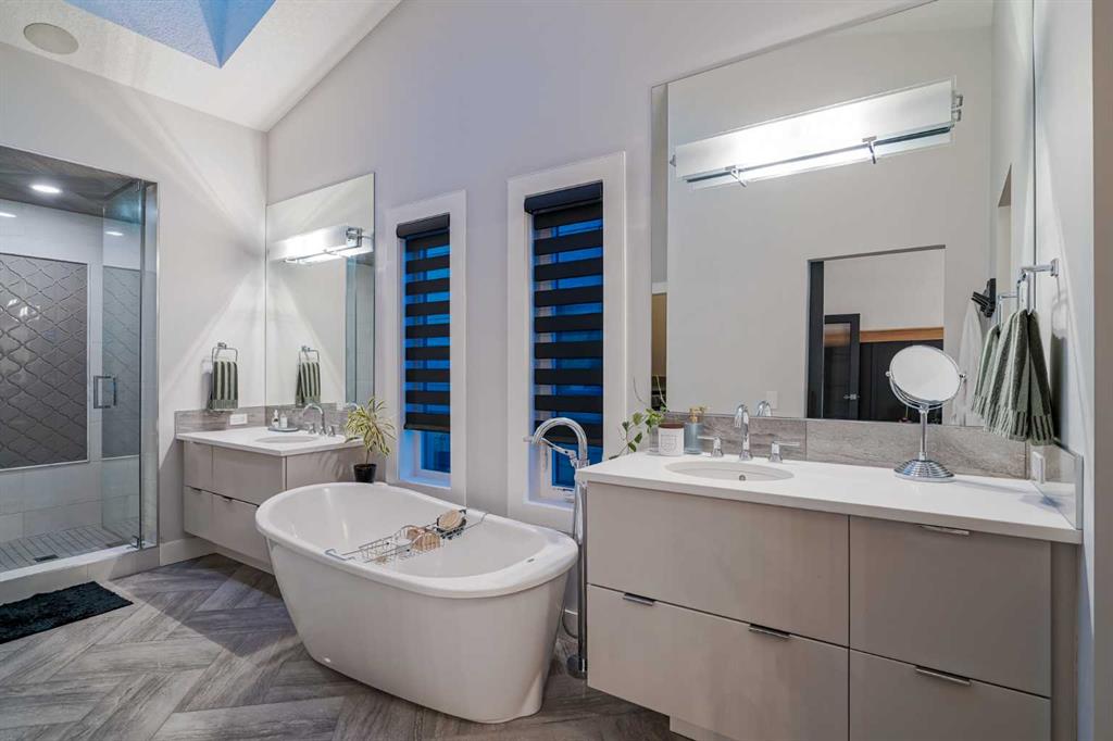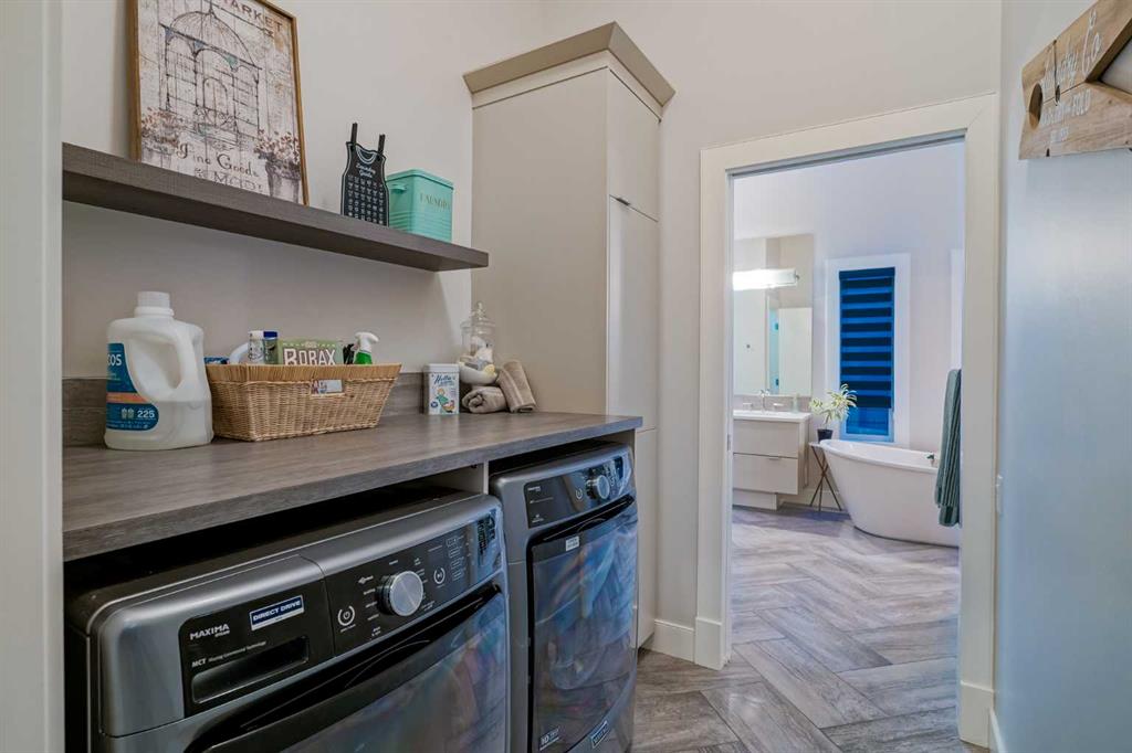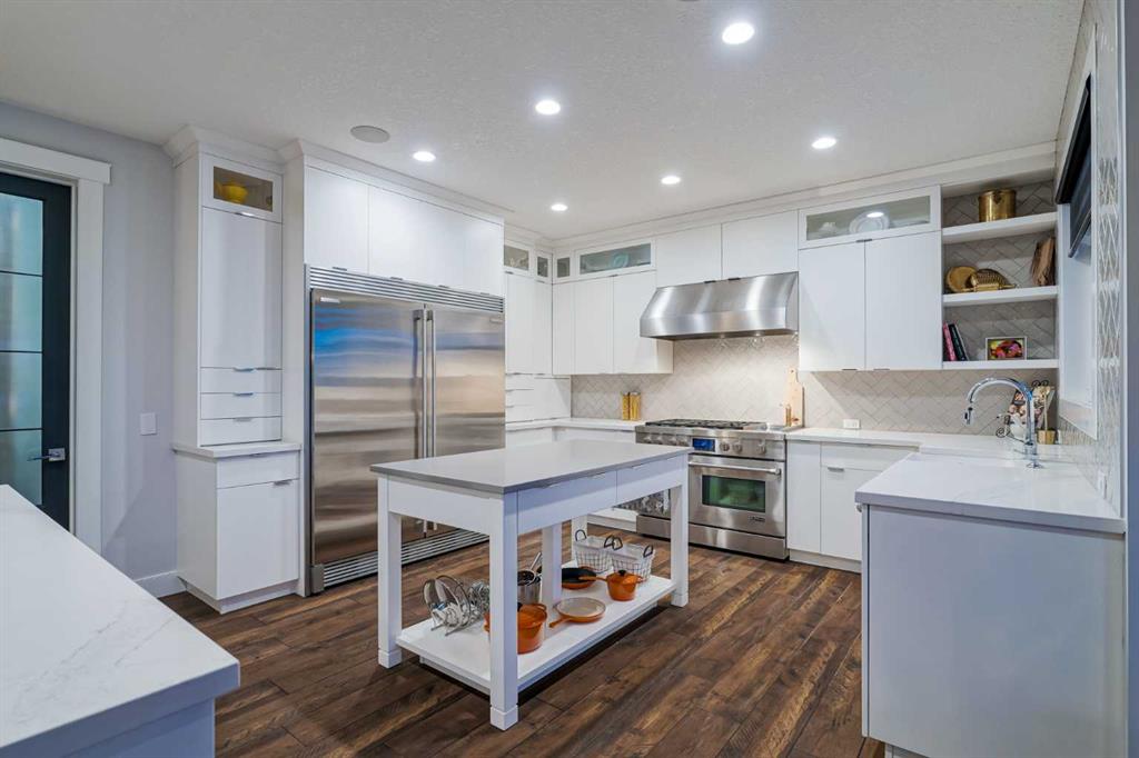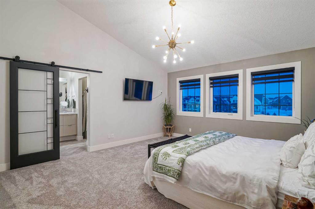 **OPEN HOUSE SUN MAR 1st 12PM – 4PM** Welcome to this exceptional McKee-built custom home in the prestigious community of Coopers Crossing, where refined craftsmanship meets unobstructed pond-side living. Offering over 3,700 sqft of professionally developed living space, this fully finished 4-bedroom, 3.5-bathroom walk-out home delivers an elevated lifestyle defined by architectural detail and premium upgrades. From the moment you arrive, the curb appeal is undeniable – an exposed aggregate driveway, covered front porch with cedar soffit detailing, and a fully landscaped lot create a strong first impression. The 708 sqft triple tandem heated garage is both functional and impressive, complete with overhead storage and room for vehicles, toys, or workshop space. Inside, a dramatic open-rise staircase anchors the main level, while engineered hardwood flooring flows throughout. The great room is designed for both everyday living and upscale entertaining, featuring a custom fireplace surround with built-ins and expansive windows framing tranquil pond views. The chef-inspired kitchen is a true showpiece. Thoughtfully upgraded with crisp white cabinetry, double islands, and premium stainless steel appliances, it includes a 48” Jenn-Air dual-fuel gas range, Vent-A-Hood range hood, and Electrolux side-by-side refrigerator/freezer. An exquisite under mount sink and refined finishes complete this elevated culinary space. From this level, step outside to your private backyard oasis: a full-width 33’4” x 9’8” composite deck with stairs leading to professionally designed stone scaping, low-maintenance turf, and a dedicated firepit and patio area (15’4” x 10’4”). Upstairs, vaulted ceilings and two skylights flood the bonus room, primary suite, ensuite, and laundry room with natural light. The primary retreat offers serene water views and a spa-inspired ensuite designed for relaxation. Three additional bedrooms complete the upper level, including one with a charming Juliet balcony. The fully developed walk-out basement extends the living space seamlessly outdoors and features a wet bar, spacious recreation area, hobby room, and additional storage. Morning coffees overlooking the water in summer. Skating on the pond in winter. This is a home designed to be experienced in every season. Additional highlights include upper-level exterior pot lights, custom built-ins throughout, security camera system and panel, pre-wired in-ceiling speakers with two Sonos bridges, dual furnaces plus A/C. Rarely do homes combine this level of finish, functionality, and uninterrupted pond views in one of Airdrie’s most sought-after communities. This is luxury living – without compromise.
