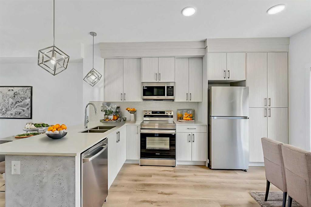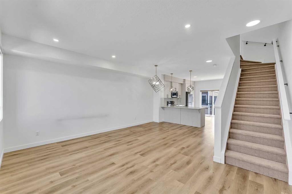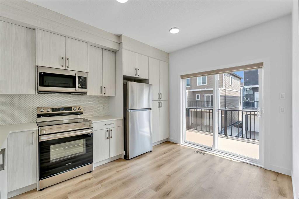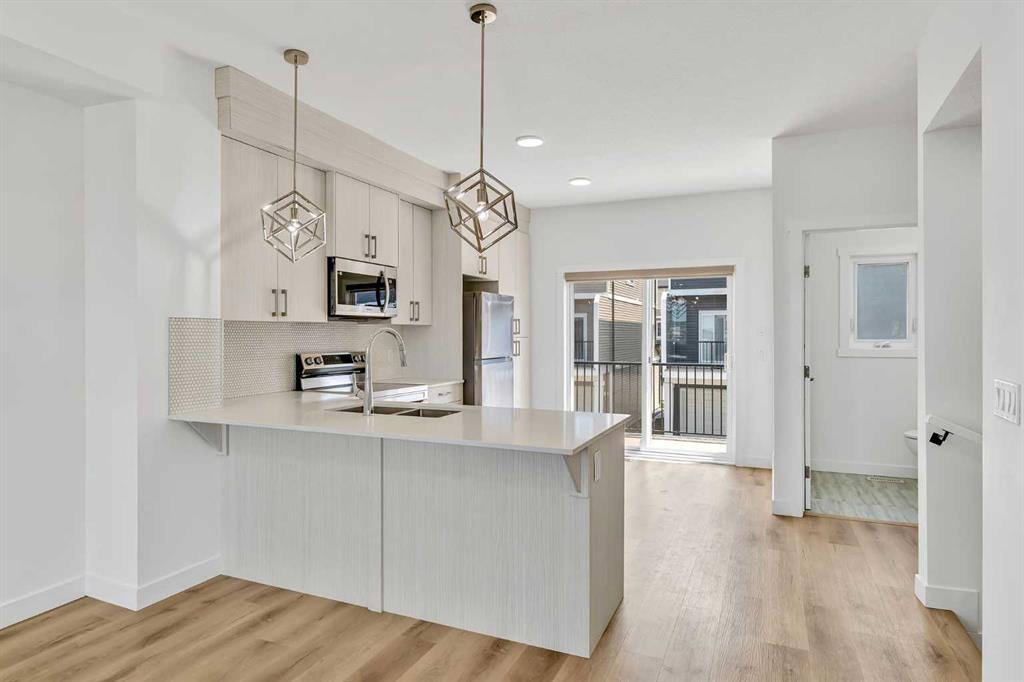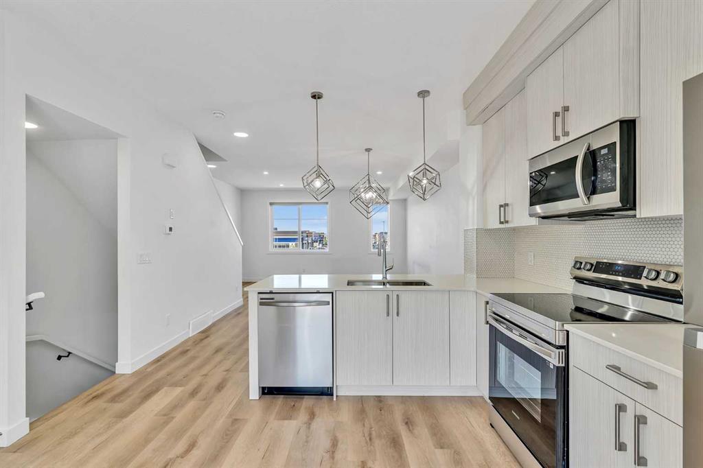 CORNER UNIT TOWNHOME! LOW CONDO FEE! CLOSE TO YYC AIRPORT! SHOPPING AND TRANSIT NEARBY! WELCOME to this BRAND NEW 3 STOREY TOWNHOME IN THE MOST SOUGHT AFTER COMMUNITY OF CORNERSTONE! This TOWNHOME is LOCATED in CORNERSTONE’S NEWEST TOWNHOME COMPLEX CALLED THE CENTRO! This TOWNHOME FEATURES LUXURY VINYL PLANK FLOORING, TEXTURED KITCHEN CABINETS, QUARTZ COUNTERTOPS, STAINLESS STEEL APPLIANCES AND AN ATTACHED TANDEM SINGLE CAR GARAGE (FIITS 2 VEHICLES). The MAIN FOYER is CONVENIENTLY LOCATED NEXT TO YOUR GARAGE. On the SECOND LEVEL you will find your LOVELY UPGRADED KITCHEN OVER LOOKING YOUR HUGE DINING AND LIVING ROOM (FEATURING 9 FT CEILINGS!). The KITCHEN ITSELF IS DESIGNED ELEGANTLY WITH STORAGE IN MIND AS WELL AS CONVENIENCE with a KITCHEN ISLAND, CABINETS TO THE TOP OF THE CEILING AND A MICROWAVE HOOD FAN! Behind the KITCHEN IS YOUR HUGE BALCONY THAT IS PERFECT FOR BBQING! There is also an ADDITIONAL 2PC BATHROOM ON THE MAIN FLOOR! On the THIRD LEVEL, you will find 3 BEDS (ONE OF WHICH IS THE GRAND MASTER BEDROOM FEATURING A WALK-IN CLOSET AND A 3 PC ENSUITE!) PLUS AN ADDITIONAL 4 PC BATHROOM AND YOUR LAUNDRY AREA! THE LAUNDRY AREA BEING ON THE THIRD LEVEL MAKES IT VERY CONVENIENT FOR LAUNDRY DAYS! This ENTIRE TOWNHOME AND TOWNHOME COMPLEX IS BUILT TO MAKE LIFE EASIER, WHETHER ITS THE THIRD FLOOR LAUNDRY OR THE CONVENIENCE OF BEING IN WALKING DISTANCE TO CHALO FRESHCO, BMO, TIM HORTONS AND MANY MORE LOCAL DELIGHTS! BOOK YOUR SHOWING TODAY!