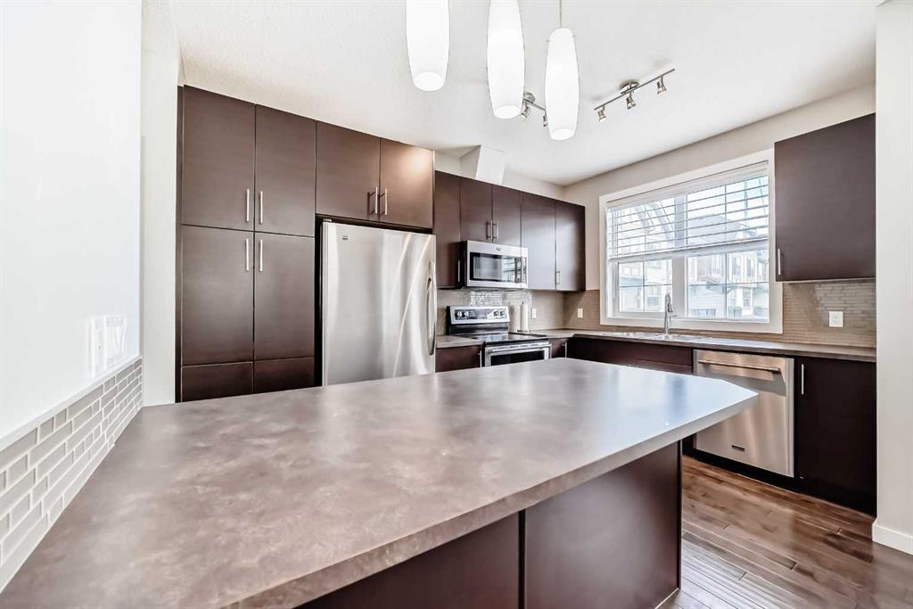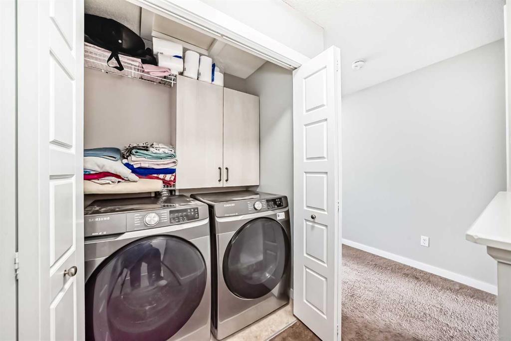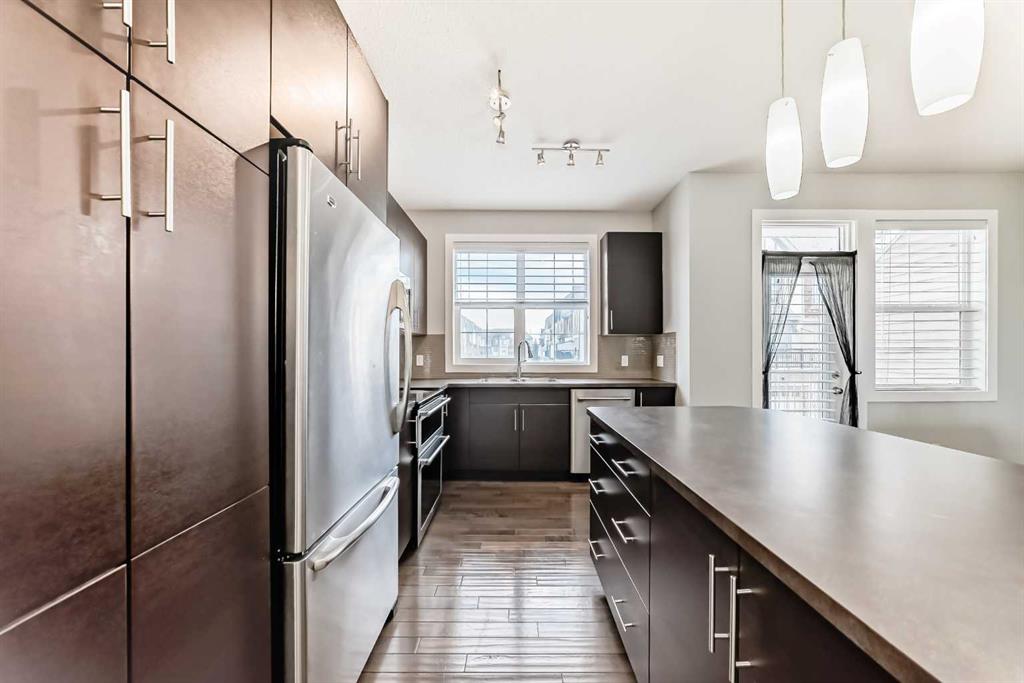 OPEN HOUSE – Saturday, Mar 7th, 12:00-4:00pm — Welcome to this beautifully maintained two-storey townhome in the highly sought-after community of New Brighton. Offering over 1,500 sq ft of living space and an attached heated double garage, this home combines comfort, style, and functionality. Step inside through the spacious front entry and head up to the bright open-concept main living area, featuring hardwood flooring, and large windows that fill the space with natural light. The kitchen is a true highlight and a chef’s dream, complete with custom cabinetry, modern tile backsplash, a large island, and upgraded appliances including a Maytag refrigerator, double oven, and dishwasher. The adjacent dining area provides plenty of space for entertaining and offers access to a private balcony — perfect for summer BBQs. A conveniently located half bathroom completes the main level. Upstairs you’ll find three spacious bedrooms, all featuring large windows. The primary suite includes a walk-in closet and private ensuite, while the two additional bedrooms offer generous closet space and share a beautifully finished full bathroom with modern tile work. The upper floor also features a large laundry area with built-in cabinetry and storage, along with a Samsung washer and dryer. A tucked-away bonus storage room on the staircase landing offers the perfect place for seasonal items or a fun hideaway for kids. The lower level provides another versatile room, ideal for a home office, workout space, or flex room, along with access to the utility room and attached garage. Located in one of Calgary’s most family-friendly communities, New Brighton offers excellent schools, nearby shopping, and quick access to major roadways. Residents also enjoy access to the New Brighton Clubhouse, featuring a water park, hockey rink, tennis courts, and event facilities. Don’t miss your chance to own this exceptional home — book your private viewing today!