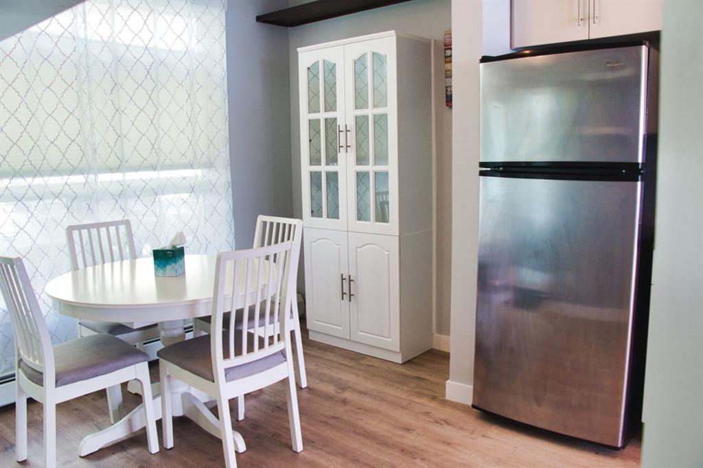 Welcome to this well kept townhome style condo in Mount Pleasant. It sits on a quiet, tree lined street with quick access to SAIT, the CTrain, Kensington, Confederation Park, Riley Park, restaurants, coffee shops and everything else the area is known for. The main floor feels open and bright with large windows and a clean modern look. The kitchen has quartz counters, stainless steel appliances and plenty of cabinet space, and it flows nicely into the living and dining areas. The unit also has air conditioning which is a huge bonus in the summer. You have a front patio for morning coffees and a private back patio for grilling or relaxing. The upper floor has a spacious bedroom and a large loft area. The loft is big enough to use as an office, workout space, guest area or anything else you need. A full four piece bathroom and laundry are also upstairs. In 2026 the carpets were replaced, floors were replaced, and the unit was freshly repainted throughout. The building is well managed and has a central courtyard along with titled underground parking and visitor parking. A comfortable home in a great location with flexible space and modern conveniences. Come see it in person.