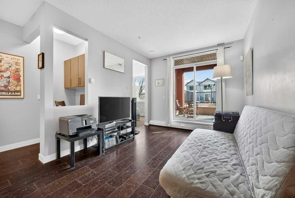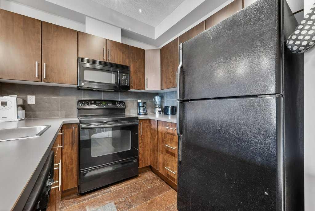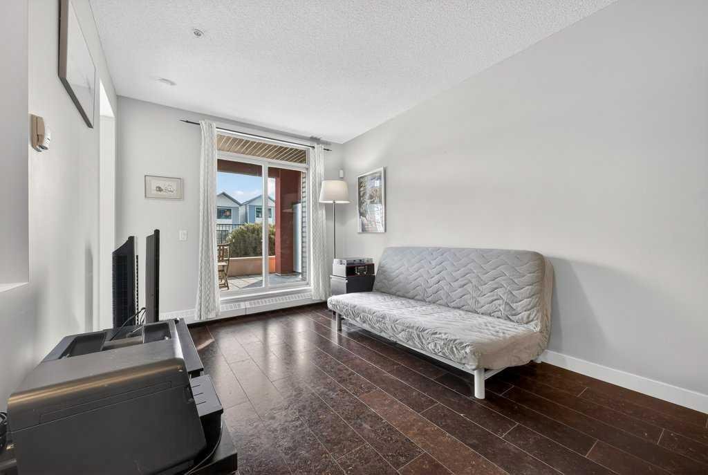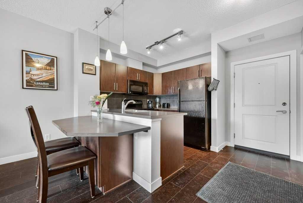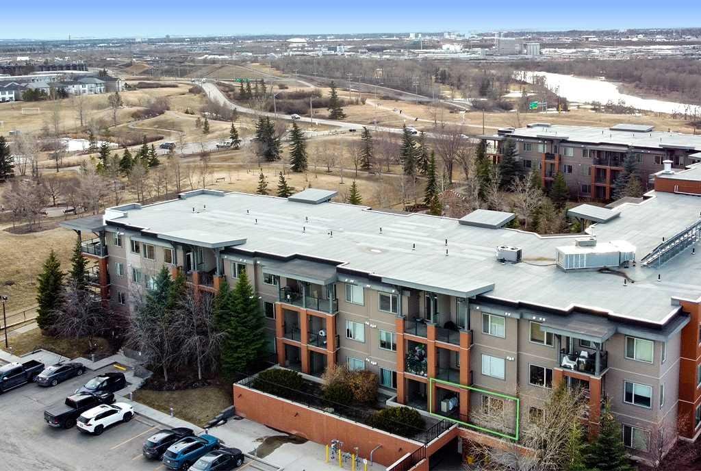 Welcome to this ground-floor condo, ideally located just steps from Valleyview Park and the Bow River pathway system, where you can enjoy beautiful views of the downtown skyline. With easy access to Deerfoot Trail, commuting downtown or reaching any quadrant of the city is effortless. This well-designed 1-bedroom, 1-bathroom unit offers 573 sq ft of comfortable living space, perfect for first-time buyers, downsizers, or investors. The functional layout features warm cork flooring throughout the main living area, a primary bedroom with a walk-in closet, a spacious bathroom and a thoughtfully designed kitchen complete with a large peninsula and breakfast bar. A built-in office nook provides a convenient work-from-home setup, while in-suite laundry and low condo fees (including heat) add to the home’s practicality. Enjoy the peace and privacy of having no neighbours below, along with the convenience of titled parking. Located in a quiet, well-maintained, modern, and pet-friendly building, this home also features a large private patio. You’ll love the easy access to nearby shopping, transit, the Southview Off-Leash Dog Park and a wide variety of dining options along International Avenue.