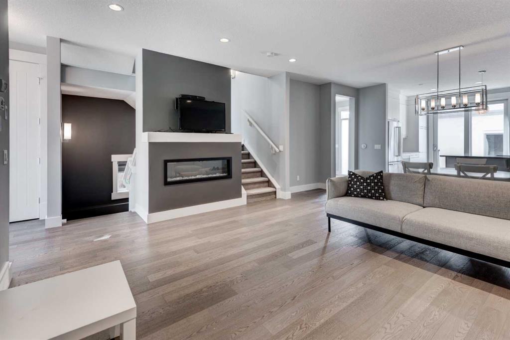 Discover the perfect blend of contemporary design and expert craftsmanship in this stunning three-storey executive home. Offering over 3,100 sqft of beautifully finished living space across four levels, this home is thoughtfully designed to meet the needs of modern family life while delivering timeless elegance. The main floor, with high ceilings and open-concept, is ideal for entertaining and family gatherings. A private front-facing office provides the perfect work-from-home space. The gourmet kitchen features stainless steel appliances, quartz countertops, and custom cabinetry that marries style with functionality. Upstairs, the second level hosts a luxurious primary retreat complete with a spa-inspired five-piece ensuite, including a soaker tub and walk-in shower. A second bedroom with its own ensuite and a convenient laundry room complete this floor.The third level boasts a spacious bonus room with vaulted ceilings and access to a private deck—perfect for entertaining or unwinding. A third bedroom and full bathroom make this level a fantastic option for guests or additional private living space. The fully finished basement includes a fourth bedroom, another full bathroom, and a generous living area—ideal for a media room, gym, or play space. Outside, enjoy the low-maintenance backyard with composite fencing —just step out and relax. The home also features an oversized single garage. Enjoy the convenience of being just a short walk from restaurants, fenced dog park, and scenic walking paths. Ideally located near downtown, Marda Loop, MRU and some of Calgary’s top-rated public and private schools, this home offers the perfect balance of elegance and urban energy.