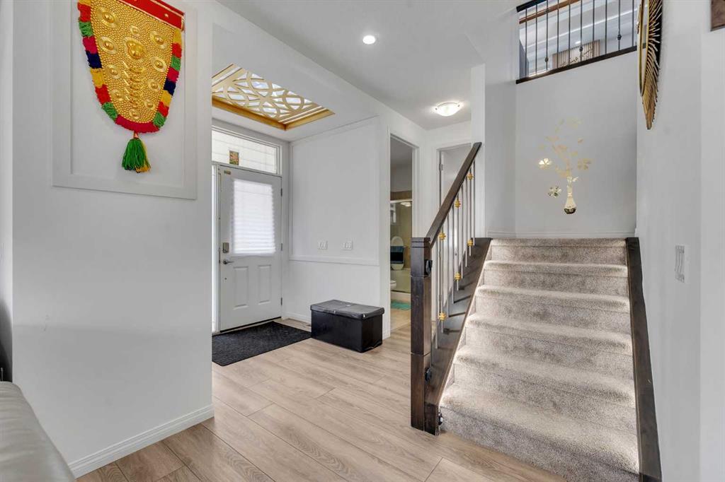 LARGE CORNER LOT | 3 BEDROOM ILLEGAL BASEMENT SUITE | 7 BED + 4 FULL BATH | ATTACHED GARAGE | SOUTH BACKYARD | HIGHLY UPGRADED | Welcome to this impressive 7-bedroom, 4-bathroom home situated on a large corner lot, offering exceptional space, functionality, and versatility for growing families or savvy investors. Step inside to a bright and welcoming foyer, complete with a convenient closet for outerwear. To the left, you’ll find a well-sized main floor bedroom paired with a full bathroom, perfect for guests, extended family, or a home office setup. The spacious living room is filled with natural light and features a cozy fireplace along with an elegant tray ceiling, adding a touch of sophistication and grandeur. The heart of the home is the beautifully designed kitchen, equipped with a curved island, stainless steel appliances, a walk-in pantry, and abundant cabinet and counter space, Ideal for both everyday living and entertaining. Adjacent to the kitchen, the dining area is bright and inviting, making it the perfect place to host family gatherings. This level is completed by a practical mudroom with access to the attached garage. Upstairs, retreat to the generously sized primary bedroom featuring a large walk-in closet and a luxurious 5-piece ensuite. Two additional spacious bedrooms and a 4-piece bathroom provide ample room for family members. A standout feature of this level is the expansive bonus room, highlighted by a tray ceiling and stylish wall paneling, perfect for relaxing or entertaining. A dedicated laundry room adds everyday convenience. The fully developed basement includes a 3-bedroom + 1-bathroom illegal suite with a separate side entrance. This level includes a functional kitchen with stainless steel appliances, ample cabinetry and counter space, its own laundry, a 4-piece bathroom, and a storage/utility room. Outside, enjoy the large, fully fenced backyard, complete with a patio—perfect for summer BBQs and outdoor gatherings. Conveniently located with easy access to major routes such as Country Hills Boulevard, Métis Trail, and Stoney Trail, commuting is simple and efficient. Close to schools, parks, shopping, and amenities, this home truly offers the best of space, comfort, and location. Don’t miss this incredible opportunity!