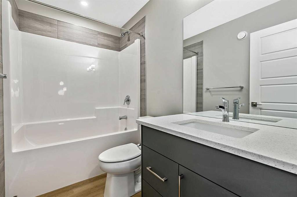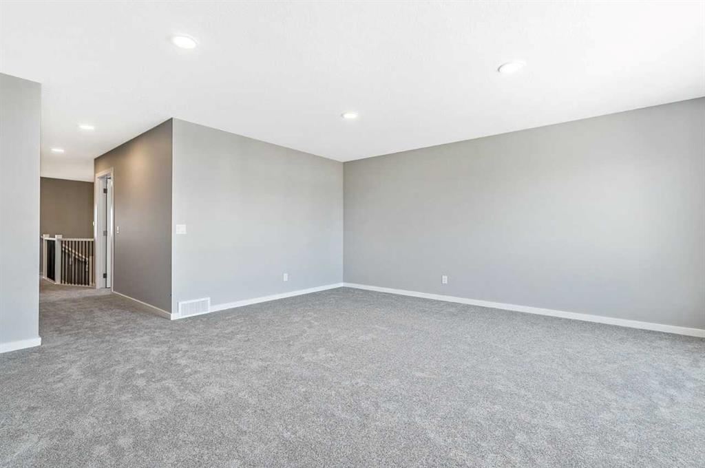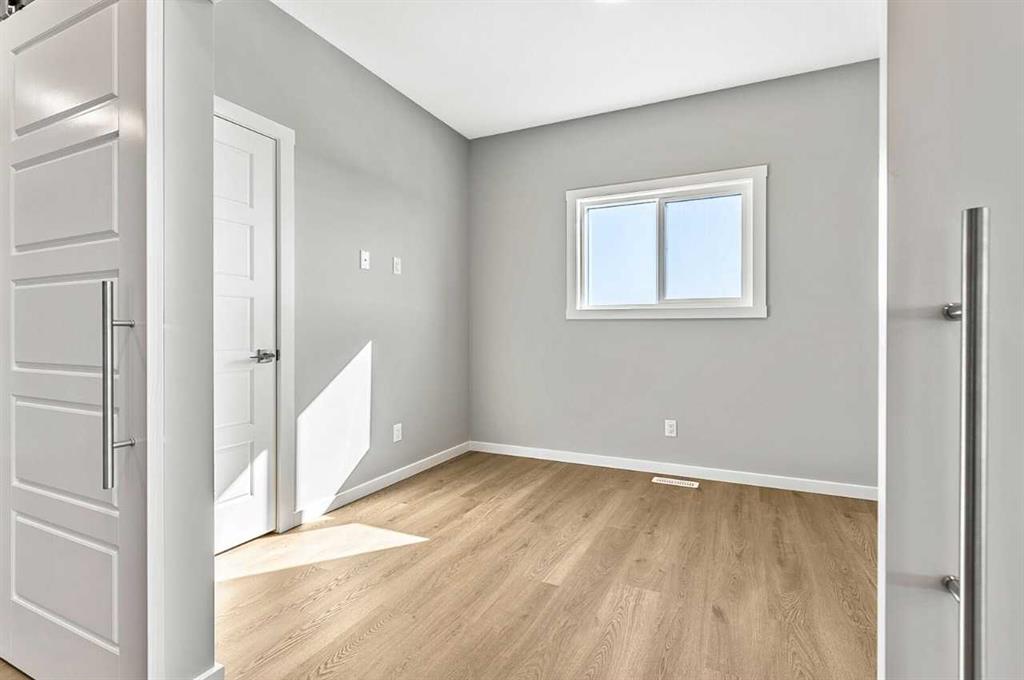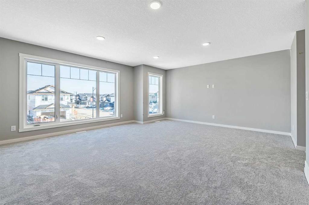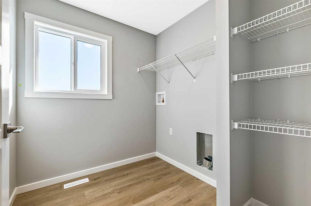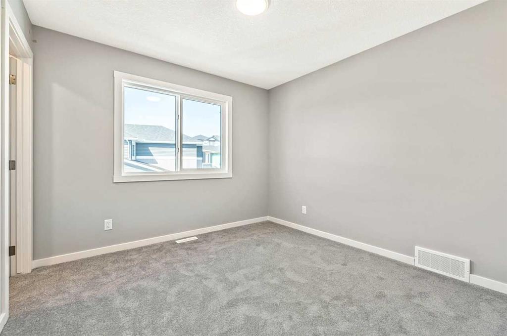 This home is located in the peaceful community of Key Ranch, Airdrie, Alberta. This beautiful two storey home sits on a spacious traditional lot and has no rear neighbors. It includes a walkout basement to the south facing backyard and includes a rear deck off the main floor, and patio off the walkout basement. This home has a spacious main floor flex room for an office or guests. The main floor boasts 9ft knockdown ceilings for a bright and open feel. Including high-end kitchen finishes such as; chimney hood fan, soft-close cabinets to the ceiling, quartz countertops, and an undermount sink. Primary bedroom retreat featuring a 5-piece ensuite with dual vanity sinks, free-standing soaker tub, walk-in shower with tiled walls, and a private water closet. Custom melamine shelving in the pantry and primary walk-in closet for optimal storage. Triple-pane windows, high-efficiency furnace, hot water tank, and HRV system for superior energy efficiency.