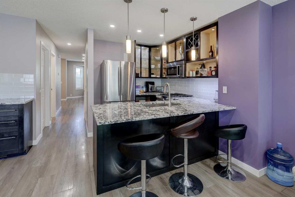 Welcome to this rare gated tranquil community of Martindale. A fantastic layout for a small family with updated kitchen and granite counter tops. New LVP and tile flooring throughout. This 3 bedroom townhouse is a great 1st home for your family. The basement is open to development for another bedroom and roughed in for 4th bathroom. 3 large bedrooms with ensuite in the master bedroom and walk-in closets. All SS appliances and gas stove. along with a walking pantry for all your storage. 2 assigned parking stalls for Ma and Pop conveniently just a step from the front door. Large 17′ covered porch out the front steps. Great for relaxing in the shade. A beautiful and quite community where everyone respects their neighbors. Built for quality, this home is virtually sound proof with no noise from your neighbors. Conveniently across from Crossing Park School. Martindale C-Train station just around the corner for that easy commute. This unit is situated far away from the C-Train rails within the complex, you do not hear the sounds of the tracks. Easy access to McKnight and Metis Trail, Superstore and Westwinds. Newly laid patio stones in the south facing back yard to enjoy that hot hot sun. Beautifully landscaped with care with play area for the kids. You will see respectful children out and about playing with all the neighborhood kids. Safe and secure. **Home business where living room is will be remediated to restore living room conditions.**