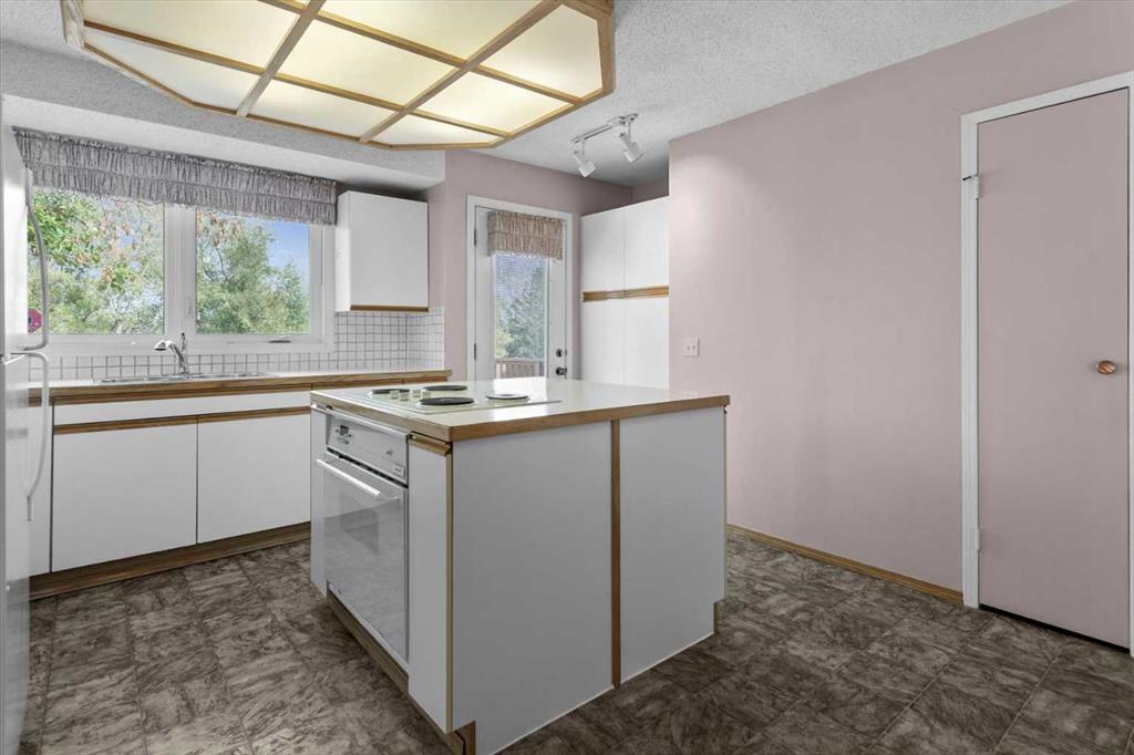 Enjoy the outdoors with a large deck overlooking the green space behind the property—ideal for relaxing evenings and weekend gatherings. An attached double garage provides convenience and extra storage. Located near parks, playgrounds, and schools, this home combines a quiet setting with family-focused amenities and easy access to daily necessities. While lots of updates have been made over time, so much potential to turn this home into a showpiece!