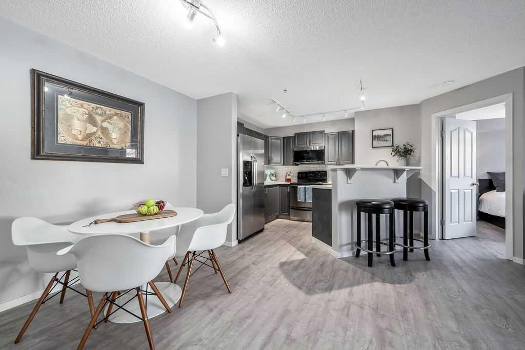 Check out this freshly updated 2-bedroom, 2-bathroom main floor condo, complete with a titled underground parking space, an additional storage unit, and low condo fees that include utilities—all within easy walking distance to groceries, retail shops, and restaurants! Located in the desirable community of McKenzie Towne with convenient access off 130th Avenue, this tastefully updated unit showcases vinyl plank flooring throughout the entire condo, adding both style and durability. The kitchen includes stainless steel appliances, updated white subway tile backsplash, modern countertops, ample cabinetry, and a convenient breakfast bar, perfect for casual dining. This open-concept space features a generous living room and is completed by a dining area that adds flexibility for both daily living and entertaining. The bright and spacious primary bedroom features a walk-through closet that leads directly to the private ensuite bathroom. The second bedroom and main bath are thoughtfully positioned to create a more private space, making this unit ideal for small families, roommates, or overnight guests. An in-suite laundry room adds everyday convenience while also providing valuable extra storage space. This unit is located on the quiet backside of the building, away from roadways and parking lots, and presents a large, covered patio off the living room that opens to an expansive green space. Book a showing today and see for yourself the exceptional value and unbeatable convenience this condo has to offer!