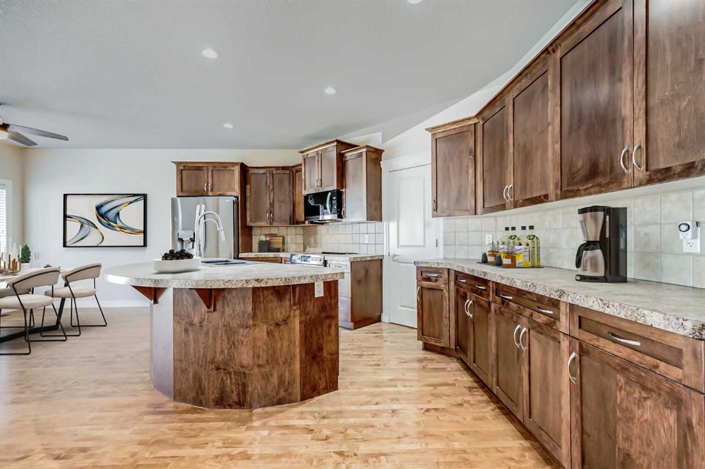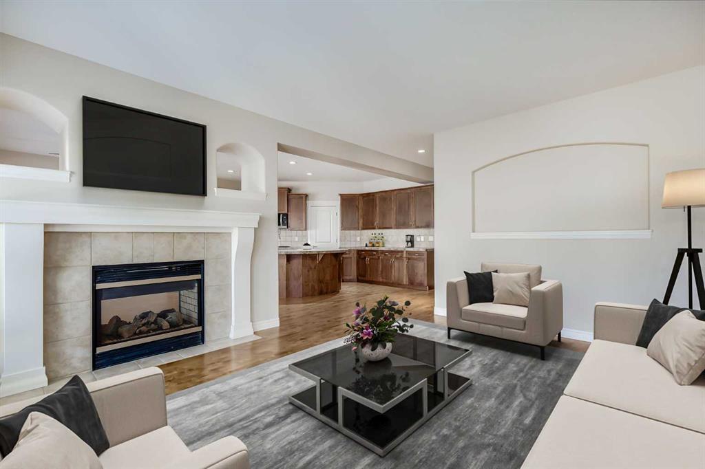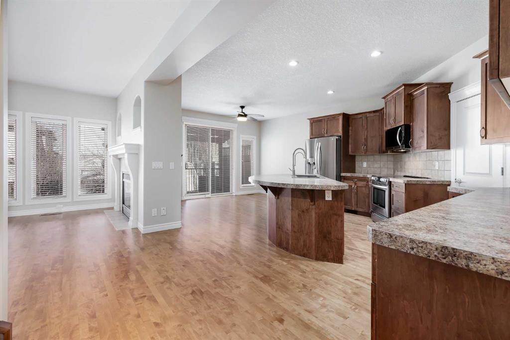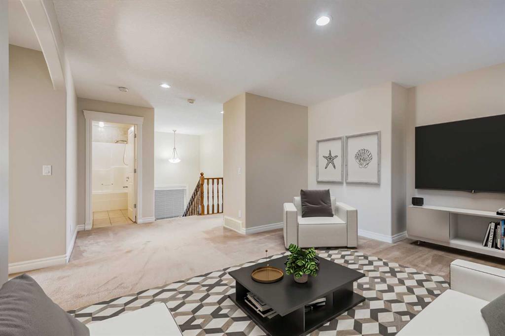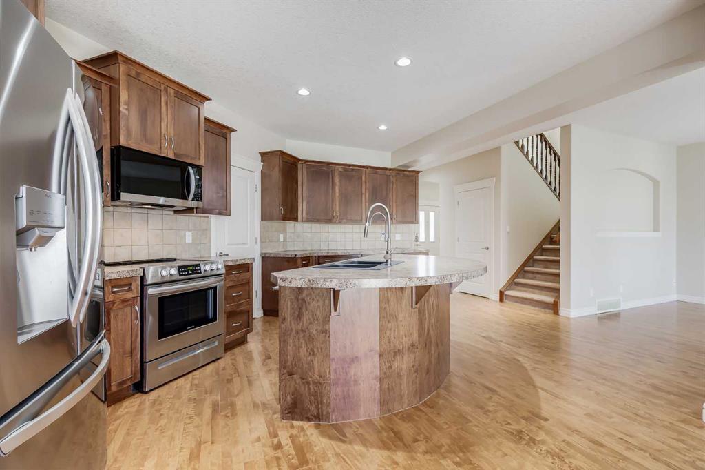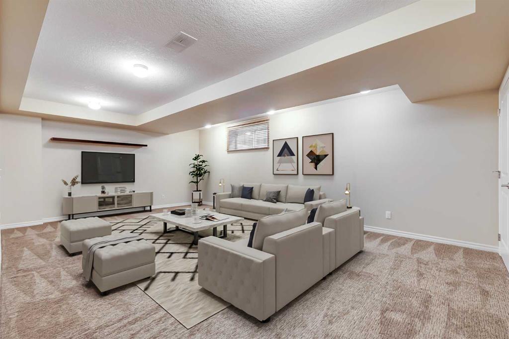 Welcome to over 3,000 square feet of developed living space inside a quiet community in Airdrie. Out front you’ll immediately notice the extra stonework on this home, giving it great curb appeal. Don’t forget the UNDERGROUND SPRINKLER SYSTEM as well. Moving inside you’ll come into the open main level, with just the right amount of separation between spaces. The kitchen features a ton of cabinet space, a large island, and a Walk-Through Pantry. The gas fireplace perfectly separates the dining & living rooms, both of which are great size for all your family furniture. Completing the main level you have a large mud room & Laundry area. Moving upstairs you’ll come to the Central Bonus Room. Towards the back of the home you’ll come to the large master bedroom that easily fits your king bed and other furniture. The master is complete with a walk-in closet and 5 Piece En-Suite Bathroom with a MASSIVE SHOWER. Both secondary bedrooms at the front of the house are both great size for kids, guests, or office space. Completing the upper level is a 4-piece main bathroom. Moving downstairs you’ll come to the huge basement rec room. Plenty of space for anything you want down here! Also in the basement is the large 13′ x 15′ bedroom, and another full bathroom. Now moving outside… Here you’ll find a tiered deck with COMPOSITE DECKING & Aluminum Railings, lot of mature tree around giving you plenty of summertime privacy, a storage shed, and plenty of grass space for kids or dogs. Book your showing today!