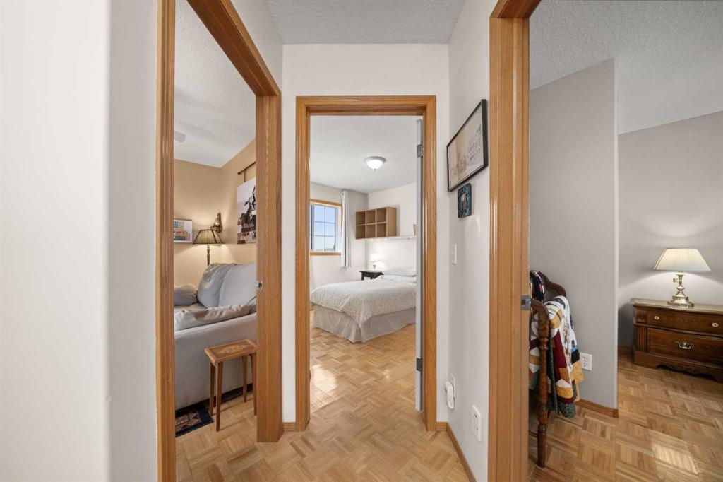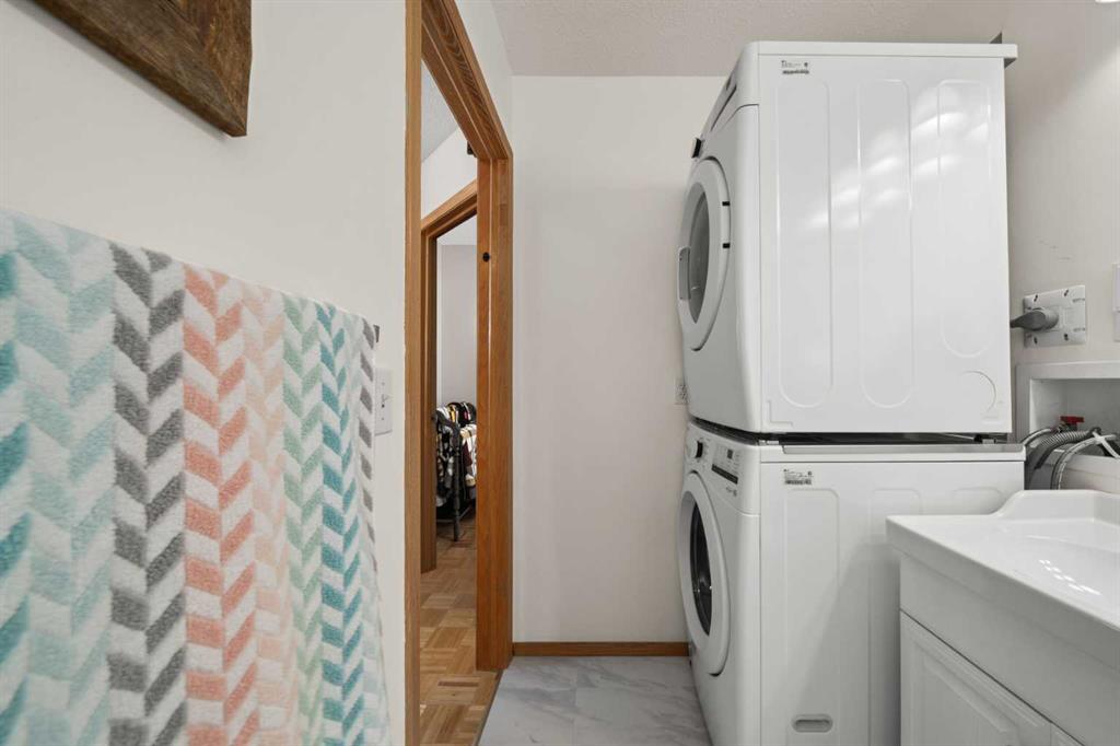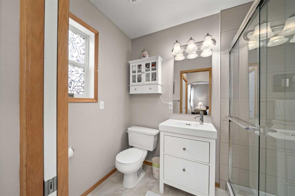 Upstairs, you’ll find three generous bedrooms. The primary bedroom overlooks the green space and features two closets along with a beautifully renovated 3-piece ensuite with a large tiled shower. A 4-piece family bathroom and stacked washer and dryer on this level add everyday convenience—no more trips to the basement for laundry.