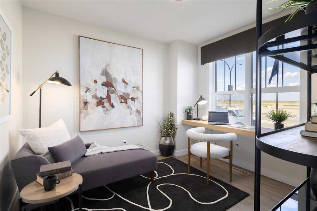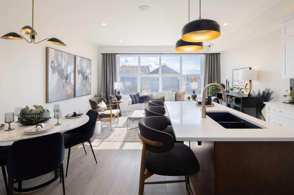 ** Brand New No Condo Fee Townhome built by Genesis Homes ** Move-in Ready | End Unit | The Avery | 1,788 SqFt | 3 Beds | 2 Full Baths | 2 Half Baths | Double Attached Garage | Main Level Office | Incredible Open Floor Plan | Top of the Line Finishes | Quartz Countertops | Designer Curated Backsplash | Stainless Steel Appliances | Walk-in Pantry | Wide Plank LVP Flooring | Plus Carpet in the Bedrooms | Sizeable Bedrooms | Upper Level Hall Laundry | Smart Automated Home | Balcony | BBQ Gas Line | James Hardie Siding. This stunning Avery model by Genesis boasts 1,788 SqFt, 3 bedrooms, 2 full & 2 half bathrooms and a spacious open floor plan layout that’s perfect for families, professionals, or anyone who loves extra space. The front door opens to a main level foyer with closet space and a flex den. With large windows and high ceilings this space is space has the versatility to be an office space with a peaceful retreat for work or creativity. This level has a half bath added for convenience and functionality. Head upstairs to the 2nd level to a grand floor plan both open and functional. The kitchen is outfitted with sparkling quartz countertops, ample cabinet storage, a gas line and a stainless steel builders appliance package. The centre island in the kitchen is equipped with a barstool seating area making it the perfect space to enjoy small meals and socialize while you cook. The walk-in pantry is a bonus to your dry good storage. The dining room paired with the kitchen makes for an easy stove to table transition. The spacious living room is the perfect area to unwind with your family in the evenings and is ideal for hosting guests. The additional living room flex space is an added bonus to your comfort! Just off the flex room is a door to your private balcony with a gas BBQ line for those summer cook outs! The uppermost level is paired with 3 bedrooms, 2 full bathrooms and hall laundry. The primary bedroom is a personal retreat with a deep walk-in closet and private 4pc ensuite bath with a deep tub/shower combo. Bedrooms 2 & 3 share the main 4pc bath with a single vanity and tub/shower combo. The upper level laundry is a treat as its located near all the bedrooms. The double attached garage secures you 2 year round secured parking and space for seasonal storage. Located just moments from essential amenities and nestled close to a picturesque park, you’ll enjoy easy access to shops, dining, and outdoor activities. Take in breathtaking mountain views and sunsets as you stroll by the serene pond. Genesis Builders Group follows the First-Time Home Buyer GST/HST Rebate to eliminate the 5% GST on qualifying new homes (up to $1 million) for qualifying first time home buyers. Hurry and book your showing at this gorgeous Genesis home today! Photos are representative of 161 Wild Rose Way SE, The Avery Show Home.