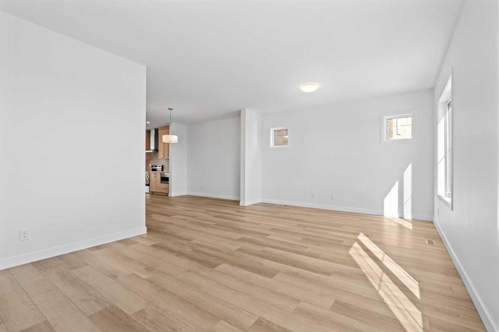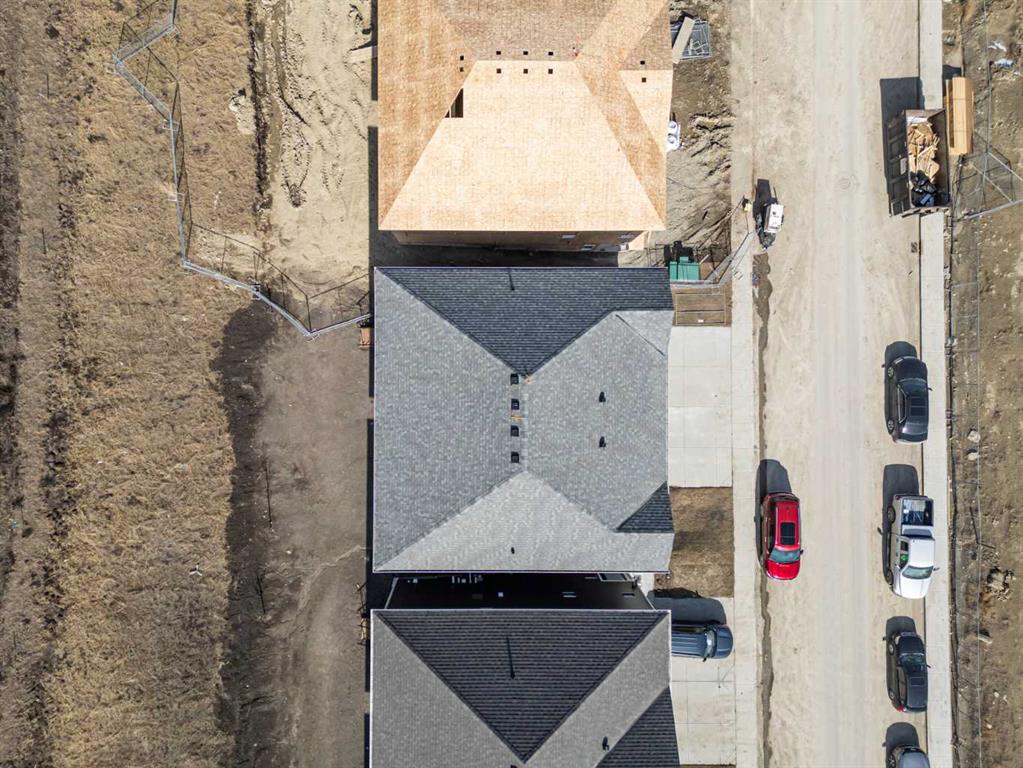 NEW BUILD SEMI-DETACHED | OVERSIZED SINGLE GARAGE | 3 BED / 2.5 BATH / 1764 SQ FT | WEST-FACING BACKYARD | IMMEDIATE POSSESSION – Welcome to this beautifully designed semi-detached duplex by Minto Communities, an award-winning Canadian builder, located in Wildflower, proudly voted Best New Community in Canada (2025). This vibrant, master-planned community in Airdrie is designed with lifestyle and connection in mind, offering an exciting mix of home styles in a neighbourhood built to grow with you. Finished in a charming traditional farmhouse elevation, this spacious home offers a thoughtfully planned layout ideal for modern family living. The main floor is designed for both everyday comfort and entertaining. The kitchen is positioned at the back of the home and features a central island, stainless steel appliances, and gorgeous modern finishes, with a bright breakfast nook just off the kitchen overlooking the west-facing backyard. Moving toward the centre of the home, you’ll find a dedicated dining area, while the large, light-filled living room anchors the front of the home. A convenient half bath and storage closet complete this level. Upstairs, the spacious primary bedroom easily accommodates a king-sized bed and includes a walk-in closet and a private 4-piece ensuite. Two additional well-sized bedrooms share this floor, one with a walk-in closet and the other featuring a sliding-door closet. A second 4-piece bathroom and a large, functional laundry room round out the upper level. The ground level welcomes you with a beautiful entryway that leads to the rest of the home and an undeveloped space that offers flexibility for future development. This level also includes additional storage space, a mechanical room, and direct access to the oversized single attached garage. A large driveway provides ample parking, adding everyday convenience. Residents of Wildflower enjoy exclusive access to The Hillside Hub, a standout amenity centre featuring Airdrie’s first outdoor pool, a hot tub, an open-air sports court, and a variety of shared indoor and outdoor spaces designed for gathering, recreation, or quiet retreat. With nearby parks, pathways, amenities, and easy access to major routes, Wildflower delivers a truly well-rounded lifestyle. Combining award-winning community planning, modern design, and immediate possession, this is an outstanding opportunity to own a stylish new home in one of Canada’s most celebrated communities. Don’t miss your chance to make Wildflower home! Book your visit today!