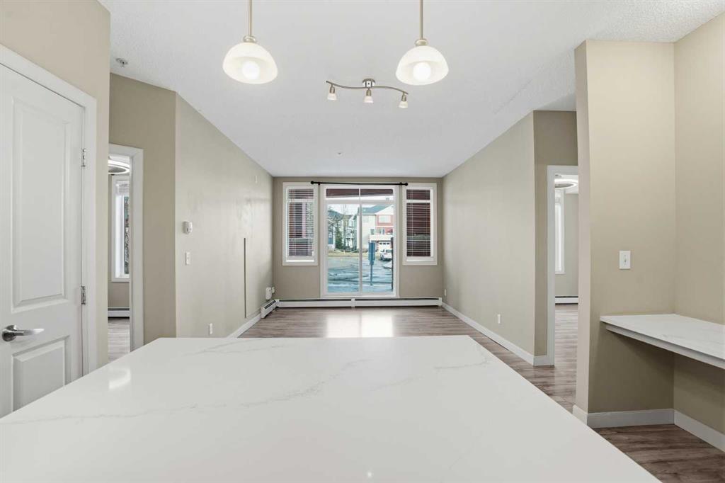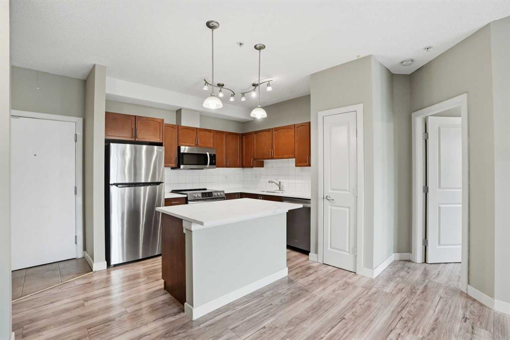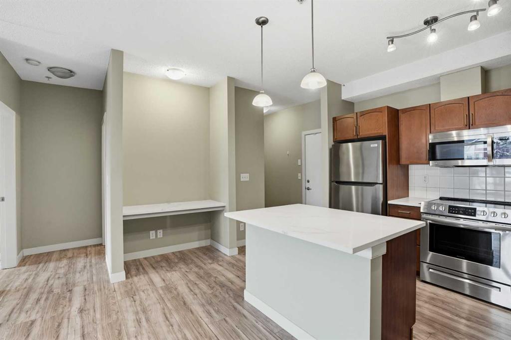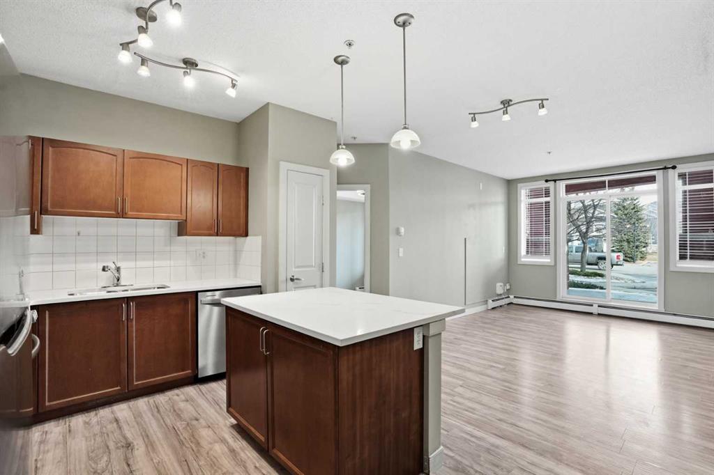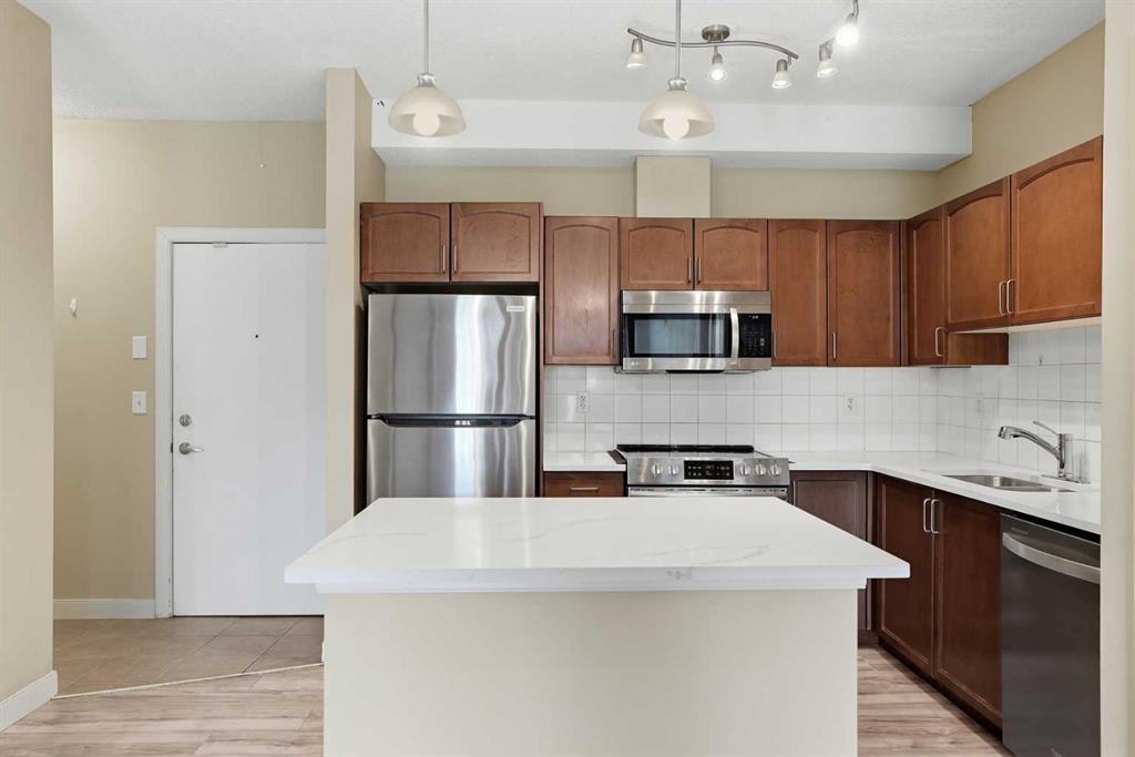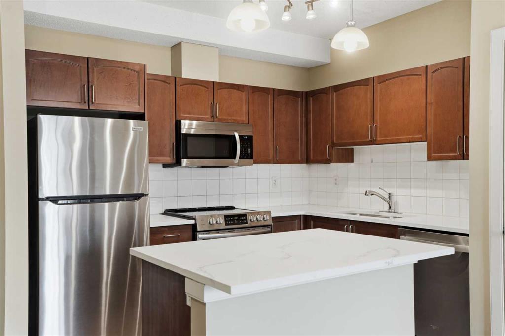 Located on the Country Hills Village Pond | Gorgeous Main Level Apartment | 2 Bedrooms | 2 Bathrooms with New Sinks & Faucets | Open Floor Plan | Bright with Natural Light | Brand New Quartz Countertops | Stainless Steel Appliances | Kitchen Island | Built-in Work Station | Great Storage | In-Unit Laundry | Underground Titled Parking | Secure Entry Building | Visitor Parking. Welcome to this stunning 2 bed, 2 bath main level apartment boasting 847 SqFt with an open floor plan kitchen, dining and living areas. The front door to your home opens to a tiled foyer with closet storage and past this is your in unit laundry. The open floor plan with high ceilings and large windows throughout the kitchen, dining and living rooms compliments the size of the space. The kitchen is outfitted with new quartz countertops, stainless steel appliances and great cabinet storage. The open concept living means you can choose where you’d like your dining table to go! The living room is comfortable and bright and is paired with sliding glass doors to your patio. The two bedrooms are located on either side of the living room giving additional privacy. The primary bedroom has a walk-through closet to a 3pc ensuite bath. The 2nd bedroom is a great size and just outside the door is the 4pc bath with a tub/shower combo. This unit comes with a titled underground parking stall that keeps your vehicle weather protected year round! Step outside and you’re just moments away from a serene pond, picturesque walking paths, a nearby golf course, public transit, and a variety of shopping and dining options. You’ll also love the easy access to Deerfoot Trail, Stoney Trail, and the Calgary International Airport. Whether you’re a first-time buyer, investor, or downsizer, this home offers comfort, convenience, and excellent value in a well-maintained building with low condo fees. Book your showing today and experience everything life in Country Hills Village has to offer!