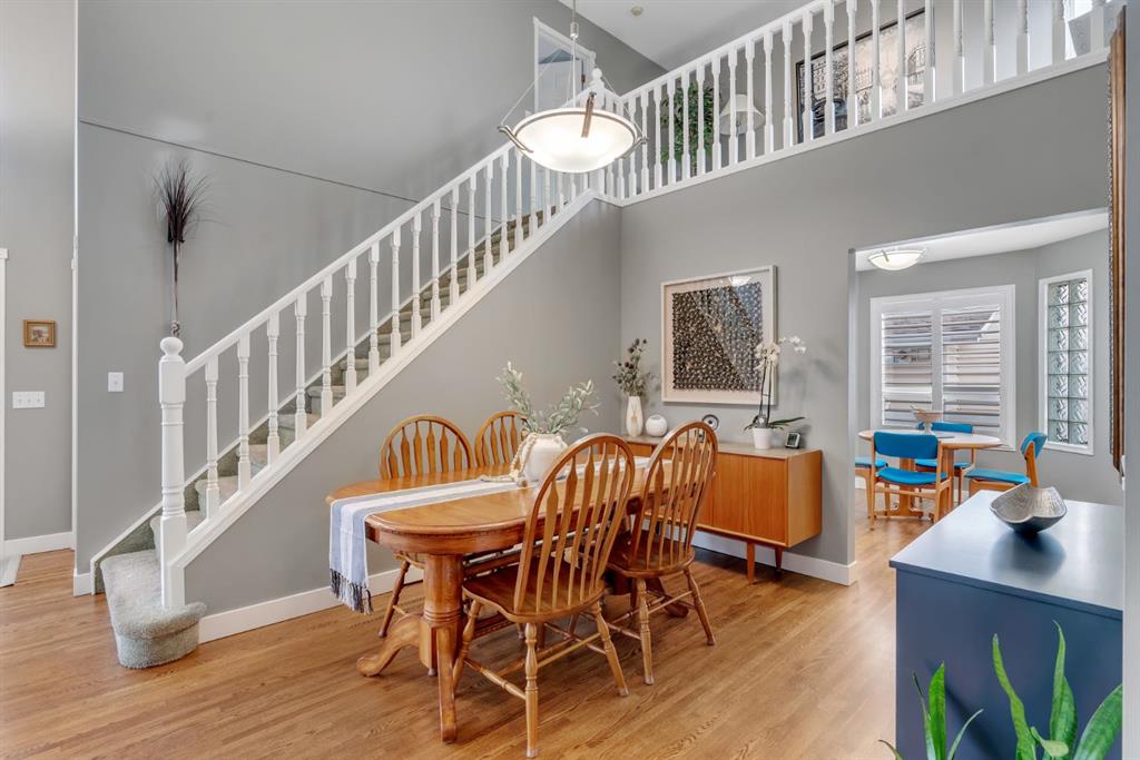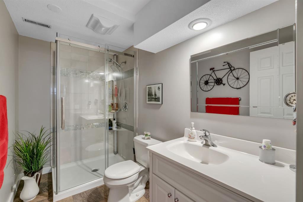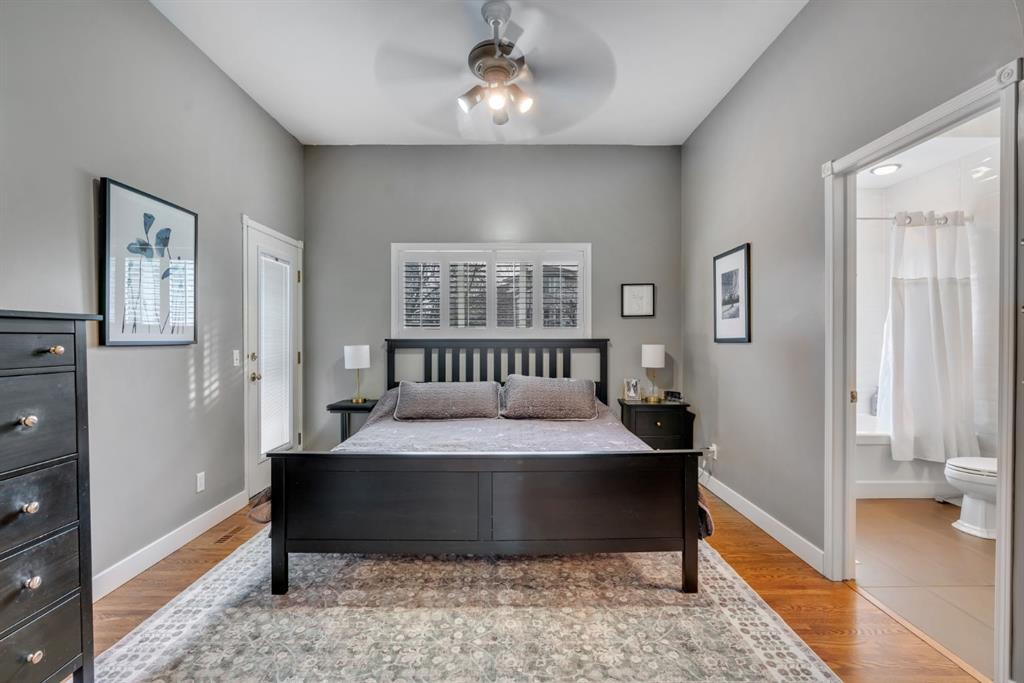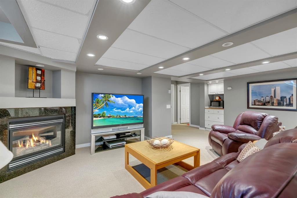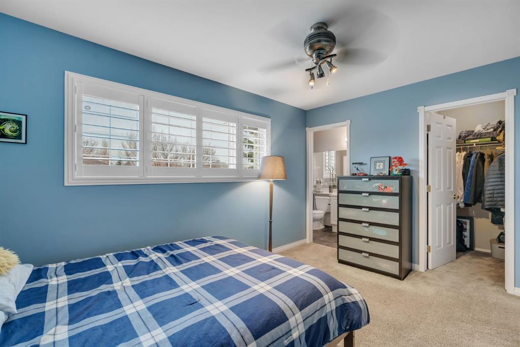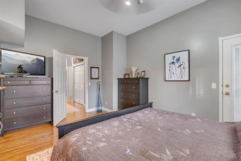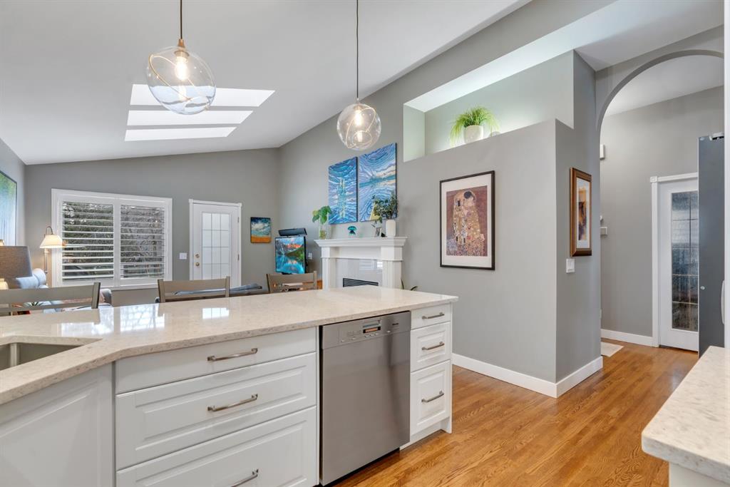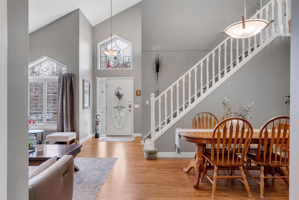 This beautifully upgraded home backs onto greenspace with a sunny south backyard and offers true bungalow living with bonus space for guests or family. As you enter, the main level features soaring vaulted ceilings in the living and dining rooms, refinished hardwood floors throughout, and an upgraded white kitchen with quartz countertops, eating bar, under-cabinet lighting, pull-out drawers, a pantry with organizers, and a newer white glass front Samsung Bespoke fridge with beverage center and induction stove (2023) plus the nook has extra storage. The family room with skylights and beautiful gas fireplace with tile surround provides direct access to the no-maintenance deck overlooking the greenspace. The primary bedroom on the main floor offers the ultimate convenience—no stairs required—and includes a walk-in closet, updated ensuite with new shower and soaker tub and heated floors. It also provides deck access. A main floor den/office, powder room and laundry room complete this ideal layout. Upstairs, the loft is perfect for a reading area or office and the additional bedroom with walk-in closet and ensuite make the perfect private space for older kids, guests, or extended family. The developed basement adds even more versatility with two additional bedrooms (one with a built-in Murphy bed), bathroom with shower, a spacious rec room with a gas fireplace, workout area with cork flooring and plenty of storage. Additional updates and features include: air conditioning, all Poly-B replaced, California shutters, new garage door (2023), newer furnace (2019), extra-wide driveway, gas BBQ line on the deck and backyard shed. This home truly combines the ease of bungalow living with the flexibility of additional space — a rare and truly special find in Riverbend! Ideally located on one of the community’s best streets, it backs directly onto greenspace and is just a short walk to the Bow River pathways, Quarry Park amenities, and offers quick access to Glenmore Trail and Deerfoot- don’t miss out on this great home!