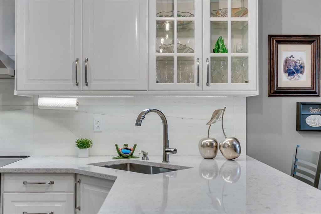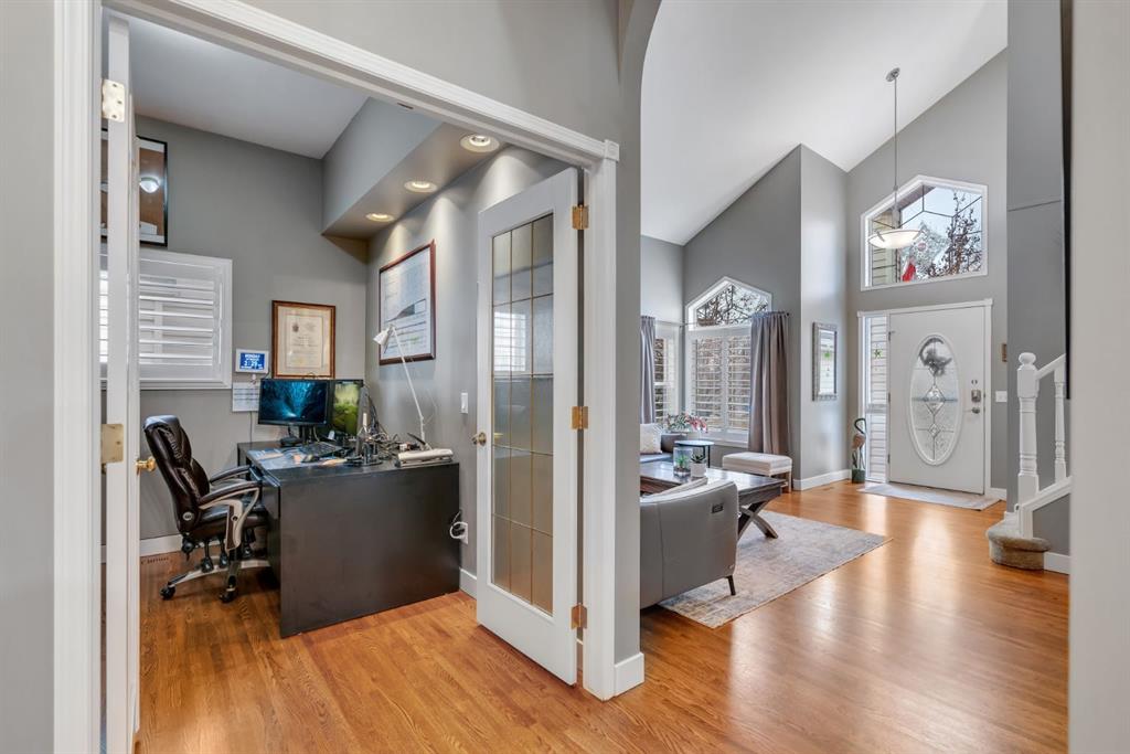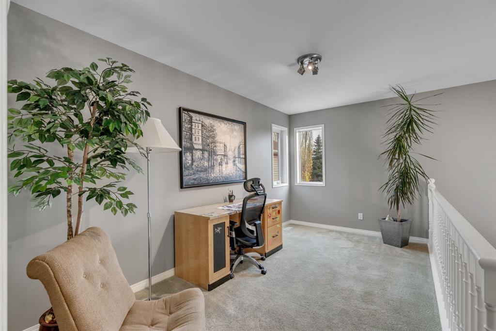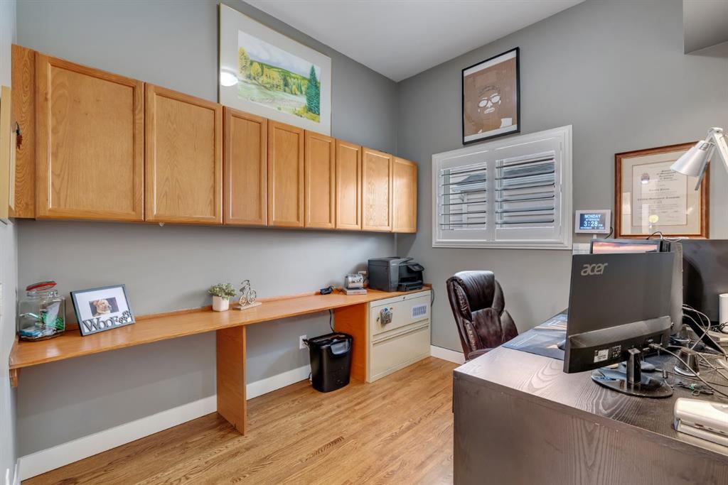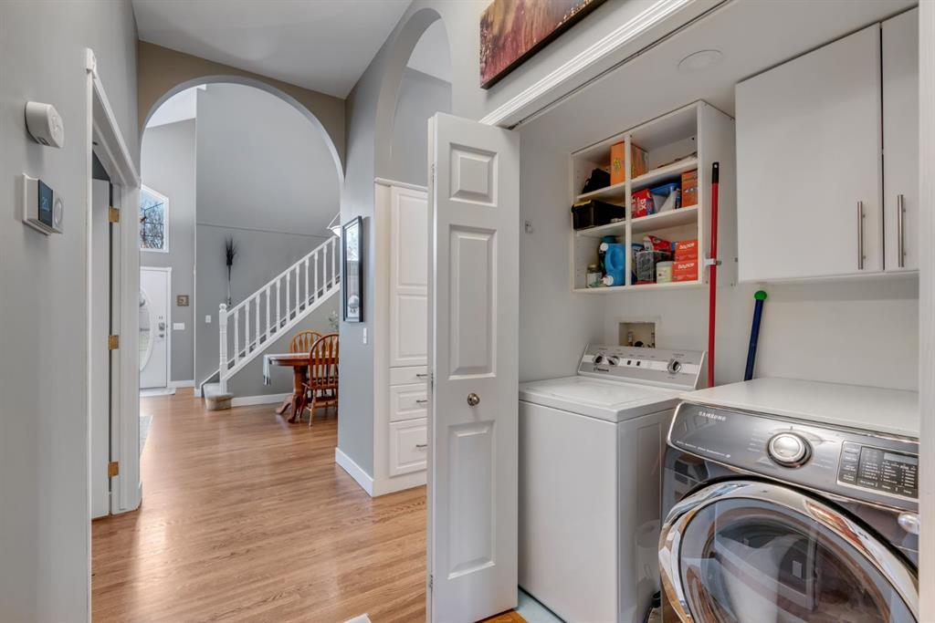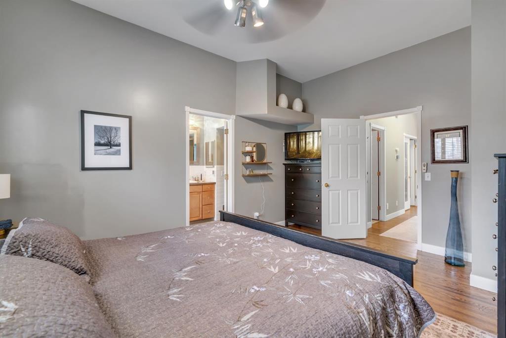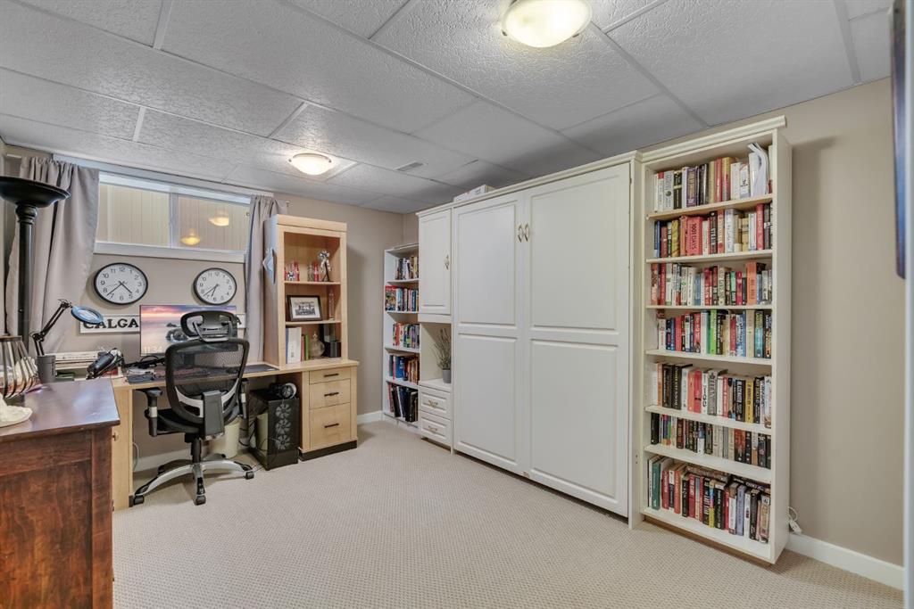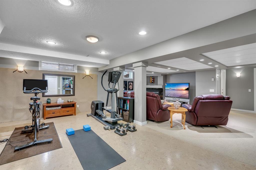This beautifully upgraded home backs onto greenspace with a sunny south backyard and offers true bungalow living with bonus space for guests or family. As you enter, the main level features soaring vaulted ceilings in the living and dining rooms, refinished hardwood floors throughout, and an upgraded white kitchen with quartz countertops, eating bar, under-cabinet lighting, pull-out drawers, a pantry with organizers, and a newer white glass front Samsung Bespoke fridge with beverage center and induction stove (2023) plus the nook has extra storage. The family room with skylights and beautiful gas fireplace with tile surround provides direct access to the no-maintenance deck overlooking the greenspace. The primary bedroom on the main floor offers the ultimate convenience—no stairs required—and includes a walk-in closet, updated ensuite with new shower and soaker tub and heated floors. It also provides deck access. A main floor den/office, powder room and laundry room complete this ideal layout. Upstairs, the loft is perfect for a reading area or office and the additional bedroom with walk-in closet and ensuite make the perfect private space for older kids, guests, or extended family. The developed basement adds even more versatility with two additional bedrooms (one with a built-in Murphy bed), bathroom with shower, a spacious rec room with a gas fireplace, workout area with cork flooring and plenty of storage. Additional updates and features include: air conditioning, all Poly-B replaced, California shutters, new garage door (2023), newer furnace (2019), extra-wide driveway, gas BBQ line on the deck and backyard shed. This home truly combines the ease of bungalow living with the flexibility of additional space — a rare and truly special find in Riverbend! Ideally located on one of the community’s best streets, it backs directly onto greenspace and is just a short walk to the Bow River pathways, Quarry Park amenities, and offers quick access to Glenmore Trail and Deerfoot- don’t miss out on this great home!