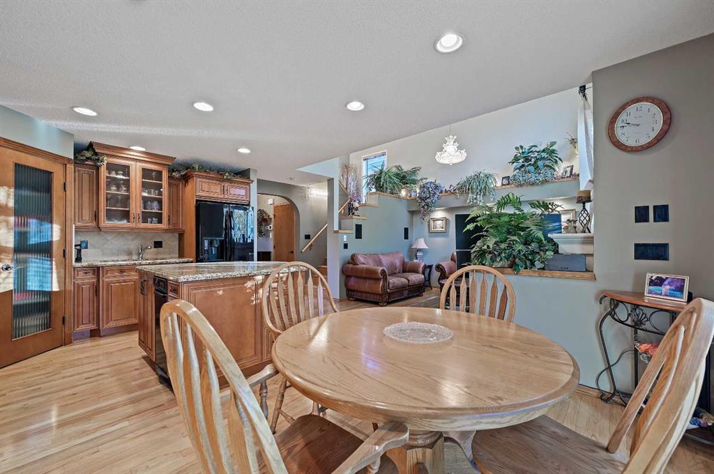 This impressive home has numerous updates & is well-maintained. With over 2300 sq ft of living space (including the finished basement), this home is a great example of exceptional value. The layout features large rooms throughout and is situated in one of Calgary’s established areas, Valley Ridge. The main living area is very bright & open, with hardwood flooring from the front entryway into the kitchen/nook area, as well as the hallway/bathroom. The Kitchen features high-end, raised-panel maple doors, trims, and columns, granite counters, a dramatic central island with a flush eating bar, a corner pantry, upgraded appliances, and ample cabinet and countertop space. Upstairs features two restful bedrooms! The primary bedroom features its own his/hers closets and a full 4-piece en-suite. The other upper full main bathroom has been renovated to model designs and style. The lower level is finished with a large family room featuring beautiful wood-built-ins and a corner fireplace, a 3-piece bathroom with a shower, a storage room, and a laundry room. Many upgraded details: 2 gas fireplaces with wall detail, wood casings and doors, trim & baseboards, soaring two-story ceilings in the great room, curved arches, wood-built-in storage niche, 24′ x 14′ rear deck with vinyl decking and glass rail, and a double-attached front garage. Plus – A very convenient location steps away from a tot lot playground. Incredible design, value, and priced to sell too! A quick possession date is available! Call your friendly REALTOR(R) to book a viewing!
