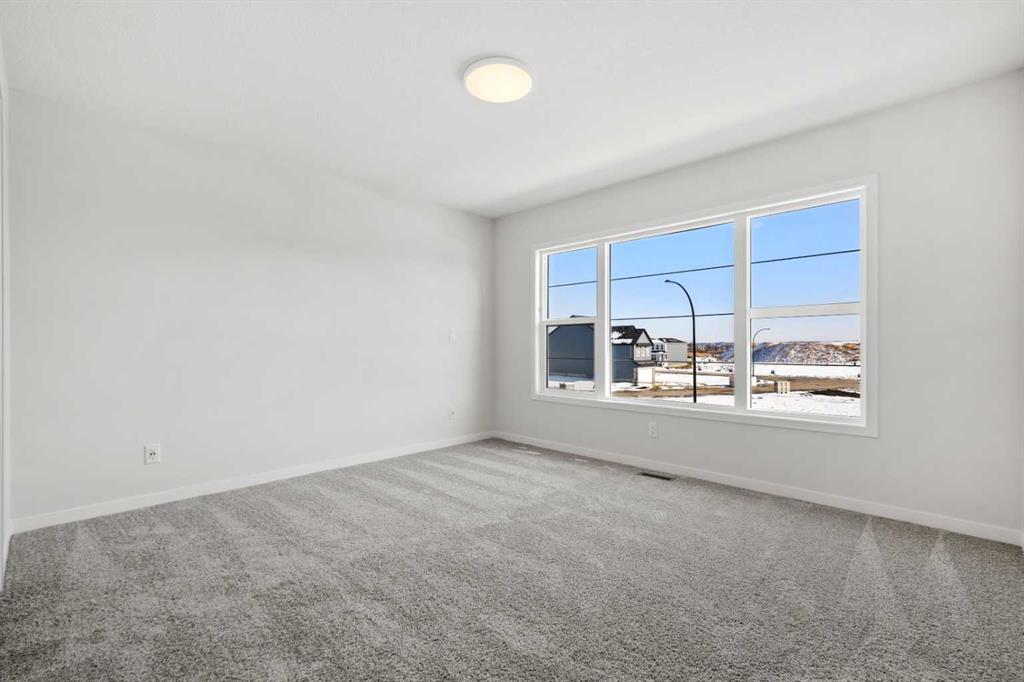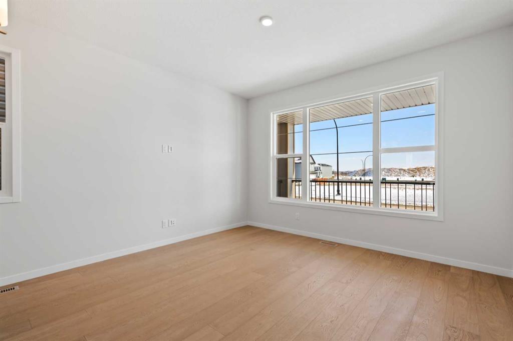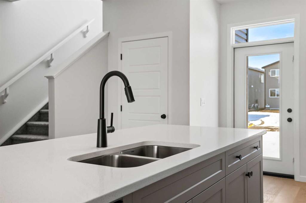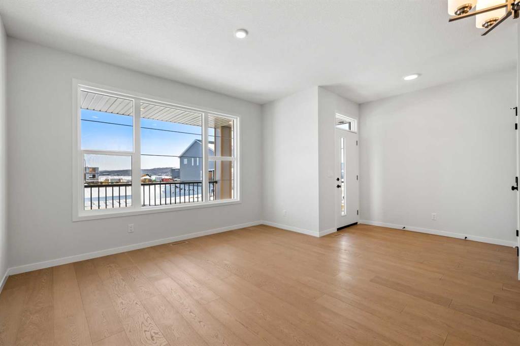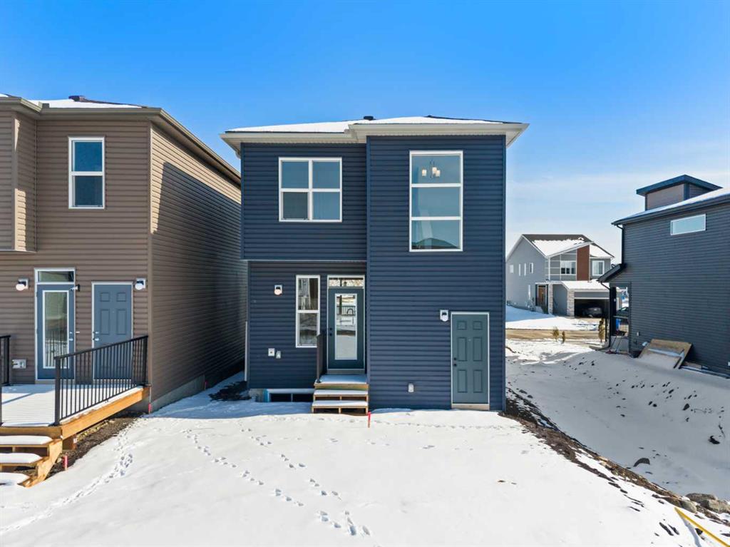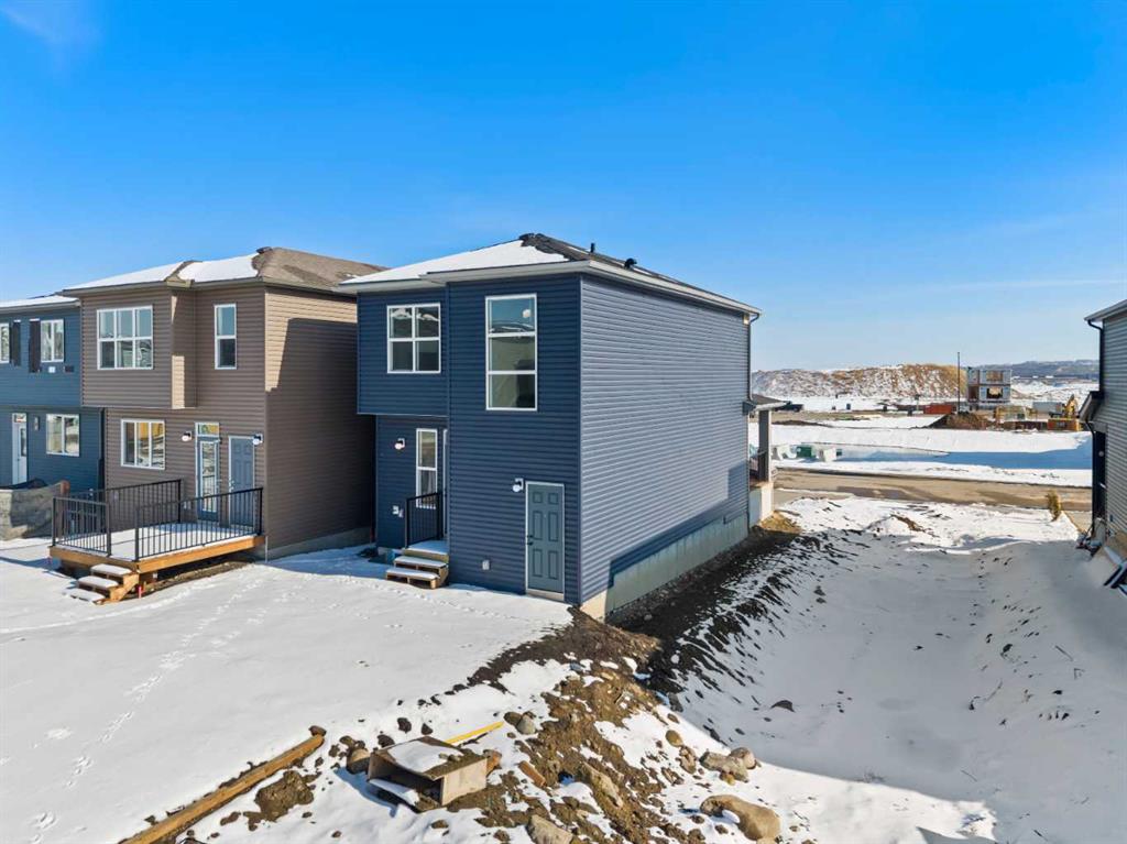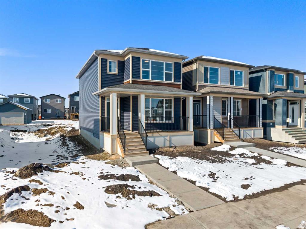 Located in the vibrant and nature-inspired community of Wolf Willow, 114 Wolf Hollow Terrace SE offers a beautifully designed brand-new two-storey home that blends modern finishes with a functional layout ideal for today’s lifestyle. With 1,585 sq. ft. of thoughtfully planned living space and immediate possession available, this home is perfect for buyers seeking contemporary comfort in a well-connected southeast Calgary neighbourhood. The main level features a bright and welcoming open-concept design enhanced by high ceilings, large windows, and durable engineered hardwood flooring throughout the primary living areas. The kitchen is both stylish and practical, showcasing quartz countertops, a central island with breakfast bar seating, modern cabinetry, and a gas stove, making it ideal for everyday cooking and entertaining. The adjoining dining and living areas create a seamless flow, providing comfortable space for gatherings or relaxing evenings at home. A BBQ gas line adds convenience for future outdoor enjoyment. Upstairs, the home offers well-appointed living spaces designed for comfort and flexibility. The primary bedroom retreat includes a walk-in closet with built-in organizers and a private ensuite featuring a double vanity and soaking tub, creating a peaceful space to unwind. Additional bedrooms are generously sized and thoughtfully positioned, while upper-level laundry adds everyday convenience. The unfinished basement with separate entrance provides excellent potential for future development, allowing homeowners to customize additional living space to suit their needs. Whether envisioned as a recreation room, home office, or extended living area, the lower level offers valuable flexibility for future growth. Additional highlights include modern flooring throughout, quartz counters in the kitchen and bathrooms, a welcoming front porch, and off-street parking. The home has been designed as a no animal and no smoking property, offering a clean and well-maintained environment. Wolf Willow is known for its access to parks, playgrounds, walking and biking pathways, nearby schools, and convenient shopping, all while being close to the Bow River valley and scenic natural surroundings. The community offers a balance of outdoor recreation and urban accessibility, making it an increasingly popular choice for homeowners. With its modern design, quality craftsmanship, and opportunity for future customization, 114 Wolf Hollow Terrace SE presents an excellent opportunity to own a new home in one of Calgary’s most desirable emerging communities.