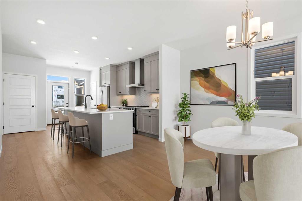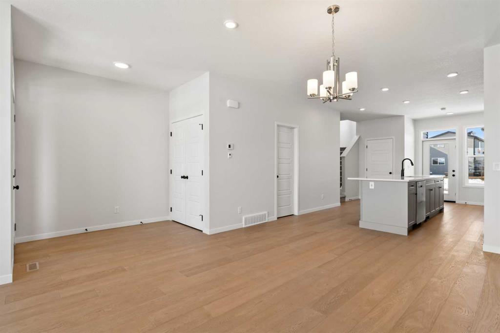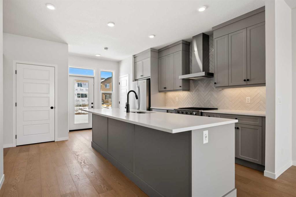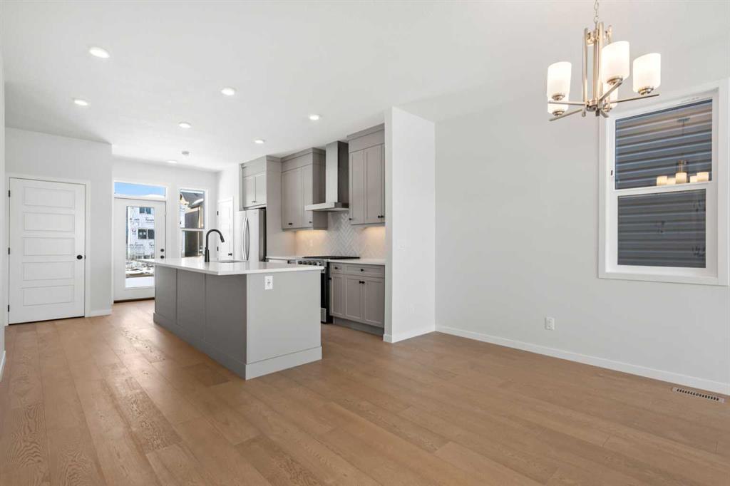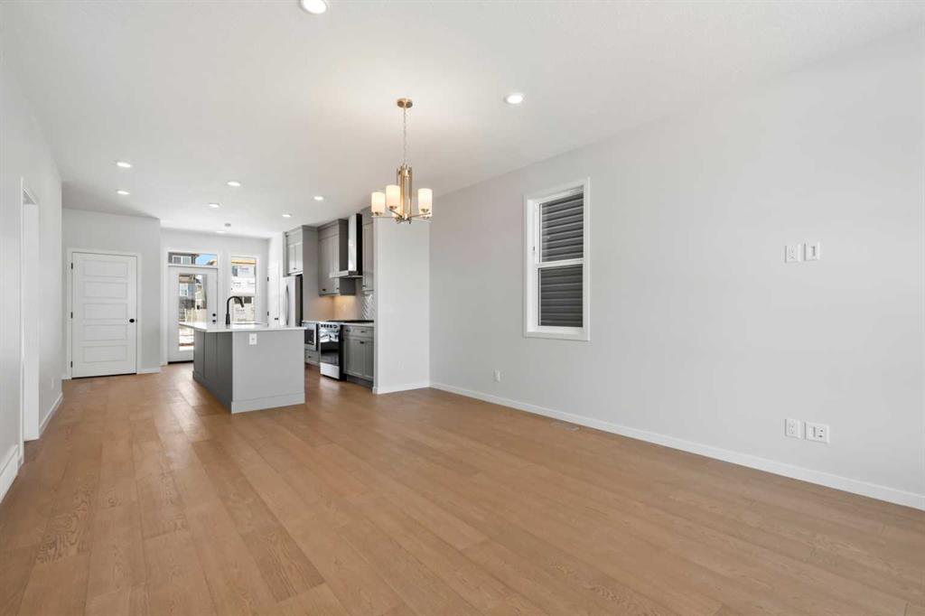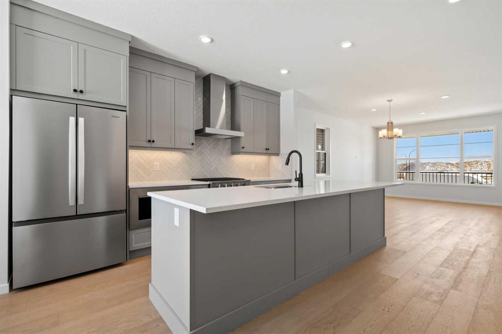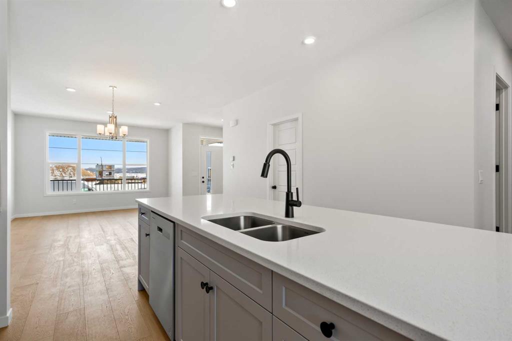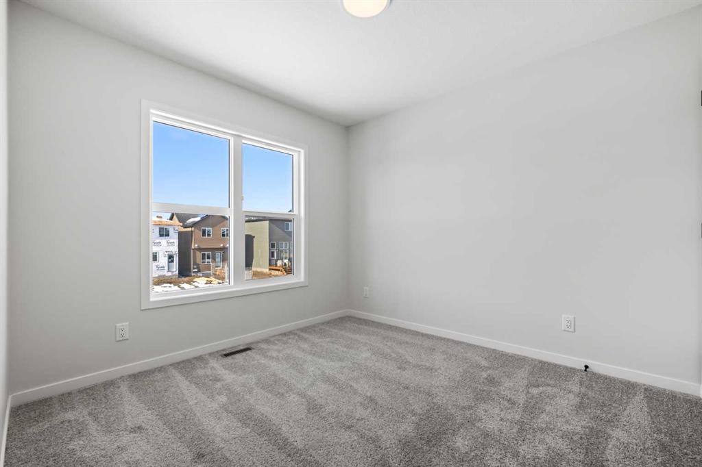 Located in the vibrant and nature-inspired community of Wolf Willow, 114 Wolf Hollow Terrace SE offers a beautifully designed brand-new two-storey home that blends modern finishes with a functional layout ideal for today’s lifestyle. With 1,585 sq. ft. of thoughtfully planned living space and immediate possession available, this home is perfect for buyers seeking contemporary comfort in a well-connected southeast Calgary neighbourhood. The main level features a bright and welcoming open-concept design enhanced by high ceilings, large windows, and durable engineered hardwood flooring throughout the primary living areas. The kitchen is both stylish and practical, showcasing quartz countertops, a central island with breakfast bar seating, modern cabinetry, and a gas stove, making it ideal for everyday cooking and entertaining. The adjoining dining and living areas create a seamless flow, providing comfortable space for gatherings or relaxing evenings at home. A BBQ gas line adds convenience for future outdoor enjoyment. Upstairs, the home offers well-appointed living spaces designed for comfort and flexibility. The primary bedroom retreat includes a walk-in closet with built-in organizers and a private ensuite featuring a double vanity and soaking tub, creating a peaceful space to unwind. Additional bedrooms are generously sized and thoughtfully positioned, while upper-level laundry adds everyday convenience. The unfinished basement with separate entrance provides excellent potential for future development, allowing homeowners to customize additional living space to suit their needs. Whether envisioned as a recreation room, home office, or extended living area, the lower level offers valuable flexibility for future growth. Additional highlights include modern flooring throughout, quartz counters in the kitchen and bathrooms, a welcoming front porch, and off-street parking. The home has been designed as a no animal and no smoking property, offering a clean and well-maintained environment. Wolf Willow is known for its access to parks, playgrounds, walking and biking pathways, nearby schools, and convenient shopping, all while being close to the Bow River valley and scenic natural surroundings. The community offers a balance of outdoor recreation and urban accessibility, making it an increasingly popular choice for homeowners. With its modern design, quality craftsmanship, and opportunity for future customization, 114 Wolf Hollow Terrace SE presents an excellent opportunity to own a new home in one of Calgary’s most desirable emerging communities.