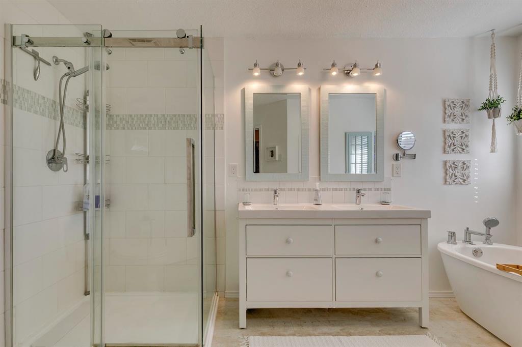 Nestled in one of Calgary’s most sought-after and established lake communities, this gem offers an unparalleled living experience. Situated on a quiet street with ample parking, this beautifully upgraded home spans over 2,500 SqFt of thoughtfully designed space and comes with an extended length garage to fit a truck (25 feet). From the moment you arrive, the picturesque porch invites you to savor serene sunrises with your morning coffee. Inside, the home exudes brightness and elegance, featuring neutral colour palettes and laminate flooring across all three levels. The main floor boasts an updated kitchen with granite-look countertop, tiled backsplash, a corner pantry, and stainless steel appliances, including a brand-new refrigerator. Adjacent to the kitchen, the spacious dining area opens to patio doors that lead to a meticulously landscaped south-facing backyard, perfect for outdoor gatherings and offers multiple seating areas, privacy screens, and established perennials, making it the perfect setting for long summer days and evenings. The living room, with its wall of windows, centers around a tastefully tiled feature fireplace, creating a warm and inviting atmosphere. A main floor office, a half bath, and a convenient laundry room complete this level. Upstairs, the large master retreat is a sanctuary of luxury, offering a fully renovated en-suite bathroom with a freestanding soaker tub, a walk-in shower, dual vanities, and a walk-in closet. Two additional bedrooms and a renovated family bathroom provide ample space for family or guests. The attention to detail is evident throughout, with enhanced millwork, detailed door casings, pot lighting, and some new windows. The fully finished basement is a versatile space, featuring a cozy sitting area which is open to a large open space which is used as a 4th bedroom, a 5th bedroom with a walk-in closet which is currently used as a gym. There is a 3rd renovated full bathroom that adds to the functionality of this level. This home has been lovingly maintained by its current owners, reflecting pride of ownership at every turn. Living in Lake Sundance is more than a choice, it’s a lifestyle. With access to year-round lake amenities, schools (Catholic, Public and French) from kindergarten to grade 12, and proximity to Fish Creek Park, as well as easy access to Stoney and MacLeod Trails, this community offers an unmatched blend of convenience and charm.