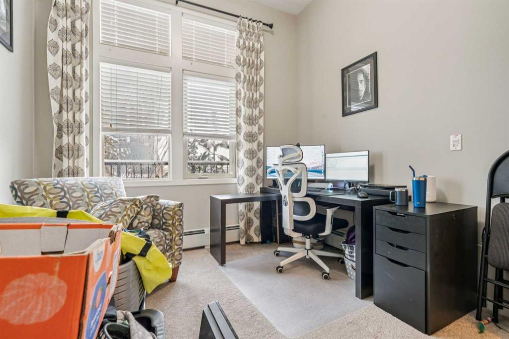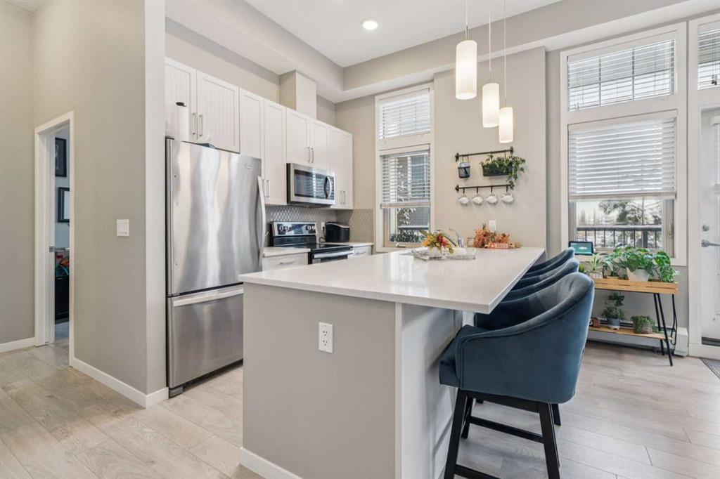Step into this showcase worthy main floor corner unit offering almost 900 sq ft of bright, open concept living. Soaring 11 foot ceilings and floor-to-ceiling windows flood the space with natural light, creating an airy, upscale feel the moment you walk in. The modern white chef inspired kitchen features sleek quartz countertops, stainless steel appliances, and plenty of cabinetry perfect for cooking, hosting, or enjoying a quiet night in. The layout is ideal with two spacious bedrooms positioned on opposite sides of the unit for added privacy, along with two full bathrooms, including a stylish ensuite.