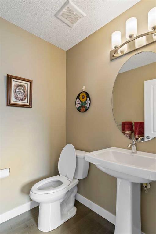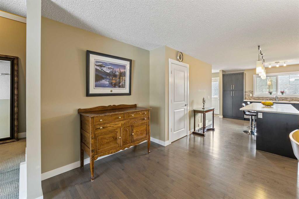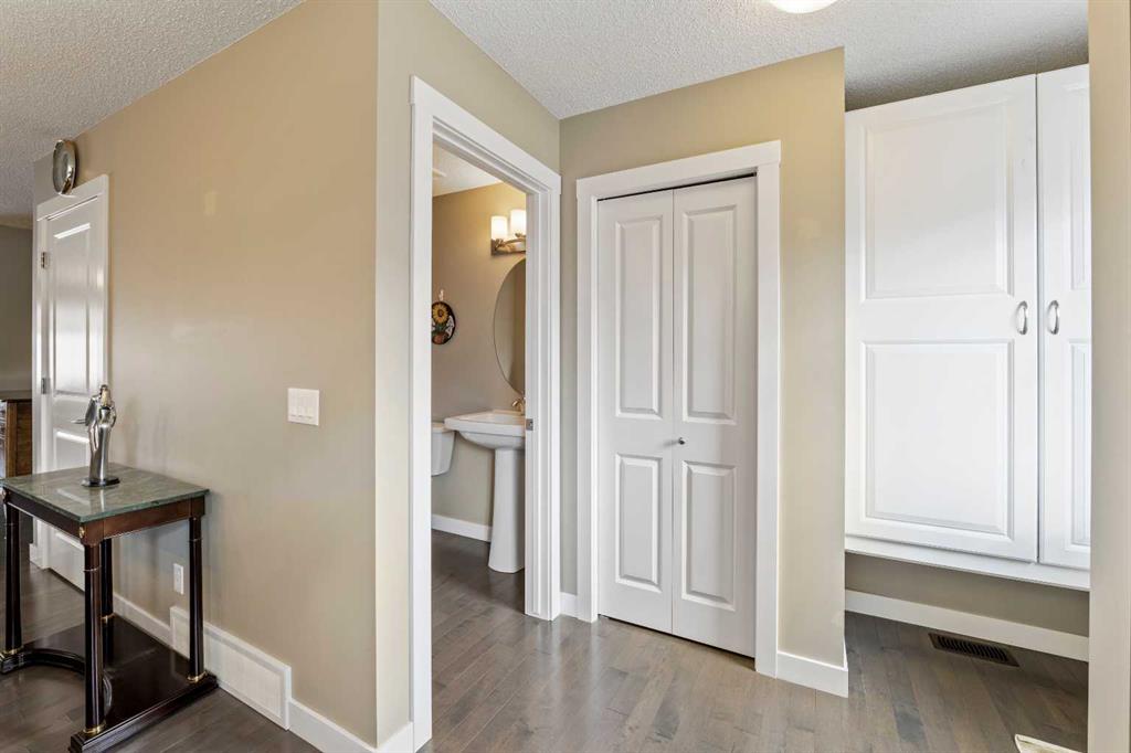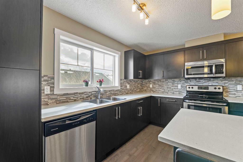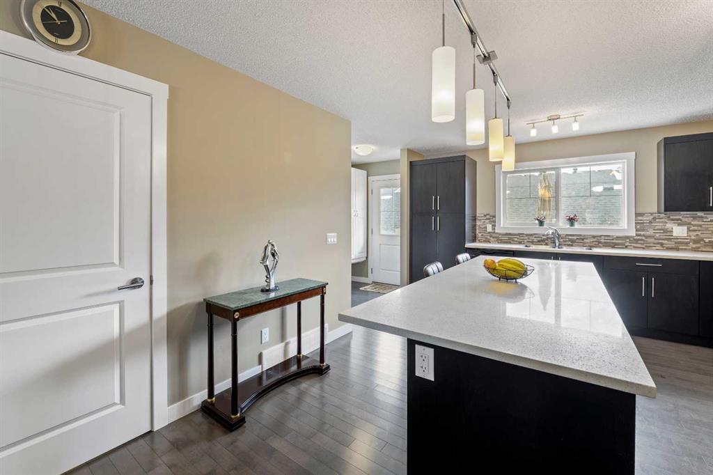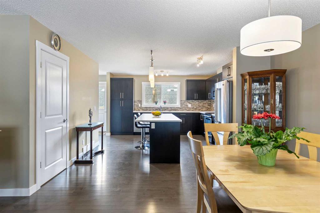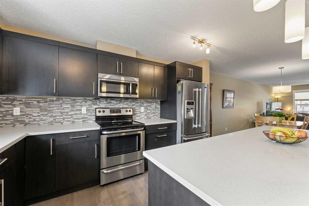 Welcome to this beautifully maintained Brookside built 2-storey walkout home, ideally situated in one of Airdrie’s most well-managed complexes. From the moment you arrive, you’ll appreciate the spacious west-facing front porch—perfect for taking in evening sunsets. Step inside to a bright, open-concept main floor featuring gleaming engineered hardwood throughout. The kitchen is a true standout, showcasing quartz countertops, a massive island with breakfast bar, stainless steel appliances and a custom built-in pantry area. A convenient 2-piece bathroom completes the main level. Upstairs, you’ll find three well-appointed bedrooms and two full bathrooms, including a spacious primary retreat with a 4-piece ensuite and walk-in closet. An additional bonus/living room and upper-floor laundry add to the home’s thoughtful design and functionality. The walkout basement is partially finished, offering a large recreation space, bathroom rough-in and plenty of potential to complete to your taste. Outside, enjoy a professionally landscaped and fully fenced backyard featuring a deck with BBQ gas line, underground sprinkler system and a double detached garage with a roughed-in gas line. Located just steps from the Canals, you’ll love access to scenic paved pathways, summer paddle boarding and winter skating or hockey. Plus, you’re within walking distance to parks, playgrounds, Nose Creek School (K–4), shopping, dining and essential amenities. This is an exceptional opportunity you won’t want to miss!