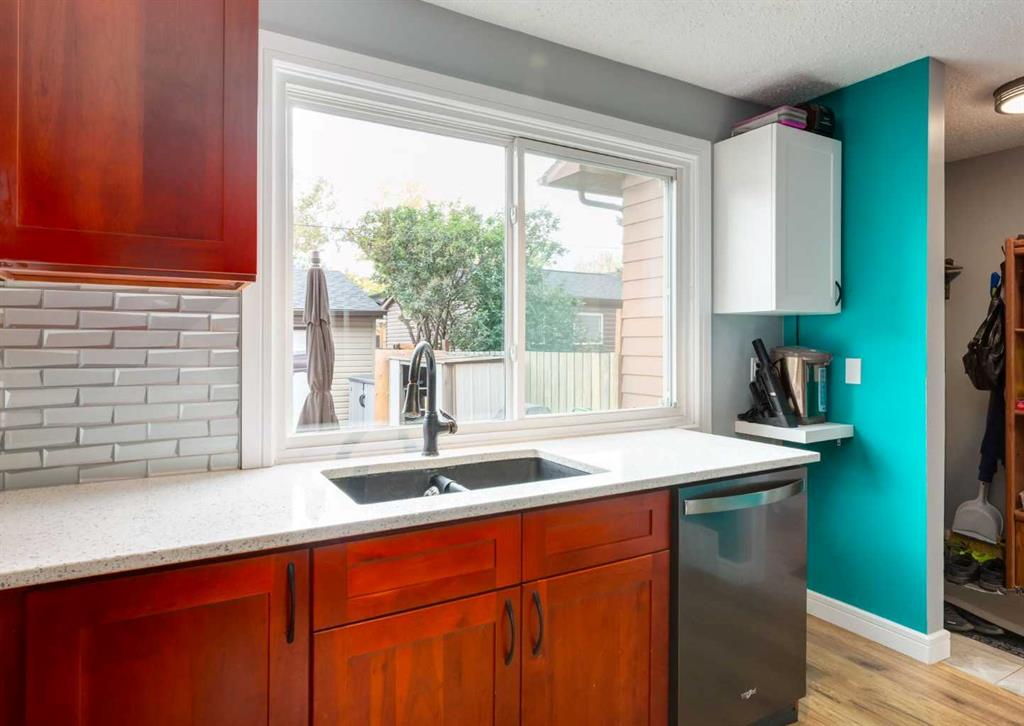 Welcome to this beautifully updated semi-detached home, perfectly located on a quiet, tree-lined street in the heart of Beddington. This move-in ready property has been thoughtfully upgraded over the years, offering a seamless blend of modern comfort and classic charm. Step inside to find a bright and spacious living room filled with natural light from a large front bay window. The main floor features a dedicated dining area and a renovated kitchen with quartz countertops and updated cabinetry—ideal for both everyday living and entertaining. A convenient mudroom with a half bath provides access to the backyard and the double detached garage, which was built in 2018. Upstairs, you’ll find three bedrooms, including a large primary suite with dual closets. The full bathroom has been stylishly updated with quartz countertops and a tiled shower. The lower level adds even more functional space with a cozy media/family room, a flexible area perfect for a home office and a laundry/utility room complete with a sink and plenty of storage. Major updates include vinyl windows, furnace (2015), hot water tank (2023), shingles (2008), and many other thoughtful improvements throughout the home. Outside, the private backyard features a firepit and is perfect for kids, pets, or relaxing with friends. With a double garage, and additional street parking, convenience is at your doorstep. This home is also a close distance to Nose Hill Park, schools, public transit, and a wide variety of shopping. Offering exceptional value in a well-established neighborhood, this home is ready for its next chapter. Book your private showing today!