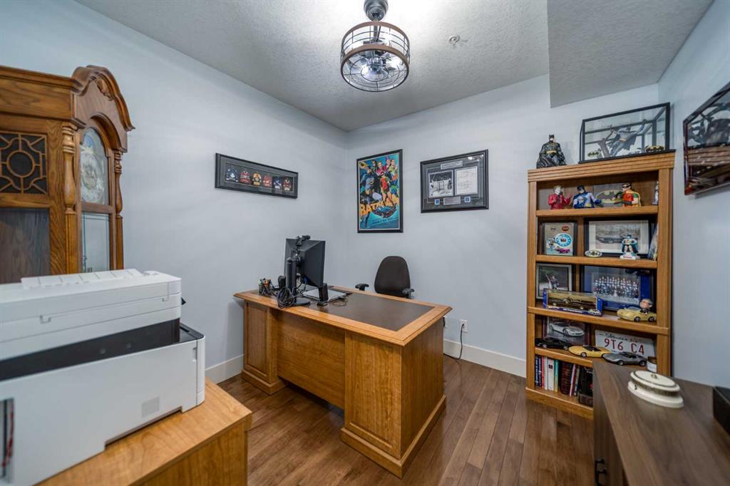 Welcome to Cochrane’s most prestigious condo complex. Situated along George Fox Trail, Lofts on the Bow overlooks soccer fields, a playground area, the Bow River and the Big Hill. This two bedroom, two bathroom condo plus a Den is an end unit and features a private patio adjoining the 7,000 square foot Courtyard. The patio comes with a gas hookup for your BBQ and also has a storage room included. Inside, this unit features Hardwood floors throughout except in the bathrooms and Laundry room. They have linoleum flooring. The Kitchen has granite counter tops and lots of cabinets. The lower cabinets have pullout shelving. The ceilings are 9 feet tall and makes the area look larger. New lighting throughout and unit has all new paint. All appliances are included and are just 1 year old. This condo is secluded and sheltered and great for bird watching. This complex is a 55+ building and has many amenities including a pool table for those who like that, a workout room with various machines, a meeting room/ quilting room, a full kitchen and banquet facilities. There are also two guest suites that can be rented for your guests comfort. One Titled and heated underground parking space is included and there is a car wash in the Parkade. There are also lots of outside parking spaces on either side of the condo building and extra ones at the back of the building for those oversized vehicles. Come and check out this unit soon as it won’t last long.
