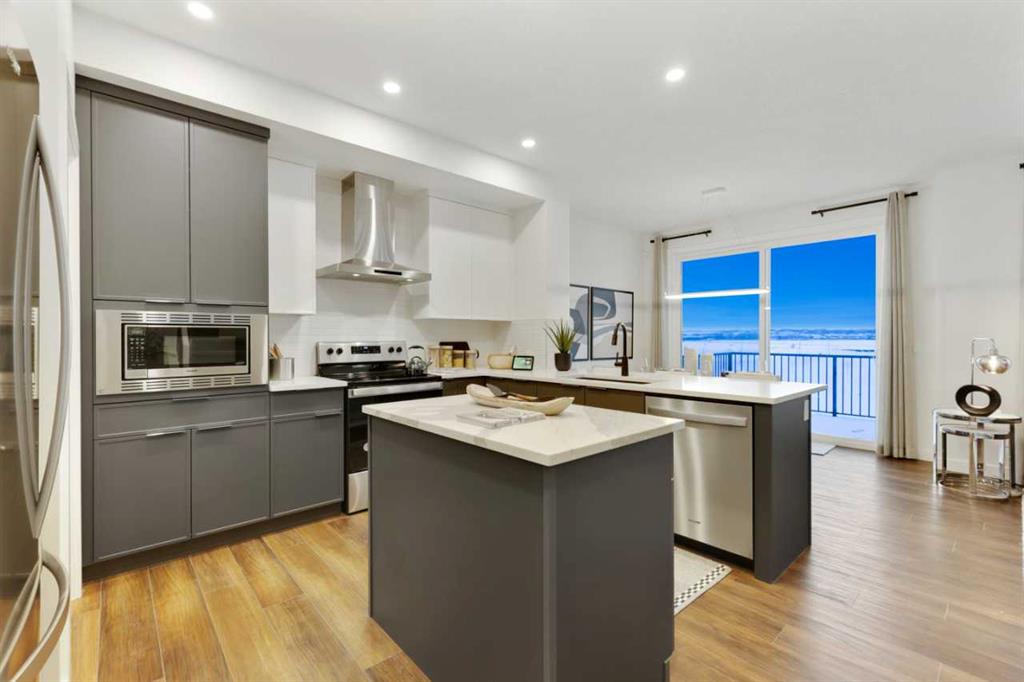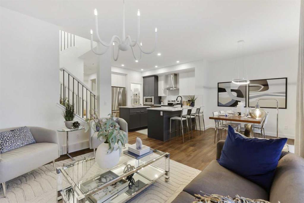 Built by a trusted builder with over 70 years of experience, this home showcases on-trend, designer-curated interior selections tailored for a home that feels personalized to you. Energy efficient and smart home features. The main floor features a versatile flex room and a modern great room centered around an electric fireplace with floor-to-ceiling tile. The contemporary kitchen offers stainless steel appliances, a chimney hood fan, and a spacious walk-in pantry, with a rear deck just steps away for effortless indoor–outdoor living. On the upper levels, enjoy a luxurious 5-piece ensuite, many windows that fill each floor with natural light, and an impressive third-floor balcony—the perfect private escape. Thoughtfully designed and rich in features, the Abbott 2 brings elevated living to every level. This energy-efficient home is Built Green certified and includes triple-pane windows, a high-efficiency furnace, and a solar chase for a solar-ready setup. With blower door testing, plus an electric car charger rough-in, it’s designed for sustainable, future-forward living.