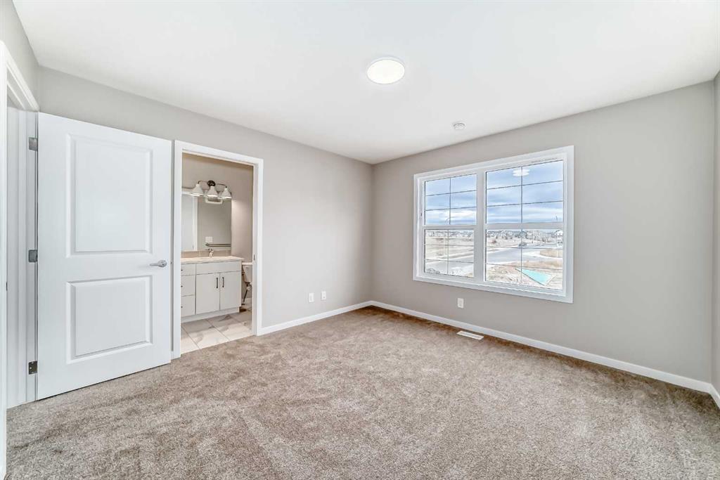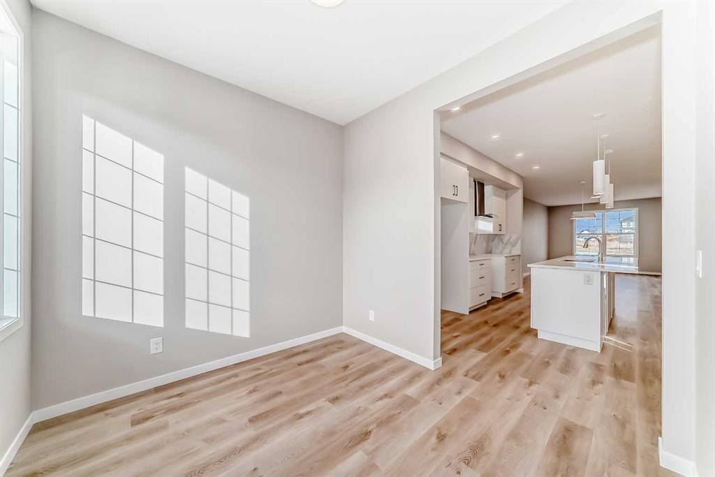 Welcome to this brand-new “Rayn” in Mahogany—a home that blends stylish family living with future flexibility. A separate side entrance offers the option for a private lower-level development or suite down the road (A secondary suite would be subject to approval and permitting by the city/municipality), while the main floor is designed for everyday ease with warm, natural luxury vinyl plank and clean, modern finishes throughout. At the heart of the home, the central kitchen shines with timeless white cabinetry raised to the bulkhead, bright white quartz countertops, and a white marble-style backsplash that wraps the stand-alone chimney hood fan for a seamless, upscale look. Stainless steel appliances and an oversized island make meal prep and casual entertaining effortless. The dining area sits perfectly between kitchen and living—roomy enough for an extended table—while the rear living room enjoys floor-to-ceiling windows and a smart back entry with a 2-piece bath. Just off the kitchen, a versatile flex room adapts to your life (home office, play space, fitness corner), and a raised homework/tech nook overlooks the main floor—organized, functional, and surprisingly fun. Upstairs, a cozy bonus room anchors the level for movie nights or quiet reading. The primary retreat is tucked at the back with an oversized window, a generous walk-in closet, and a chic 4-piece ensuite featuring dual sinks and a full-size shower—finishes you’d expect in a much larger home. Two additional bedrooms are well-proportioned, and the upstairs laundry and linen storage keep day-to-day living simple and tidy. Live the four-season lake lifestyle Mahogany is known for. Centered around Calgary’s largest freshwater lake and a 21-acre beachfront, the community offers private resident beaches, swimming, skating, and year-round events. Stroll the scenic wetlands and extensive pathway network, or head to the Urban Village for coffee shops, restaurants, services, and everyday conveniences. Families appreciate nearby schools and playgrounds; commuters value quick access to Stoney Trail, Deerfoot Trail, and the Seton District’s amenities (South Health Campus, shops, dining, and recreation). Mahogany pairs resort-style living with real-world convenience—making home feel like a getaway, every day.