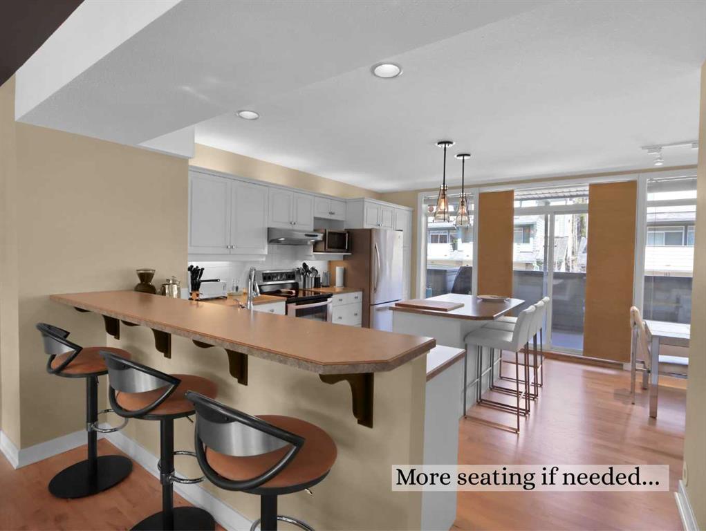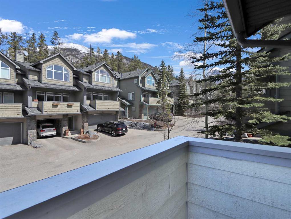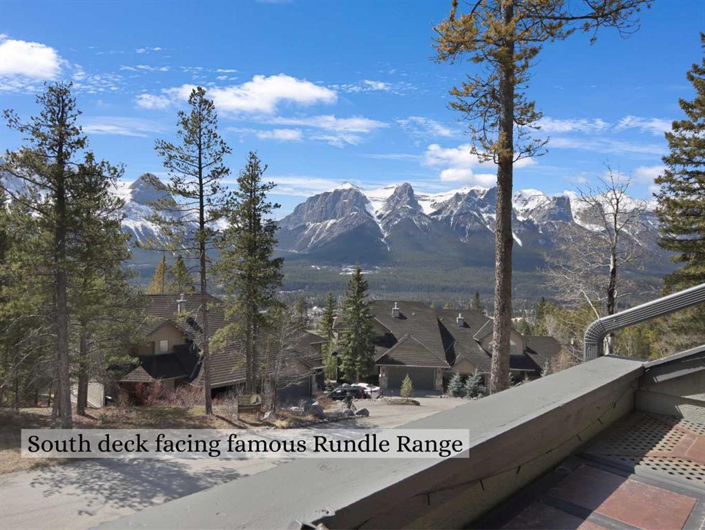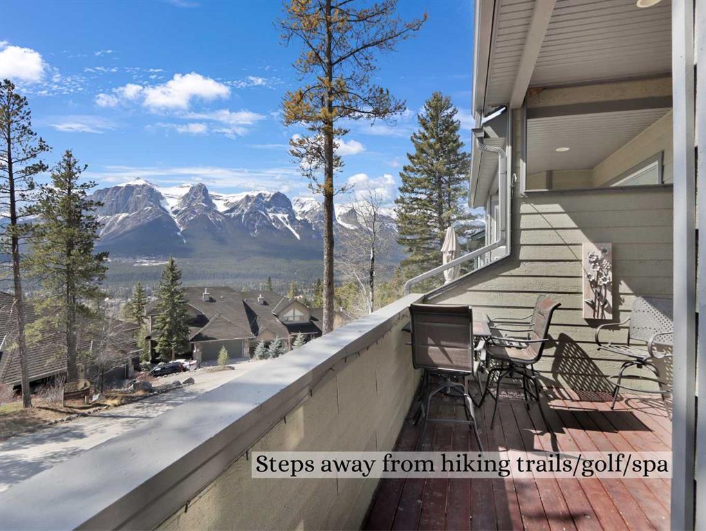 Immerse yourself in breathtaking mountain views from every angle of this 3 bedroom open-plan 2,785 sqft half duplex in Silvertip. The grand foyer leads to a living room with soaring cathedral ceilings, a striking stone-surround gas fireplace, and an impressive wall of south-facing windows. Multiple decks throughout the property provide unparalleled vantage points for soaking in the sun & mountain views. A few steps up is the dining room and spacious kitchen, complete with a versatile nook/office area. Upstairs, the generous primary suite boasts vaulted ceilings, captivating views, and a luxurious 5-pce ensuite. A second large bedroom with a 4-pce ensuite and a laundry room complete this floor. The walkout lower level features a 3rd bedroom & family room (or 4th bedroom) with another stone-surround gas fireplace, south-facing windows, a view patio, a wet bar, and a 4-pce bath-all with in-slab heating. A heated double garage and ample storage make this home truly exceptional.