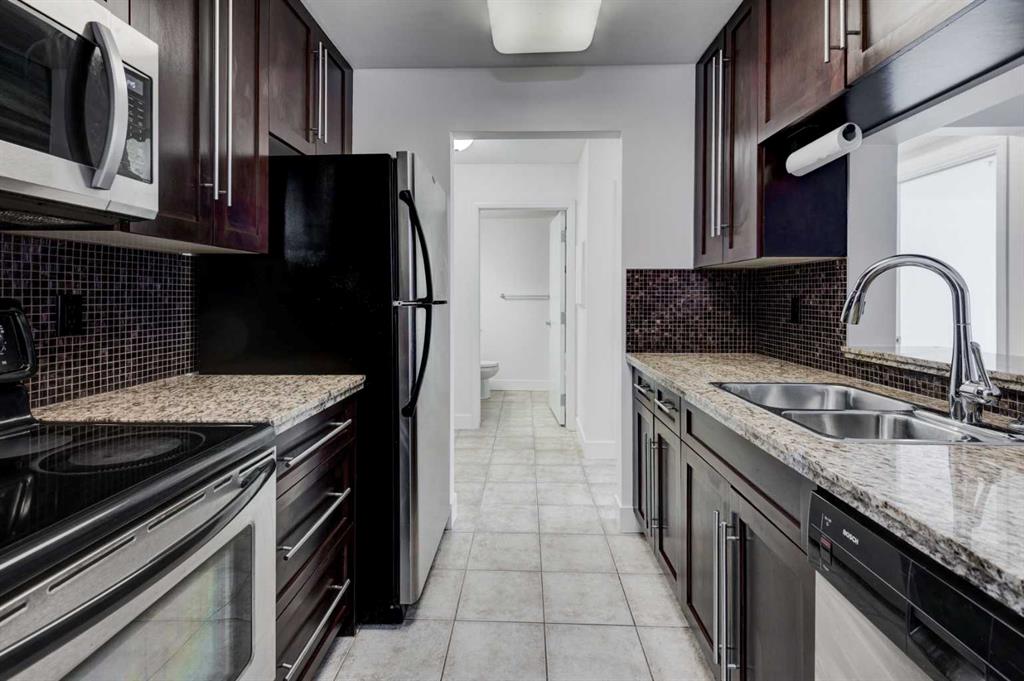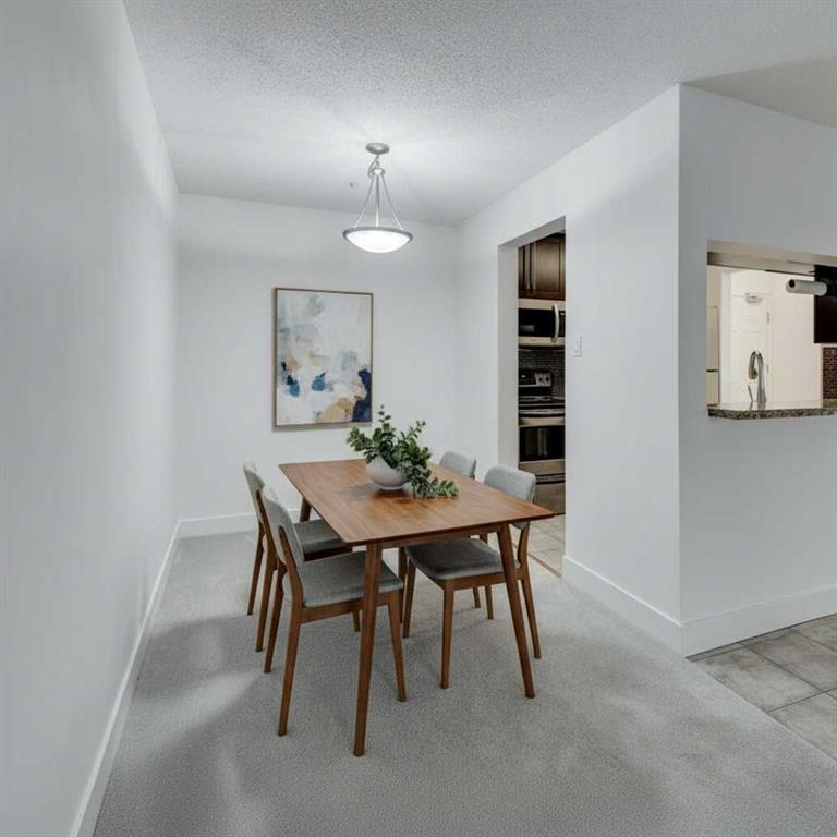 Welcome to this spacious and well-appointed main floor one-bedroom condo at 117-790 Kingsmere Crescent SW in the desirable Kingsland community. Offering comfort, convenience, and modern finishes, this pet-friendly building is perfect for first-time buyers, professionals, or investors. The open and functional layout features a large living room highlighted by a cozy corner gas fireplace, creating a warm and inviting space to relax or entertain. The kitchen is thoughtfully designed with granite countertops, rich dark wood cabinetry, and sleek stainless-steel appliances. A dedicated dining area sits just off the kitchen, ideal for everyday living or hosting guests. Step outside to your large private balcony, perfect for enjoying morning coffee or summer evenings. This home is move in ready, every room has been revitalized with a clean coat of paint and brand-new, soft carpeting underfoot. Complete with a newly installed washer and dryer, this home offers the ultimate in comfort and convenience. If you are a dog lover you will enjoy the close proximity to the front entrance, making walks a breeze. This home includes titled underground parking and a separate titled storage unit, providing exceptional value and practicality. Located just minutes from Chinook Centre, the restaurants and amenities along MacLeod Trail, and C-Train access, this condo offers unbeatable connectivity while still tucked away in a quiet, well-managed complex.