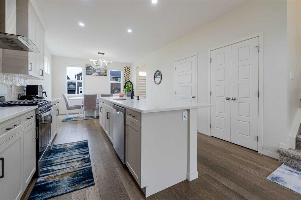 BEST PRICE IN MIDTOWN WITH UPGRADED FEATURES | CORNER TRADITIONAL LOT | SEPARATE ENTRANCE TO THE BASEMENT | LOT OF UPGRADES FROM TRICO BUILDER | Welcome to this beautifully designed laned home in the desirable community of Midtown, ideally situated on a rare traditional corner lot next to green area & walking trail with excessive outdoor space at the front, back, and sides—perfect for summer BBQs, family gatherings, or a fun play area for the kids. This beautiful North-facing home offers the perfect orientation for natural light lovers — with abundant sunlight streaming into the backyard from morning to dusk. Whether you’re enjoying your morning coffee, tending to a garden, or entertaining guests, the sunlit outdoor space creates a warm and inviting atmosphere all day long. Step inside to an inviting open-concept main floor with soaring 9-ft ceilings and an abundance of windows that flood the space with natural light, keeping it bright and cozy all day long. The layout offers a spacious front living area that creates a cozy ambiance, a dining space at the back, and a gourmet kitchen at the center—truly the heart of the home. The chef’s kitchen features ceiling-height cabinetry, a large central island with QUARTZ countertops, premium stainless steel appliances, including a gas stove and hood fan, upgraded lighting with pot lights , plenty of storage & spacious pantry provides additional storage to keep everything organized and within reach. A convenient half bath completes the main level, leading out to a rear deck, a generous backyard, and the concrete pad ready for your future double detached garage. Upstairs, you’ll find three generously sized bedrooms, including a primary retreat with a walk-in closet and private 4-piece ensuite. The two secondary bedrooms are well-sized and share a centrally located full bathroom. All full bathrooms feature upgraded tiles flooring, undermount sinks & timer-controlled exhaust fans. For added convenience, the Whirlpool washer and dryer are also located on the upper level which also features tile flooring. The home also includes a full basement with 9-ft ceilings and a separate side entrance, offering endless potential for future development—whether it’s a legal suite, home gym, or entertainment space. Located in the vibrant, family-friendly Midtown community, this home offers access to beautiful walking paths, parks, a central pond, and is just minutes from schools, shopping, and dining. With quick access to Highway 2, commuting to Calgary is fast and stress-free. This is a rare opportunity to own a stylish, move-in ready home on a corner lot in one of Airdrie’s most sought-after neighborhoods. Make sure to view the virtual tour for a complete walkthrough of the home.
