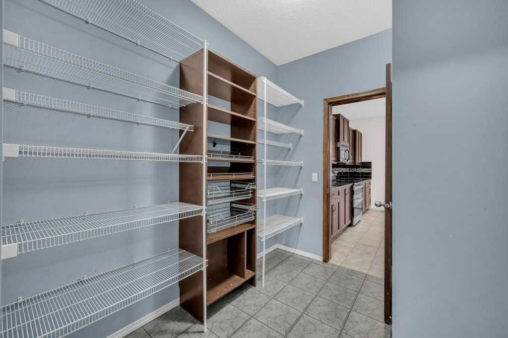 The dining room is sizeable enough to accommodate an 8-chair dining set, ideal for gatherings and family dinners. The kitchen is impressive and massive, with plenty of cabinetry, granite countertops, a double sink with an eating bar, and a large walk-through pantry with built-in shelving that connects to the mudroom with a great-sized closet.