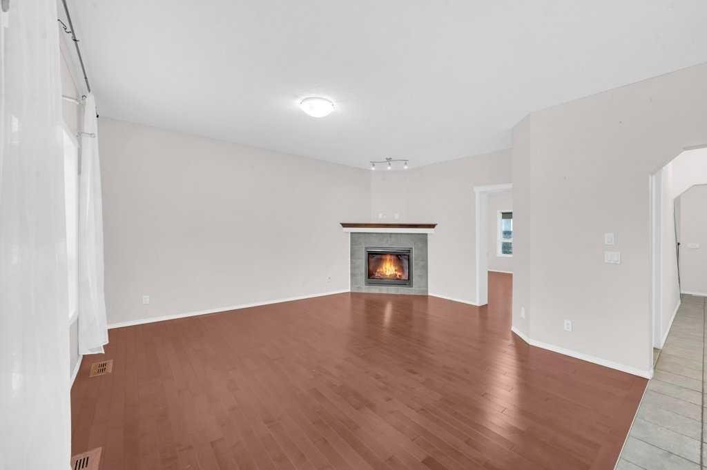 The large foyer opens to the main floor with ceramic tile flooring and leads to a generous office with hardwood flooring. This space is versatile , perfect as a home office or easily used as a bedroom, large enough to fit a queen bed and dresser. The main floor also features a 2-piece bathroom and a spacious living room with a cozy corner fireplace. The 9-ft ceilings and large windows make the entire main floor bright, open, and full of natural light.