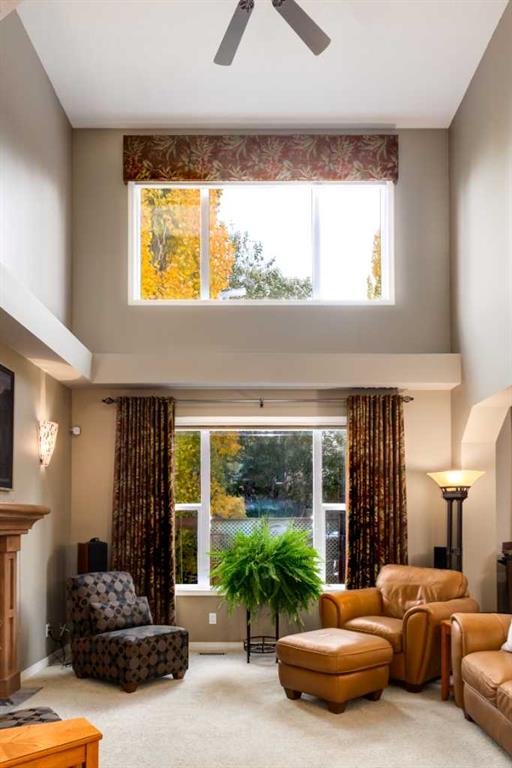 Set within the highly sought-after lower Valley Ridge community, this beautifully maintained residence combines timeless elegance with everyday comfort — just minutes from the Valley Ridge Golf Course, scenic pathways, and the Calgary West Farmers Market. From the moment you arrive, the home’s grand curb appeal and lush landscaping make a lasting impression. The pristine east-facing backyard is a private oasis featuring a sun-shaded patio with awning, privacy screens, outdoor speakers and a meticulously cared-for garden — the perfect retreat for morning coffee or evening gatherings. Inside, a spacious foyer opens into a bright, airy living room with soaring two-storey 18′ ceilings and a gas fireplace. The open-concept layout flows seamlessly into a generous dining area and a well-appointed kitchen with abundant cabinetry, stainless steel appliances (including a new microwave- 2025), breakfast bar, and large walk-in pantry. A private office off the dining area provides an ideal work-from-home space, while the mudroom adds everyday convenience. The double attached garage is insulated, drywalled, finished with an epoxy floor and has hot and cold water taps. Upstairs, discover three large bedrooms, each with its own walk-in closet. Sunlight floods the home through the open-to-below design and large skylight, creating a warm, inviting ambiance. The primary suite is a true retreat, offering a spacious bedroom with vaulted ceilings, sunny south exposure, large walk-in closet, and a 5-piece ensuite with dual vanities, a soaker tub, and a separate shower. Completing the upper floor is an additional 4pc bathroom and large laundry room with built-ins and laundry closet. The fully developed lower level expands your living space with three distinct entertaining zones perfect for a theatre room, games area, and fitness space, plus a cozy corner fireplace and a charming library closet complete with floor-to-ceiling built-ins. Additional features include a water softener, new hot water tank (2024), fresh paint throughout the main floor (2025), new washer/dryer (2025) and newly resealed aggregate driveway (2025). Step outside your front door and enjoy the beauty of Valley Ridge’s extensive trail network — perfect for evening strolls, morning jogs, or peaceful walks along the river valley. Lovingly cared for by the same family for nearly two decades, this home has been the backdrop to countless cherished milestones. Now, it’s ready for new memories to be made. Experience the unmatched combination of comfort, character, and location that makes Valley Ridge one of Calgary’s most desirable communities.