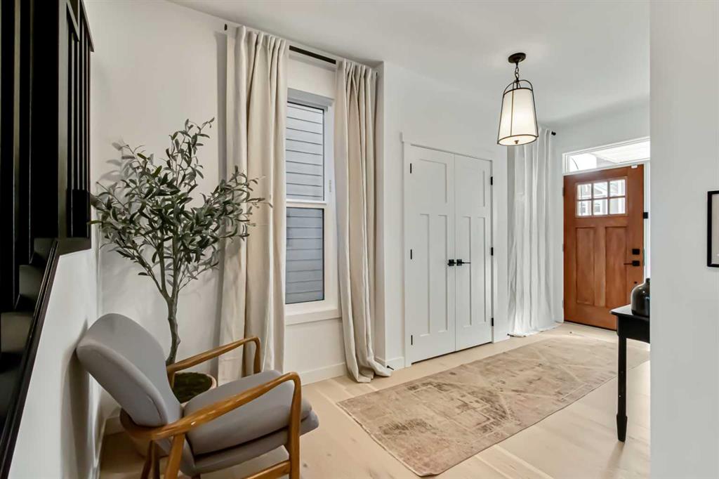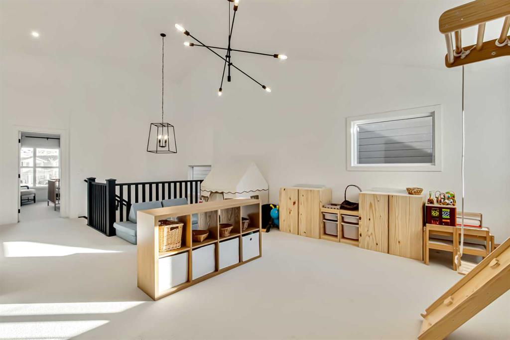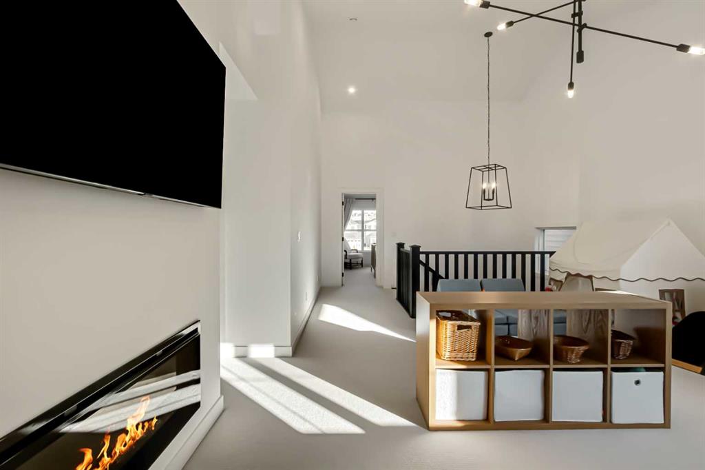 Welcome to this stunning, fully upgraded 4 bedroom, 3.5 bath home in the highly sought after community of Cranston’s Riverstone. Perfectly positioned backing onto green space and just steps from the river, walking paths and the pond, this 2,402 sq.ft home blends luxury finishes with thoughtful design. The main floor offers an elongated entryway leading to an open concept living area flooded with natural light, a beautiful gas fireplace surrounded by custom built ins, a gourmet kitchen with quartz counters and backsplash, upgraded KitchenAid black stainless steel appliances, gas range with pot filler, custom hood fan, farmhouse sink, dining room, large walk in pantry and designer lighting. A custom mudroom with built in lockers adds everyday convenience. Upstairs features three bedrooms and two full baths, including a secondary bath with double vanities – perfect for sharing. The primary bedroom impresses with vaulted ceilings, a spa like ensuite, complete with a freestanding tub, rain shower with marble and zellige style tile, separate vanities and a large walk in closet connected to a convenient laundry room. A spacious vaulted bonus room completes the upper level. Downstairs, the fully finished basement includes a fourth bedroom, office space, full bath, wet bar with quartz counters/sconces and a cozy living area with an electric fireplace – ideal for entertaining. With over 100k in premium upgrades, including heated floors, custom cabinetry, built in speakers, smart lighting and rough ins for A/C and central vac, this home offers modern comfort and timeless style in a beautiful natural setting.