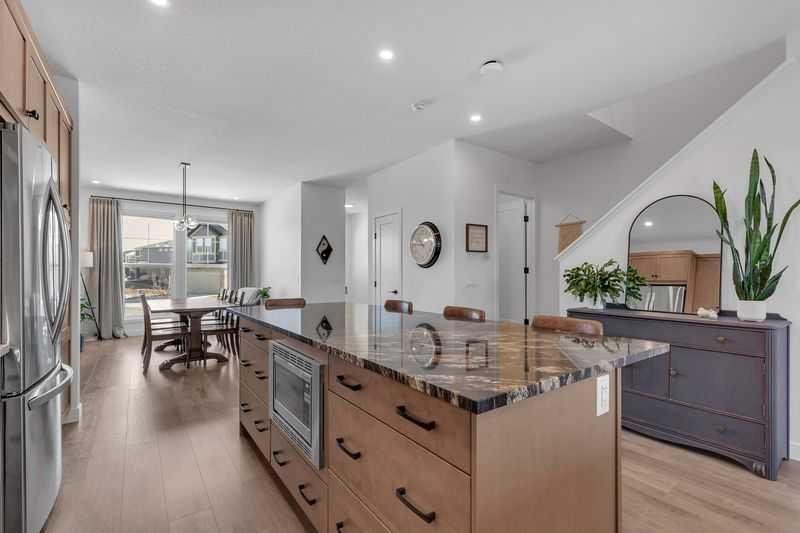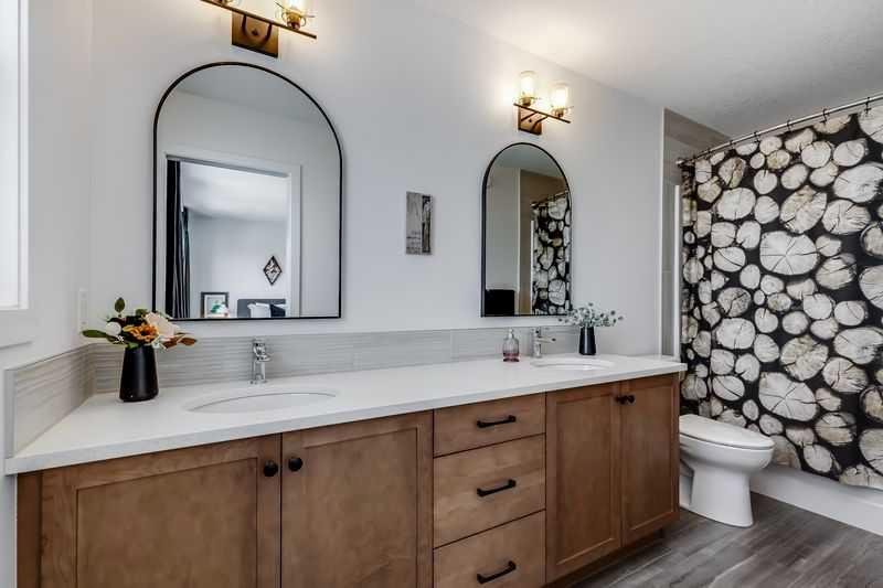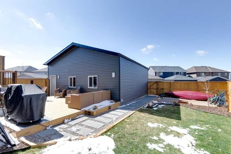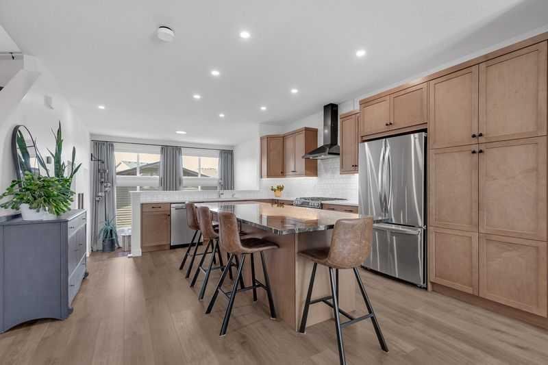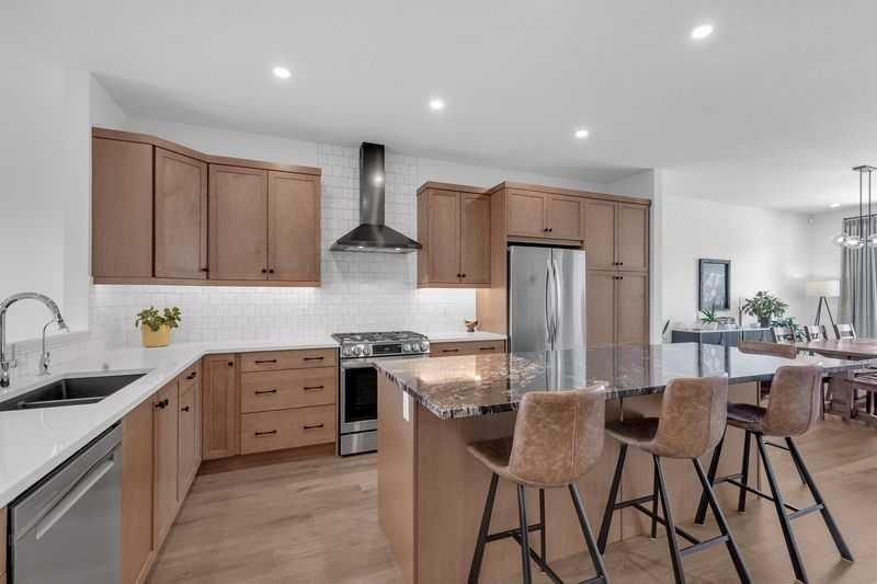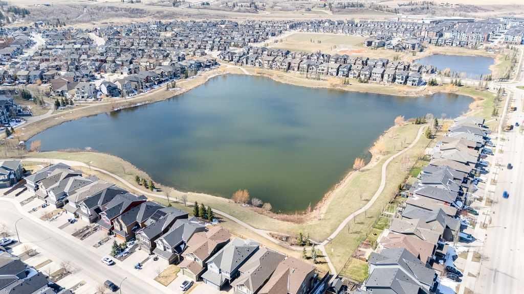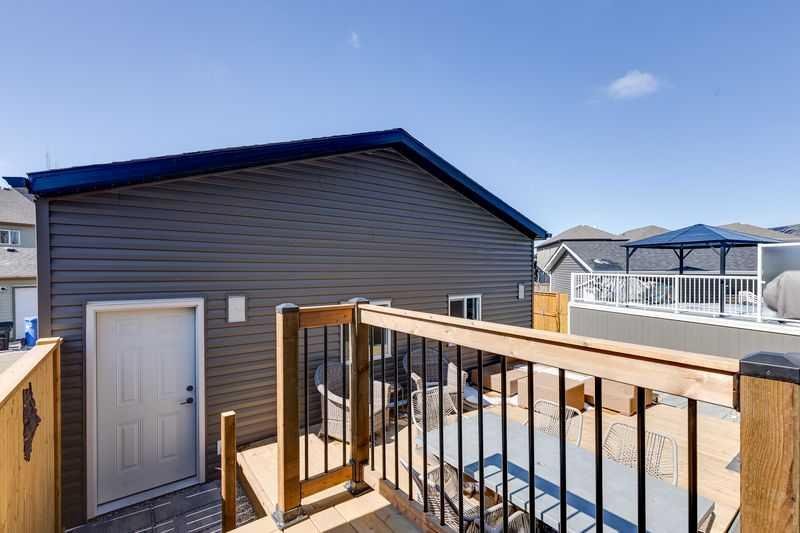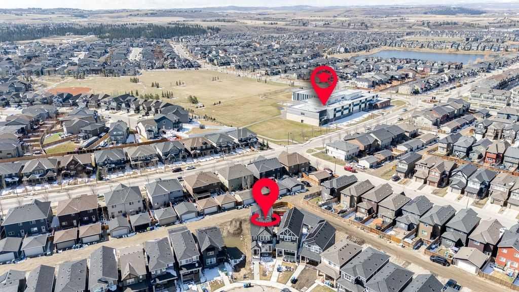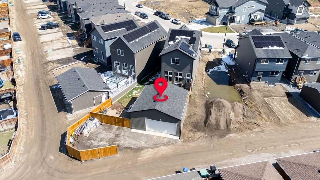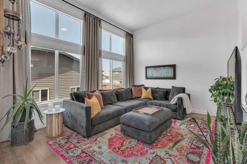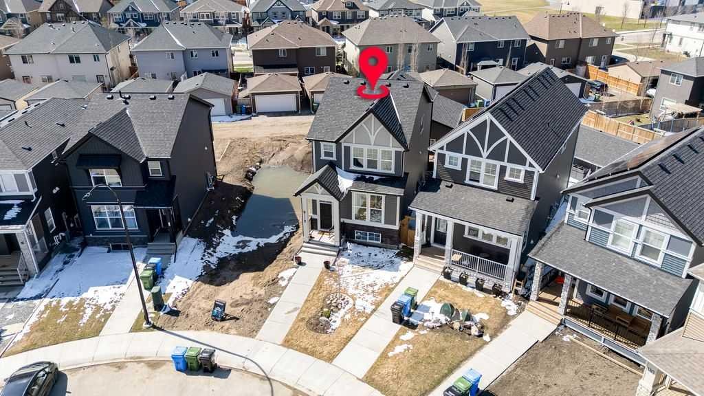 Welcome to this stunning family home situated on a large southwest-facing pie-shaped lot, complete with an oversized garage and additional parking pad. From the moment you step inside, you’re greeted by a spacious front entry and impressive 9’ ceilings throughout the main floor. The bright and open living room features large windows that flood the space with natural light. The kitchen is designed for both function and style, offering a massive island, abundant cabinetry with plenty of drawers, a built-in pantry, and stainless steel appliances including a gas stove and built-in microwave. Just steps down, the sunken living room showcases soaring 12’ ceilings and expansive windows, creating a warm and inviting atmosphere. Enjoy the added convenience of motorized blinds with both blackout and sheer options. A 2-piece powder room completes the main level. Upstairs, you’ll find two generously sized bedrooms, a 4-piece bathroom, and convenient upper-floor laundry. The spacious primary suite features a walk-in closet and a luxurious 5-piece ensuite with double sinks. The lower level boasts impressive 10’ ceilings and is ready for your personal touch and future development. Car enthusiasts and hobbyists will appreciate the oversized 26’ x 26’ garage with 10’ walls – truly a dream space. The fully fenced, southwest-facing backyard includes a two-car parking pad and offers plenty of room to enjoy outdoor living. Additional features include air conditioning for those warm summer days, a tankless hot water, reverse osmosis system, and water softener. Ideally located close to schools, shopping, walking paths, and scenic parkways with access to a beautiful ridge, this home truly has it all. Don’t miss your opportunity to make it yours!