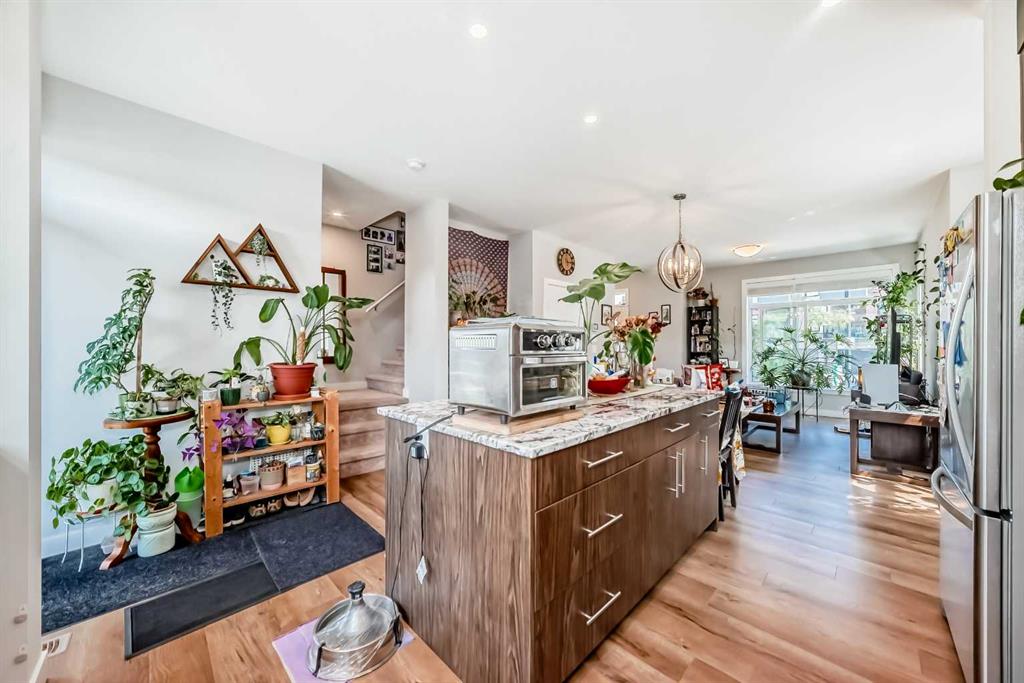 Welcome home to this bright and stylish end unit townhome in the heart of Sage Hill. With low condo fees, a playground just steps from your door. This home offers both comfort and convenience. As an end unit, you will enjoy additional side windows that fill the space with natural light, making it an absolute dream for plant lovers. Offering 1,269 square feet, this 3-bedroom, 2.5-bathroom home showcases a clean Scandinavian aesthetic with contemporary colours, quartz countertops throughout, and stainless steel Whirlpool appliances in a modern kitchen. The kitchen features full-height cabinetry, a spacious island, and a striking 4′ x 16′ subway tile backsplash. The open concept design flows easily to a sunny, partially fenced back patio that is perfect for relaxing or entertaining. Upstairs, the vaulted primary suite boasts beautiful windows, a large closet, and a private ensuite. Two additional bedrooms, a full main bathroom, and convenient second floor laundry complete the upper level. Built with quality and efficiency in mind, this Certified Built Green home includes a Quietwall system to minimize sound transfer, oversized triple-glazed low-E windows, a 96% high efficiency furnace, and tankless hot water. The basement is undeveloped with 571 square feet and two large windows, providing great potential for future development. A new Calgary Transit terminal with a park-and-ride facility is planned for Sage Hill as part of the Symons Valley Centre development. This convenient location will provide quick access to some of NW Calgary’s most popular amenities, including Creekside, as well as nearby retail, shops, and services within the community. If you are looking for a bright, modern, and low maintenance home in a fantastic location, this one is ready to welcome you.
