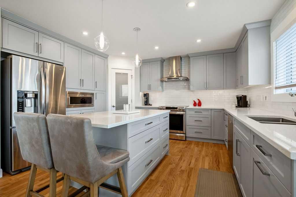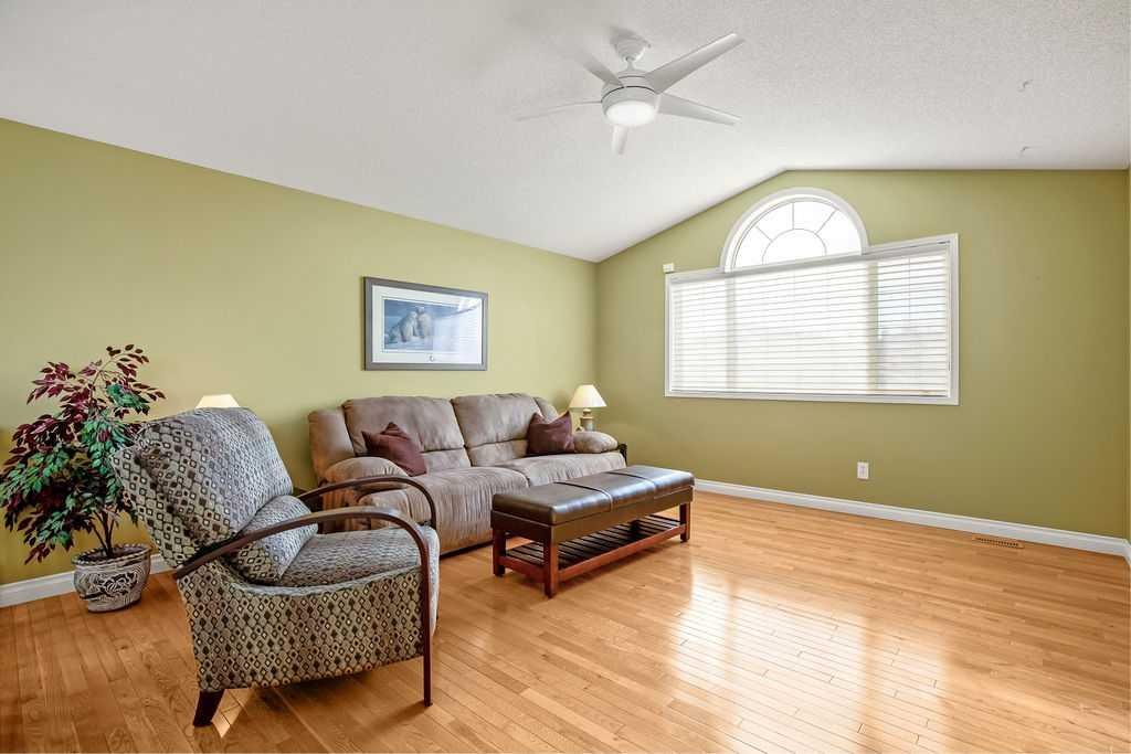 Lake living at its finest! You and your family will enjoy swimming, boating, fishing, and skating in the community with the Rocky mountains as your backdrop. Schools and shopping are also right there. This spacious two storey home shows pride of ownership the moment you see it. You enter the home to an open plan with a large dining room and built in cabinet. The real treat is the newly renovated island kitchen. Boasting tonnes of cabinetry, a corner pantry, quartz counters and stainless steel appliances including an induction stove! Relax in the living room and enjoy the gas fireplace. Real hardwood flooring looks great and is located on both the main and upper floor. Kids will hang out in the large bonus room featuring vaulted ceilings and lots of light. All bedrooms are well sized and the master bedroom has a walk in closet and four piece en suite. Need more space. Well, get ready for the fully finished walk out level. It has a rec room, fourth bedroom, three piece bath, and ample storage. Enjoy outdoor living on either the low maintenance deck or on the fully lit walkout level patio. Escape the heat with the central air conditioning. The home also has built in soffit lights to provide better visibility and style. This just might be the ideal family home!