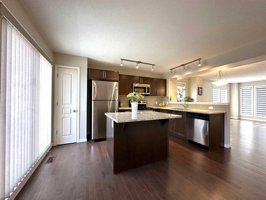 Open house 2-4:30pm Nov. 8. Welcome to this RARE OPPORTUNITY to own a beautifully upgraded 2-bedroom, 2.5-bathroom, double garage END UNIT townhome in the heart of Auburn Bay’s Muskoka! Perfectly situated across from Auburn Bay Station Shopping Centre, walking distance to off-leash park, schools, playgrounds, tennis court, and just steps from Auburn Bay’s 43-acre lake, private parks, and beaches. This home offers a perfect balance of convenience and leisure. Step inside, you’ll be greeted by a warm, cozy, bright, and welcoming atmosphere. The main floor boasts a spacious open-concept living area with expansive sunlit windows and beautiful hardwood floors throughout. The stylish kitchen showcases granite countertops, backsplash tile, modern appliances, a large island, and ample counter space. The kitchen leads to a private balcony and a flex room with a versatile space for a dining area or home office. Upstairs, you’ll find two spacious master bedrooms, each with its own 4 piece en-suite bathroom and walk-in closet, providing ultimate privacy and convenience. Full laundry room /linen closet is also conveniently located on this level. The basement, with plenty of storage options, connects to the double attached garage for secure parking and additional storage space. Countless Upgrades throughout include: FRESH PAINT THROUGHOUT. NEW BLIND. Bathrooms with granite countertops and two added drawers in vanity; Hardwood, tile and carpet flooring; Huge upgraded kitchen with beautiful granite counter tops, gorgeous kitchen backsplash tile, 12” extended island counter top, and stainless steel appliances; Balcony off the main level; Outlet to the basement; Barbeque gas line rough-in for easy barbeque entertainment. Living in the sought-after LAKE community of Auburn Bay means access to a vibrant, lake-centered lifestyle with walking trails, parks, playgrounds, year-round activities at the community lake; quick access to Stoney Trail and Deerfoot Trail; easy access to downtown: BRT bus (302), and near future LRT stations. This 1,254 sq.ft. end-unit is the perfect blend of comfort, modern style, and location – ideal for first-time buyers, downsizers, or investors seeking a move-in ready property in one of Calgary’s most desirable lake communities. Welcome to your new home! QUICK POSSESSION. Professional cleaned.